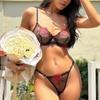 Lencería sexy transfronteriza para mujer, sujetador francés fino de satén con encaje, rojo Benmingnian, conjunto de lencería de talla grande