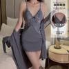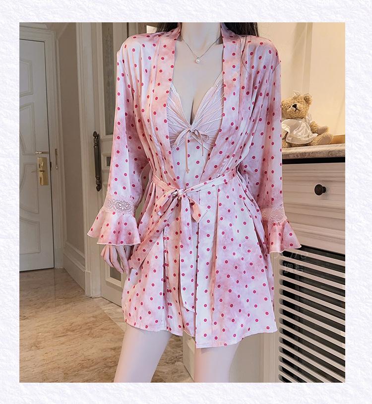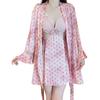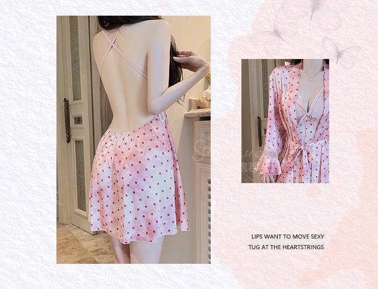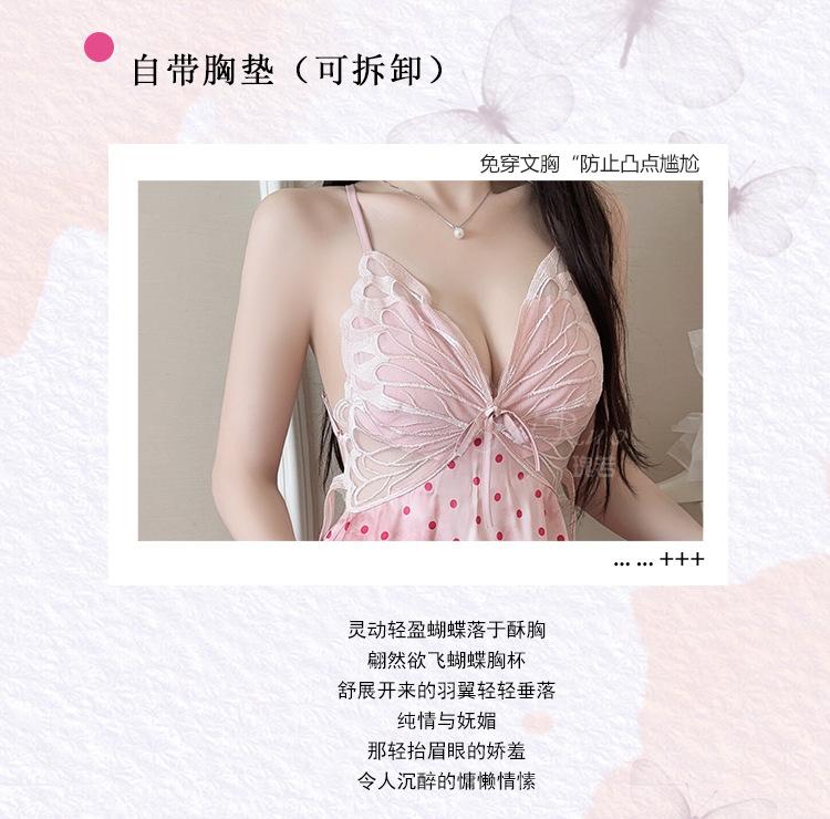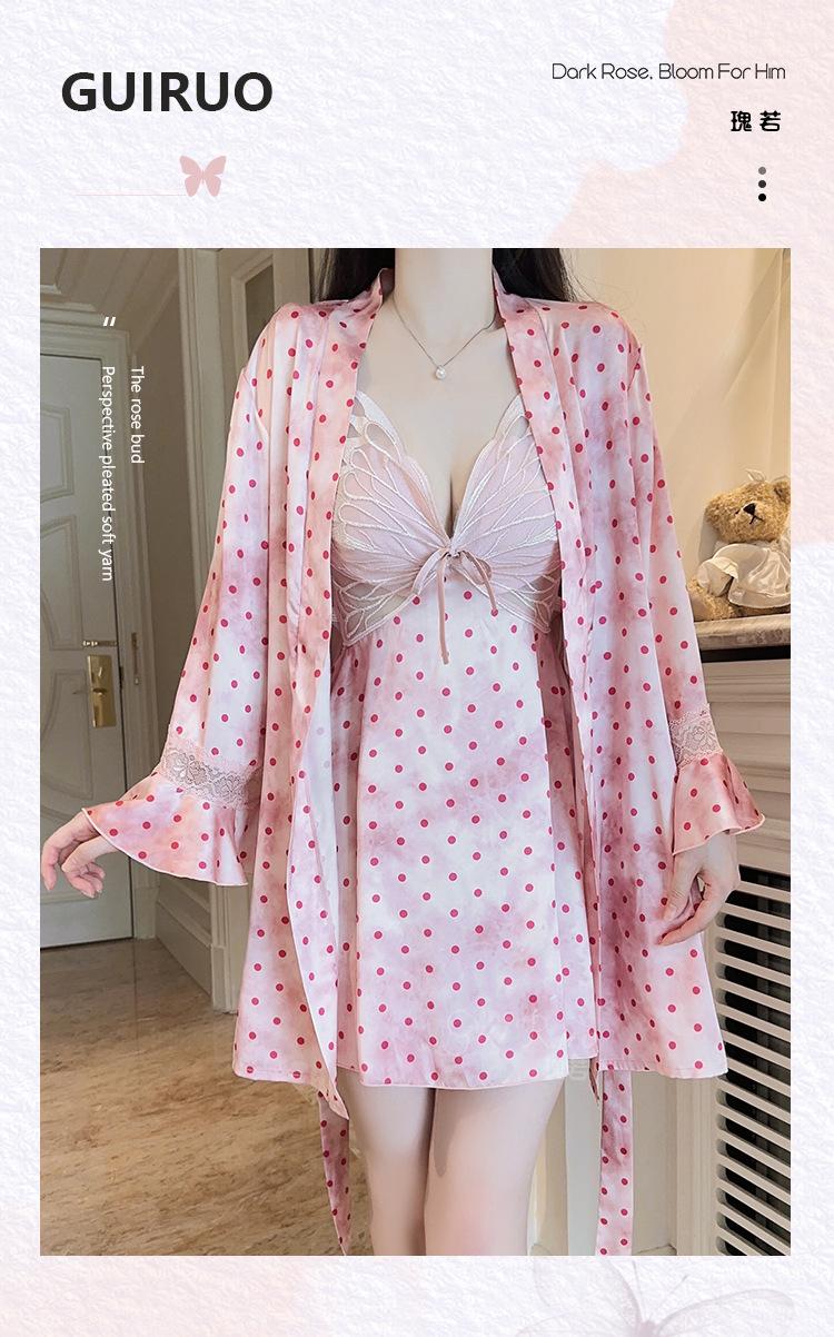 Preciosa Lencería de Seda de Hielo Dulce Mariposa Escote en V Profundo con Almohadillas Sexy Camisón sin Espalda Conjunto de Bata 6133