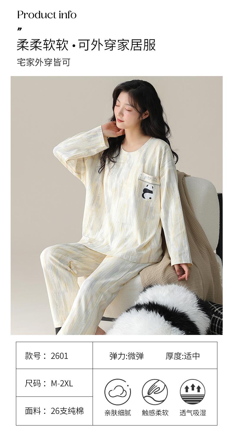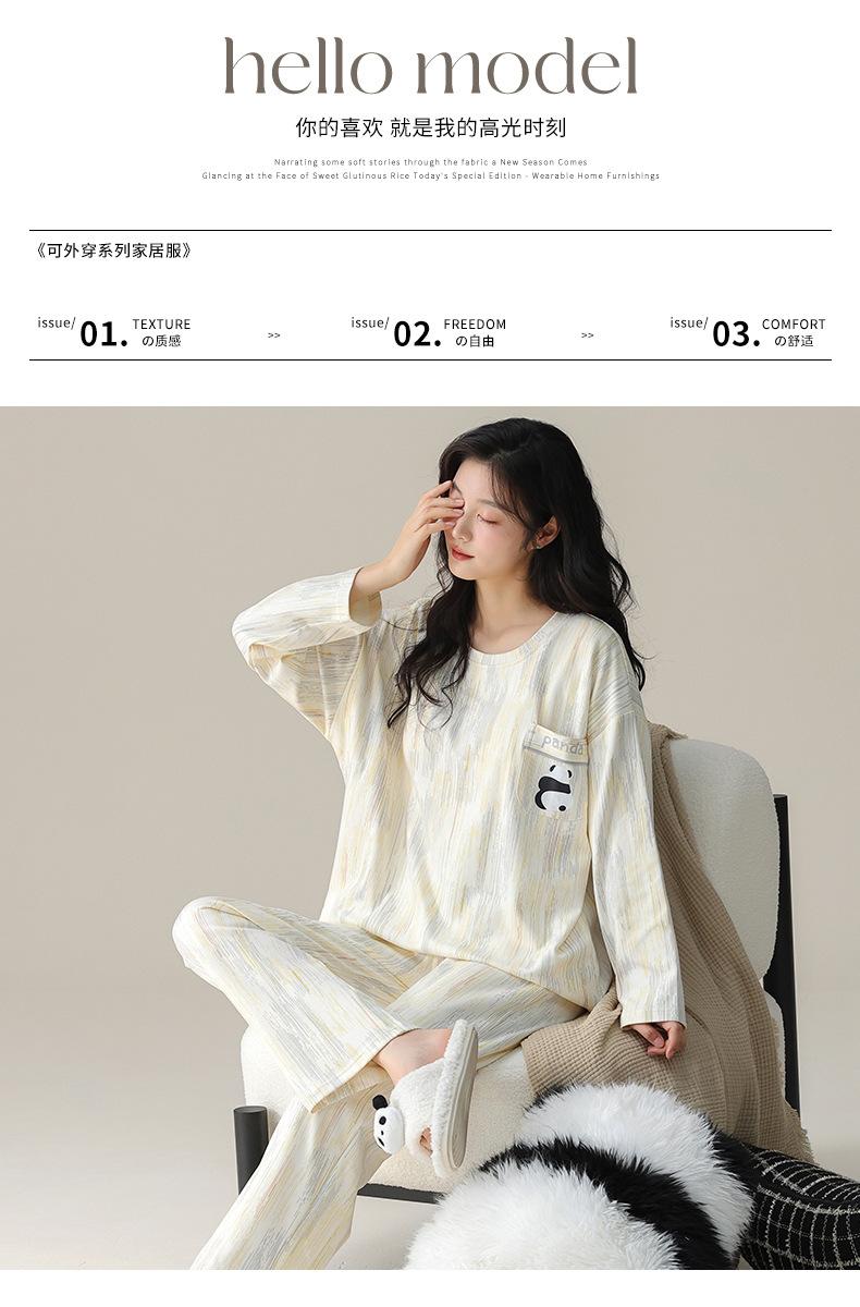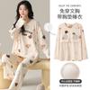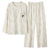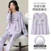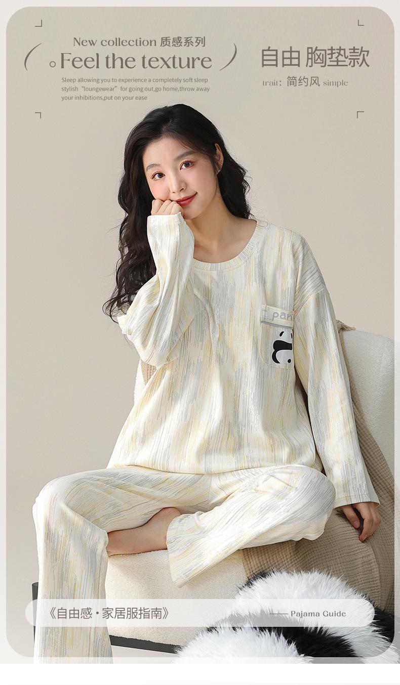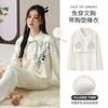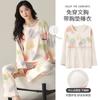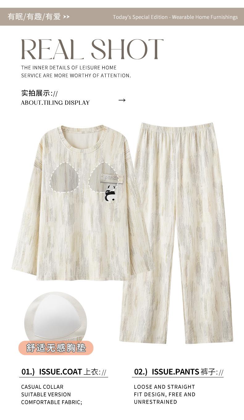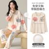 Pijama de Algodón Puro de Estilo Nuevo de Primavera y Otoño para Mujer, Manga Larga, Pantalón Largo, Jersey con Almohadilla en el Pecho, Conjunto de Ropa de Casa Casual y a la Moda