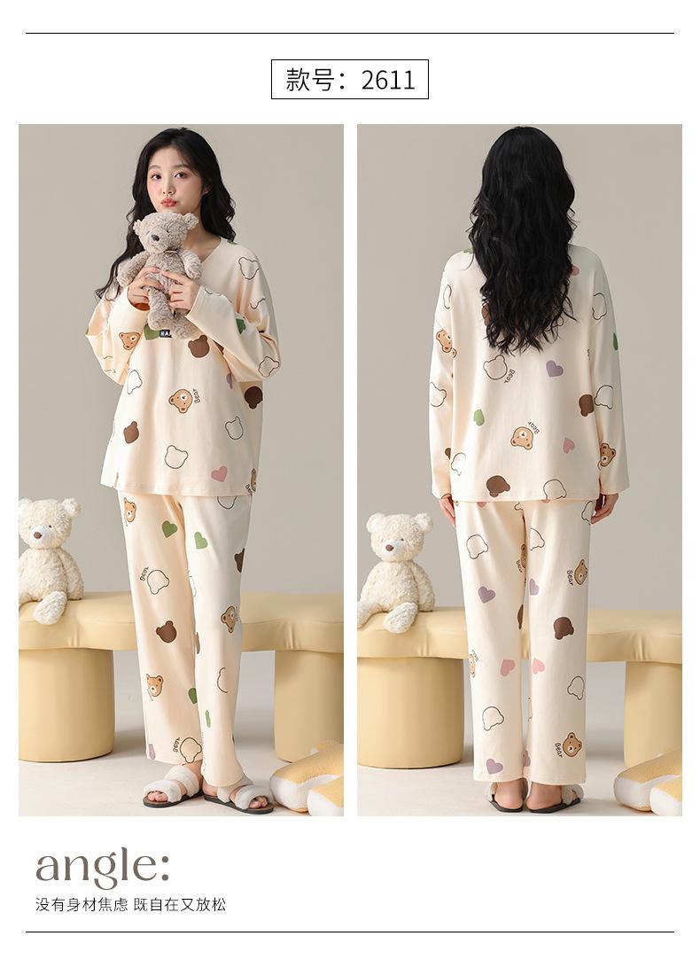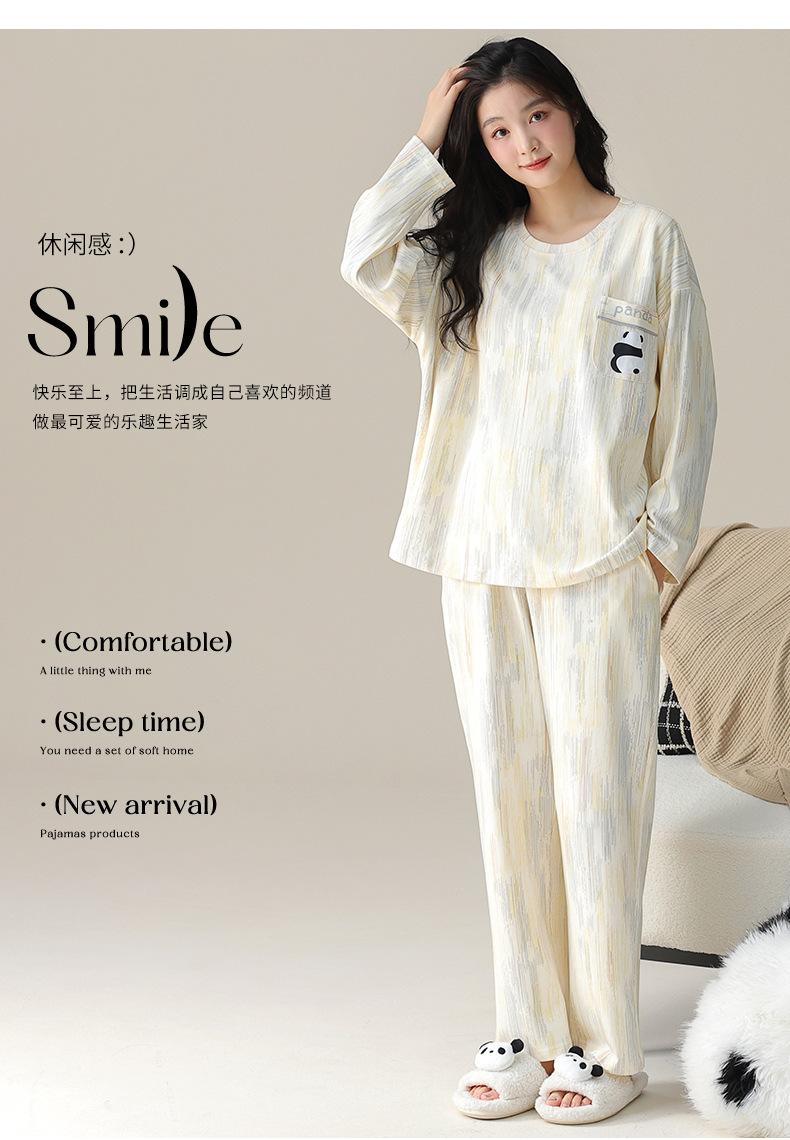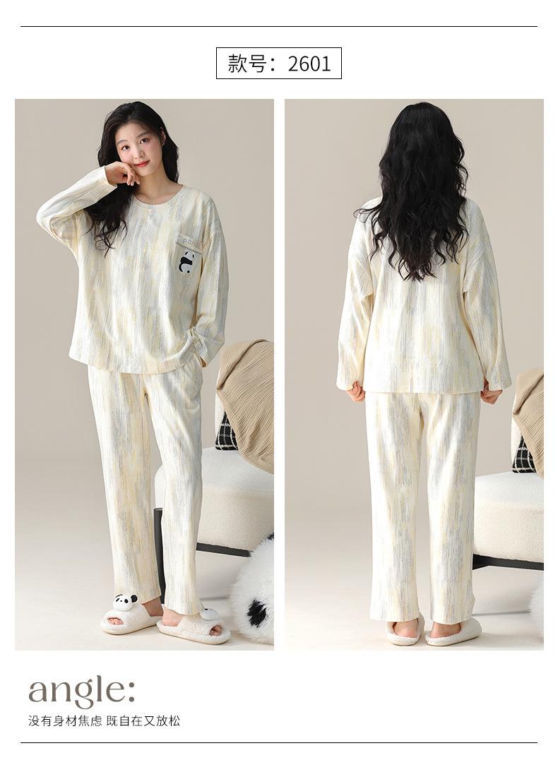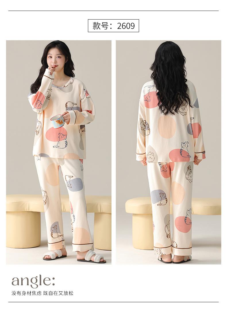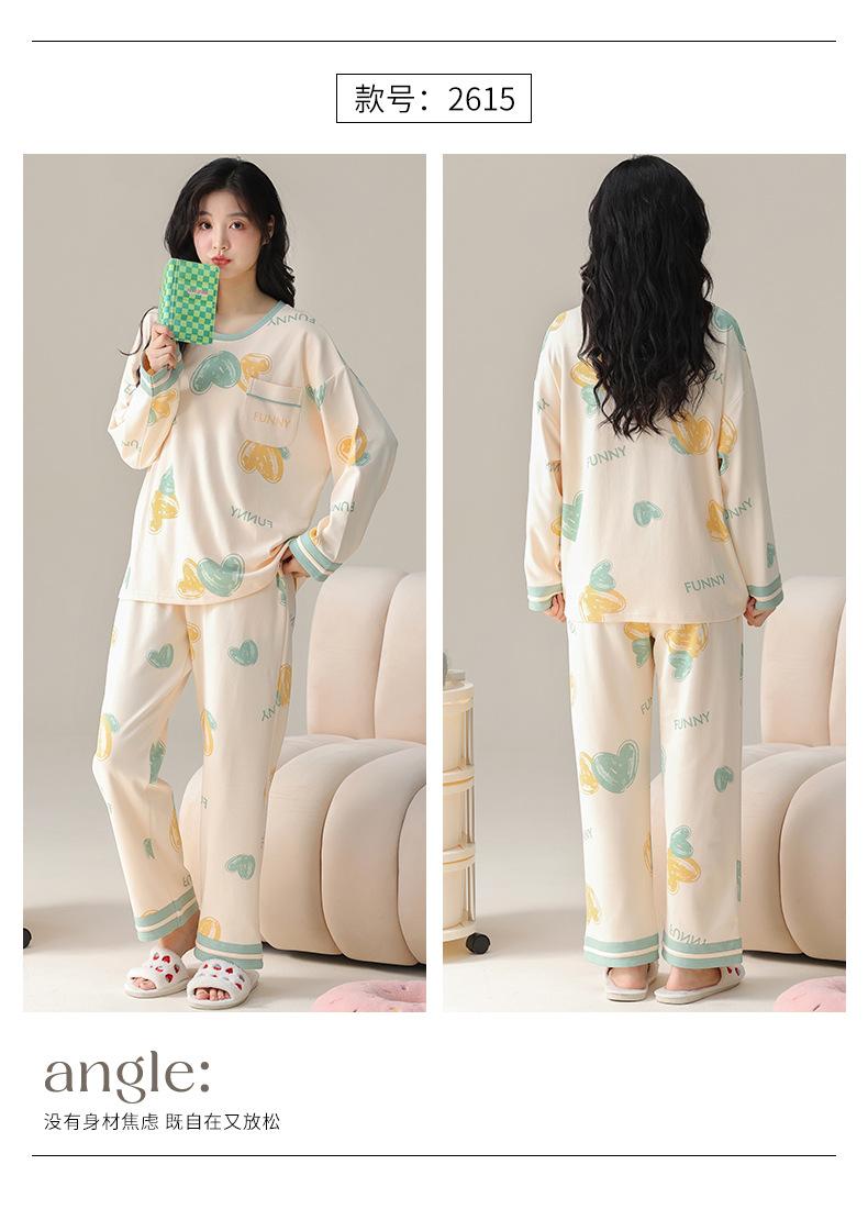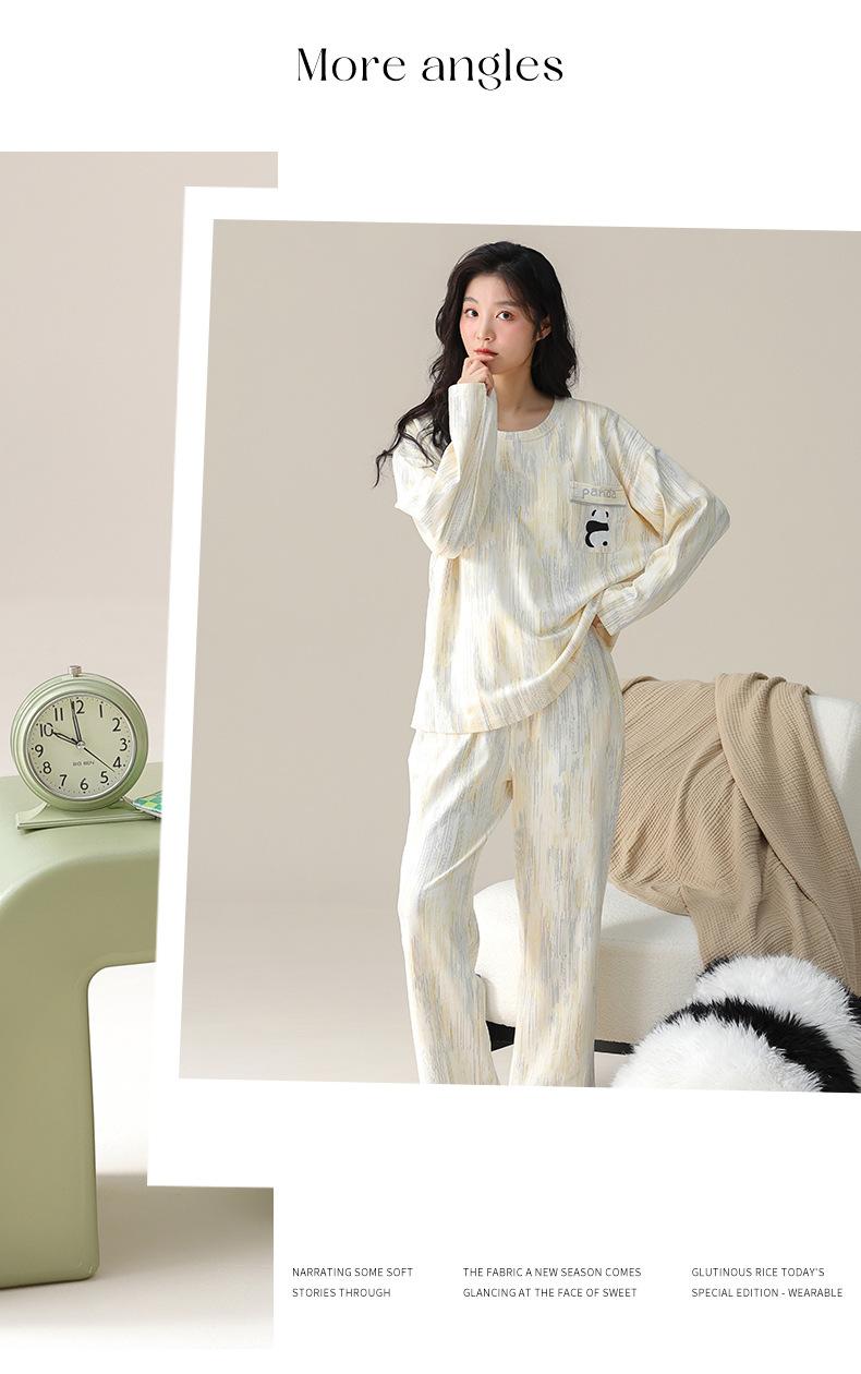 Pijama de Algodón Puro de Estilo Nuevo de Primavera y Otoño para Mujer, Manga Larga, Pantalón Largo, Jersey con Almohadilla en el Pecho, Conjunto de Ropa de Casa Casual y a la Moda
