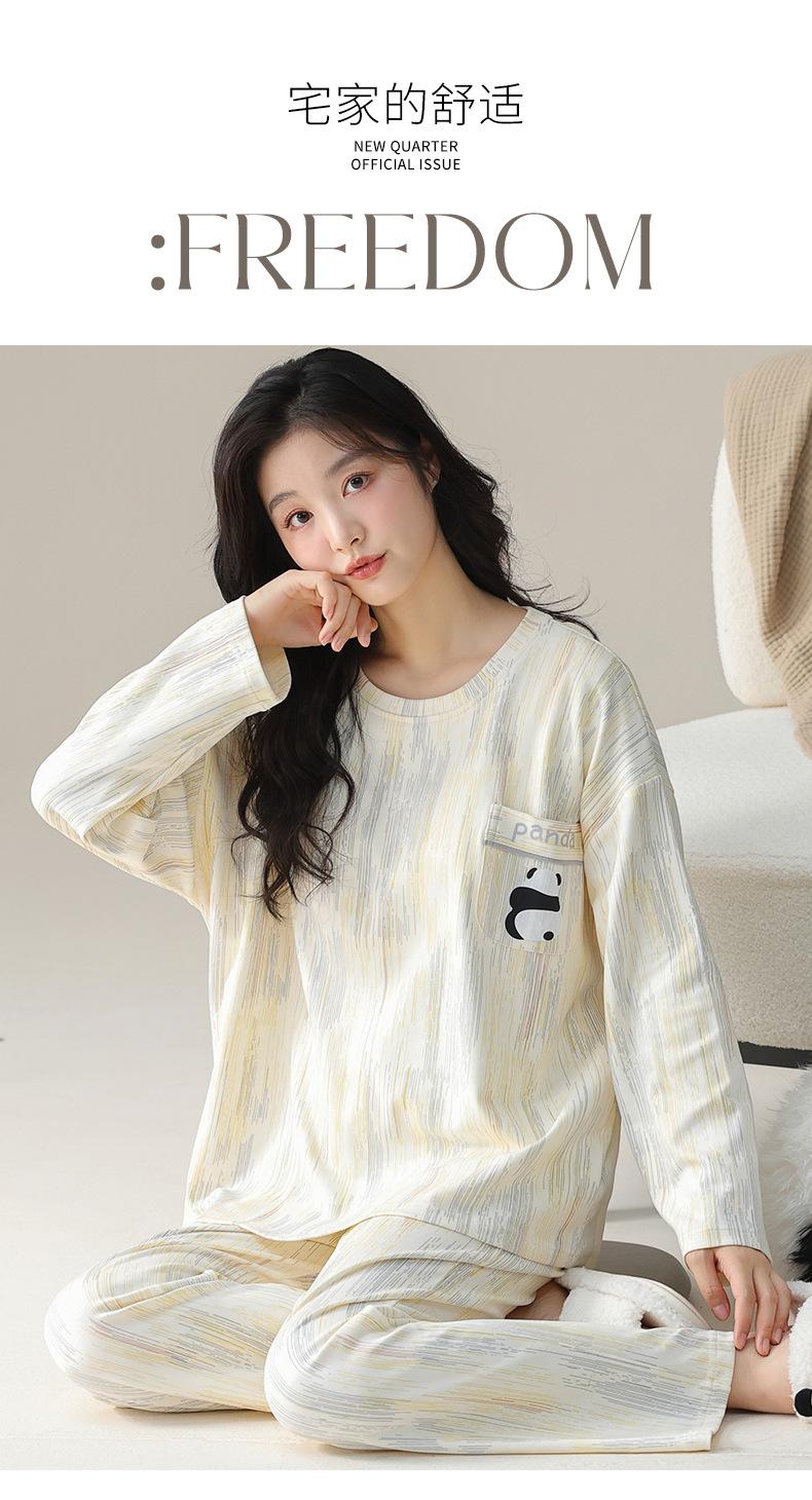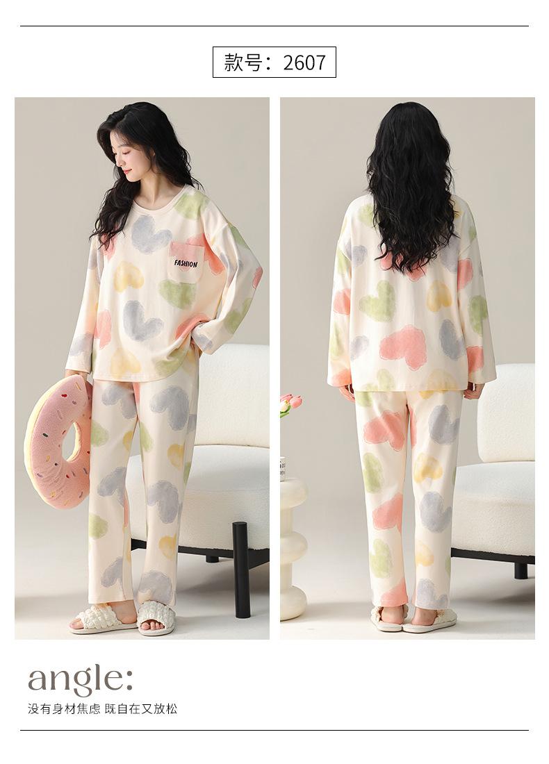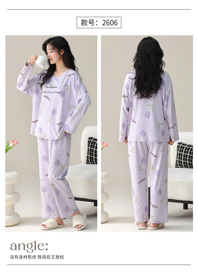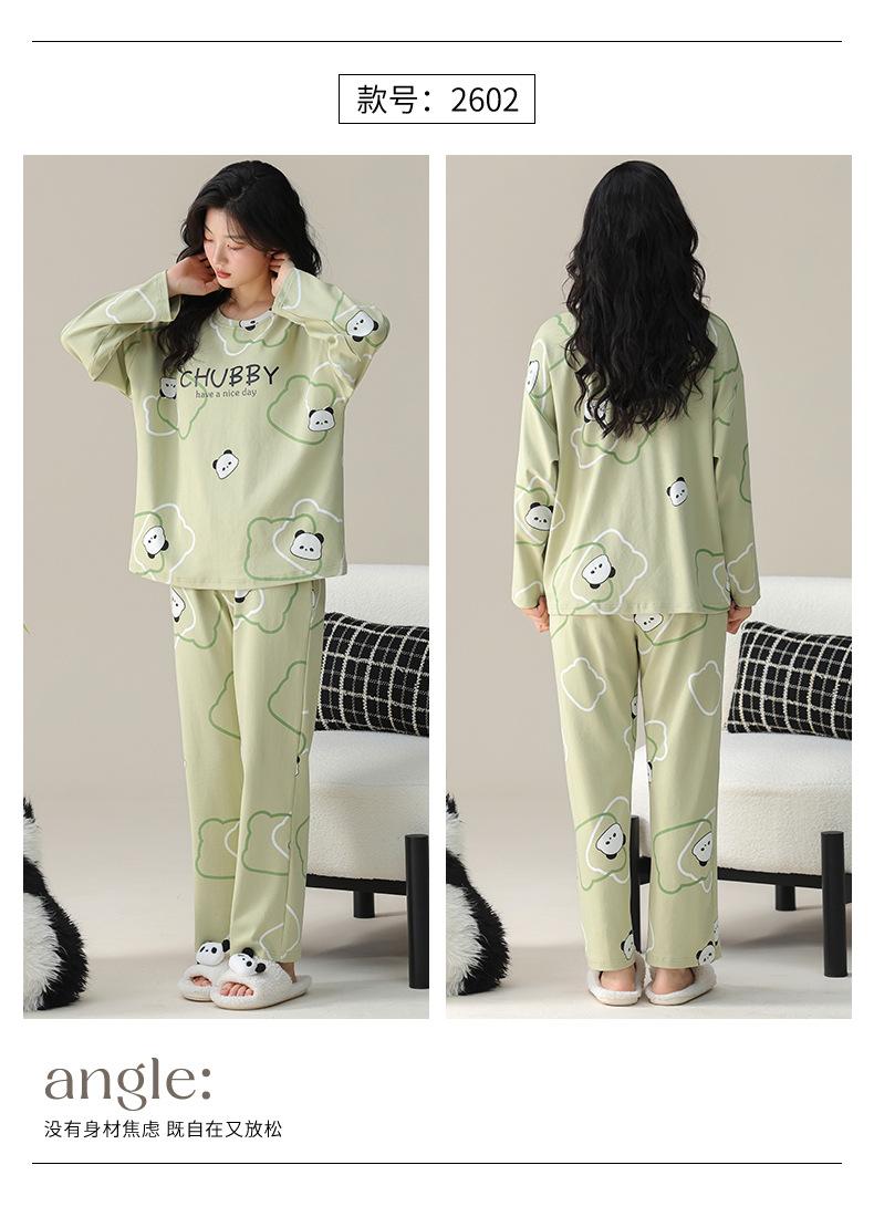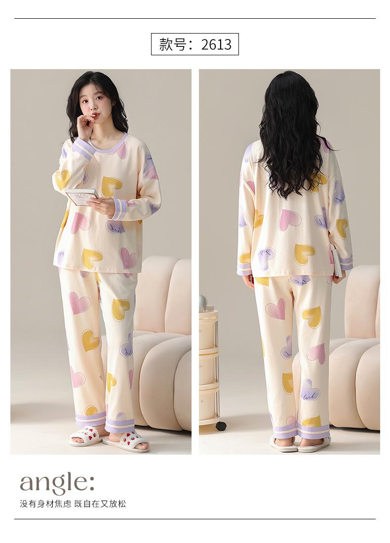 Pijama de Algodón Puro de Estilo Nuevo de Primavera y Otoño para Mujer, Manga Larga, Pantalón Largo, Jersey con Almohadilla en el Pecho, Conjunto de Ropa de Casa Casual y a la Moda