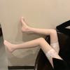 Medias Largas Negras, Femeninas, Ultradelgadas, Hasta el Muslo, Tipo Muslo Alto, Corte Medio Blanco y Negro, Pura Lujuria, Encaje en el Borde, Calcetines de Malla