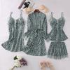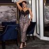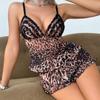 Lencería Sexy Pasión Tentación Abertura Pijama para Casa Encaje Estampado Leopardo Liguero para Mujer