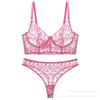 Ropa Interior Francesa Transfronteriza Verano Ultradelgada Transparente Encaje Bordado Sujetador Muestra Pechos Grandes Conjunto de Ropa Interior Sexy Pequeña Sujetador