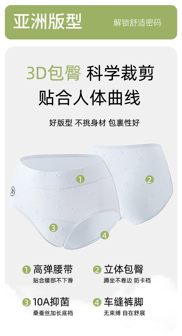 Ropa interior de algodón para bebé Clase A 100% algodón para mujer 10A antibacteriana entrepierna de seda de morera transpirable que envuelve la cadera deportiva sin costuras bragas para mujer