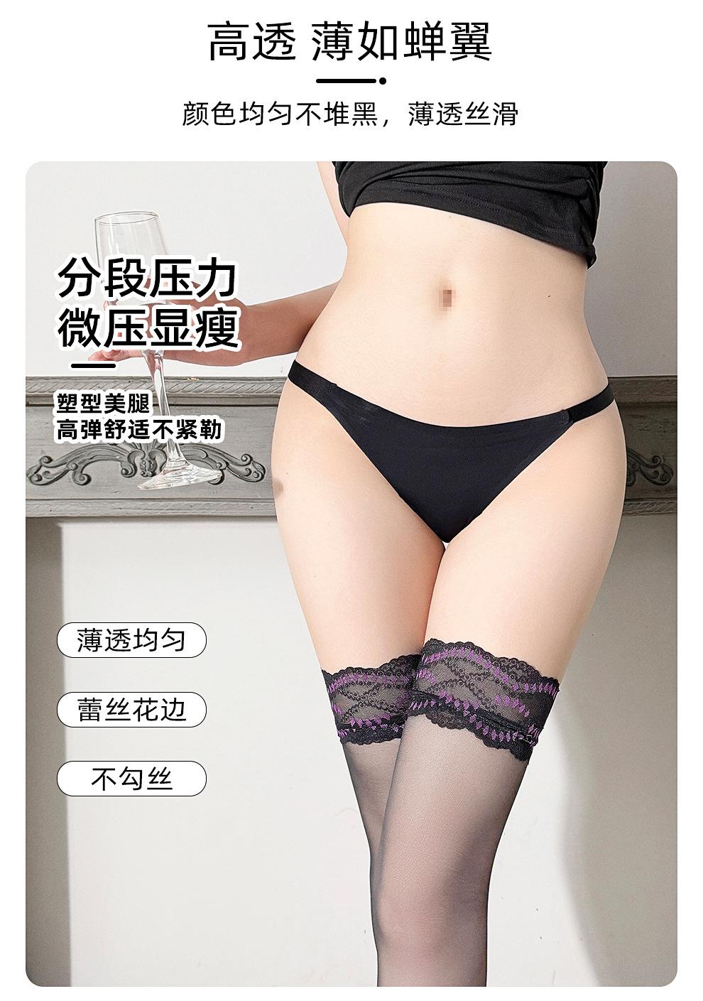Medias Largas Sexy con Encaje, Finas de Verano para Mujer, Punta Invisible, Transparentes Antideslizantes Hasta el Muslo, Medias Negras