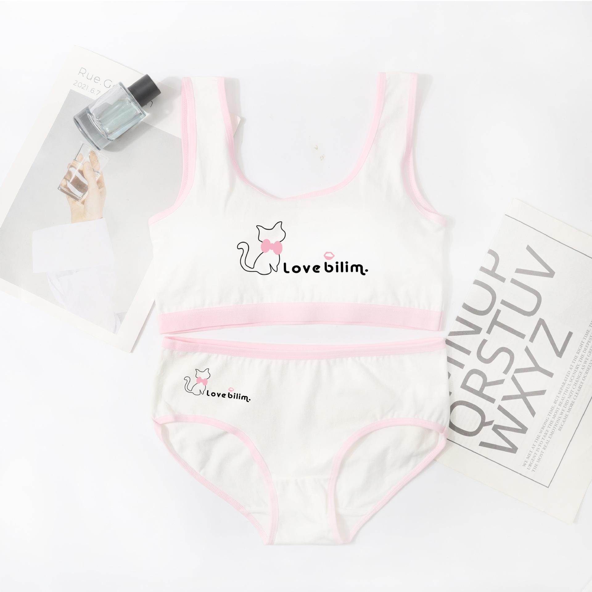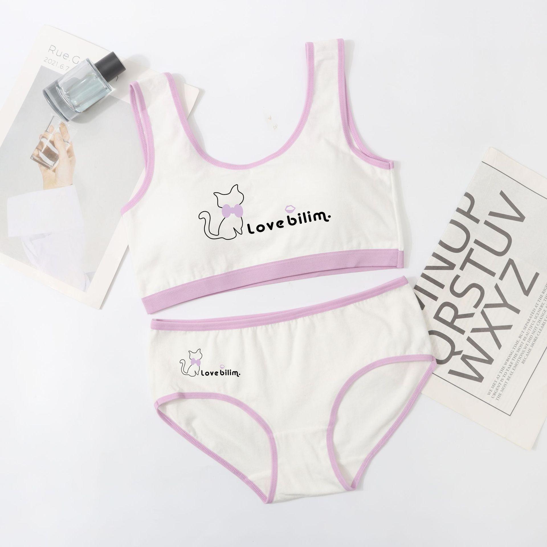Ropa Interior de Desarrollo para Niñas 9-12-14 Set de Ropa Interior Almohadilla de Esponja Sujetador para Niñas Estudiante Chaleco de Algodón Puro