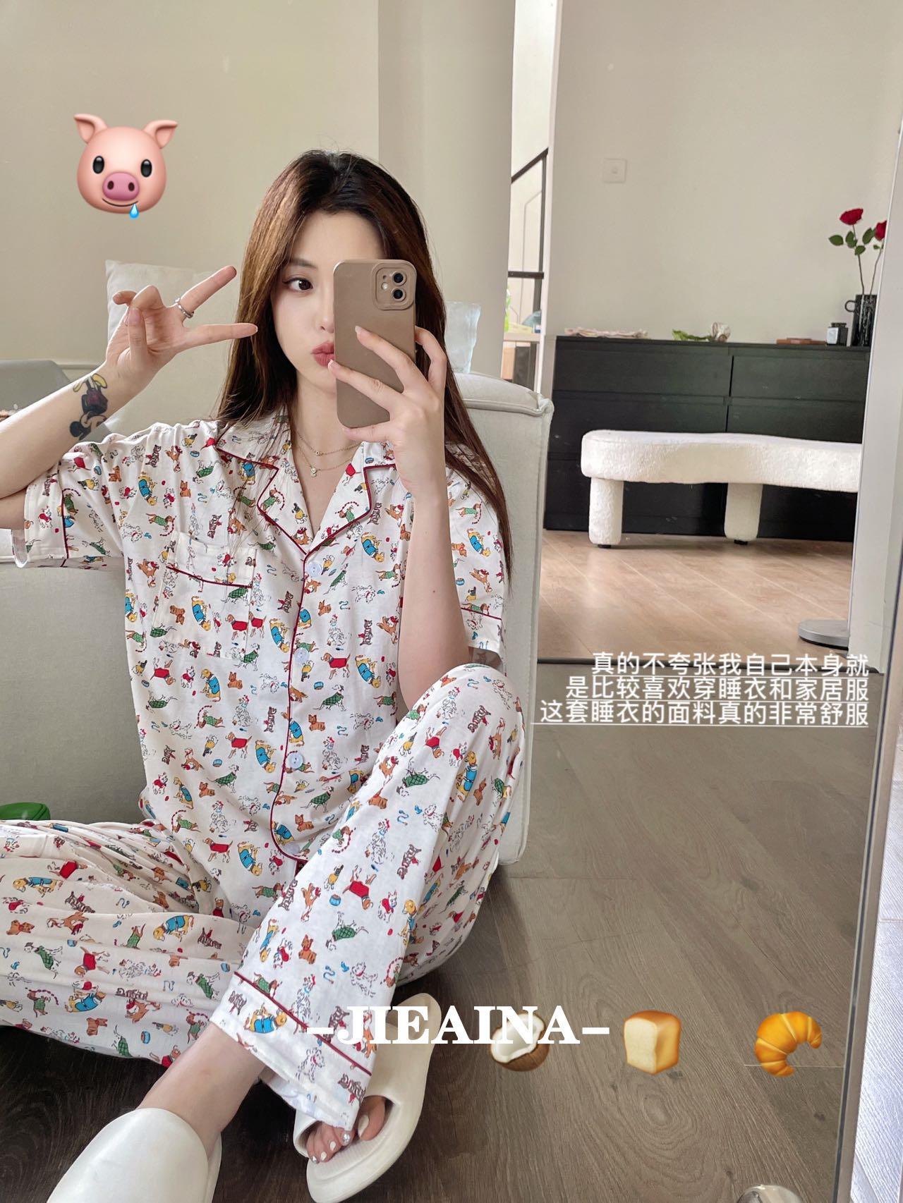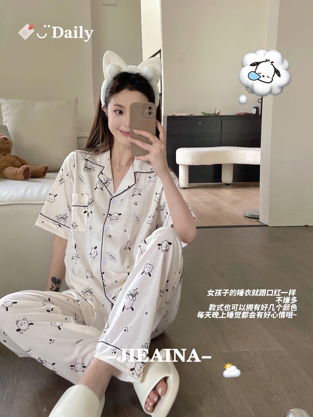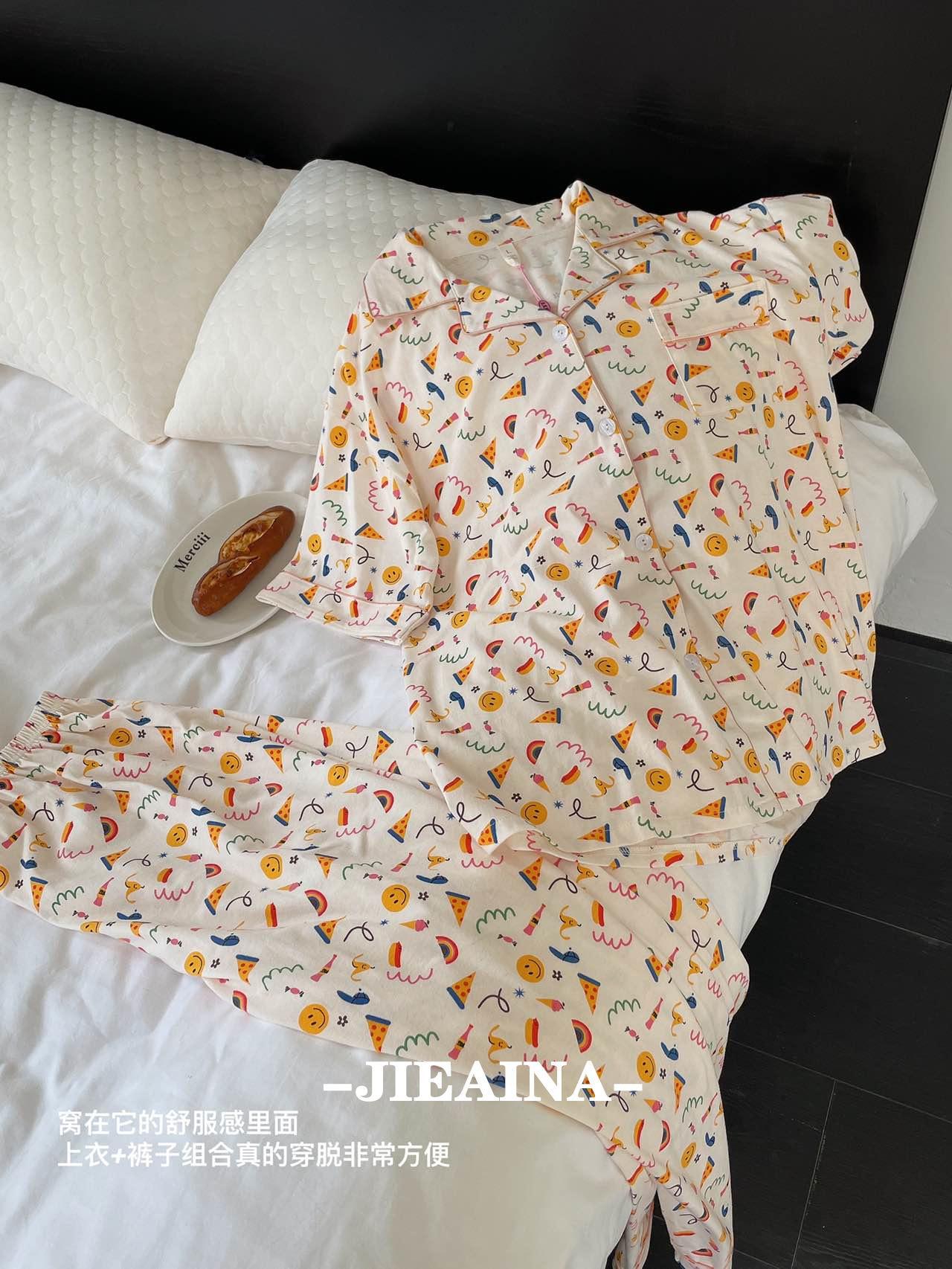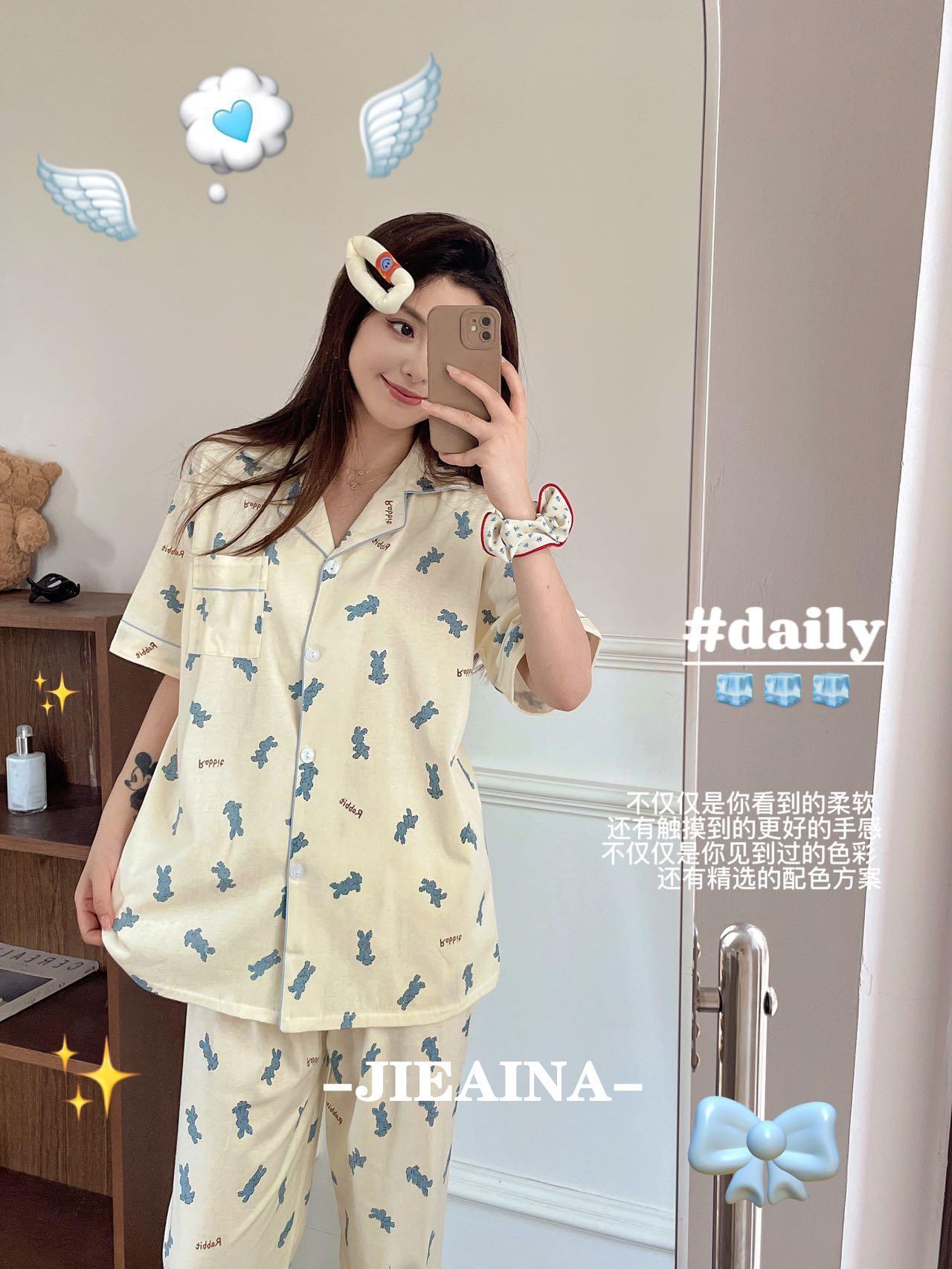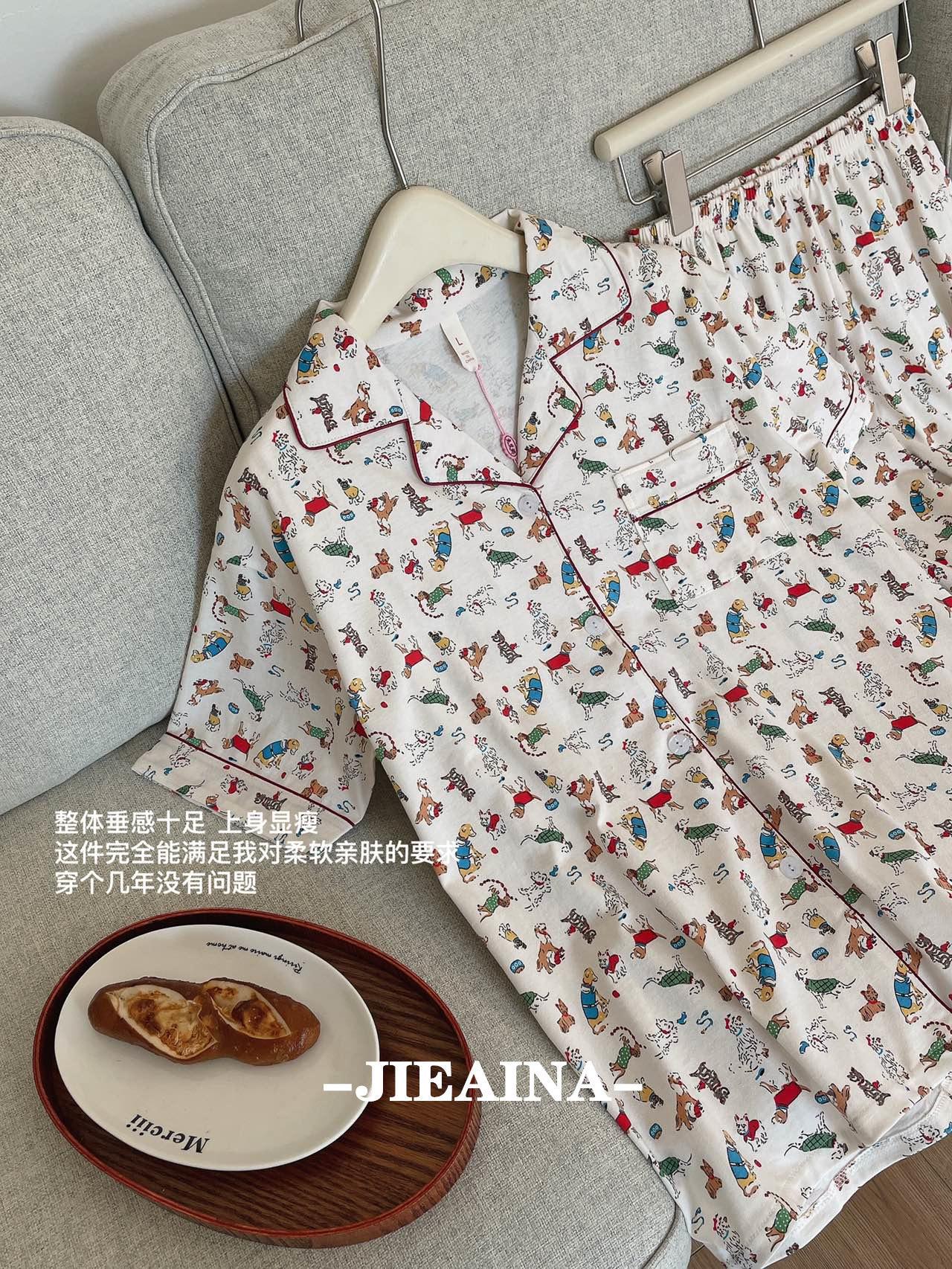 Verano Estilo Ins Edad Ropa para el Hogar Pijama de Algodón Puro para Mujer Pantalones de Manga Corta Ropa de Exterior Ropa Casual para el Hogar para Mujer