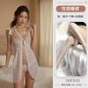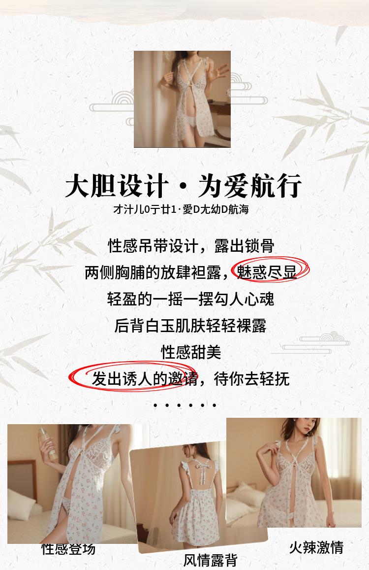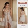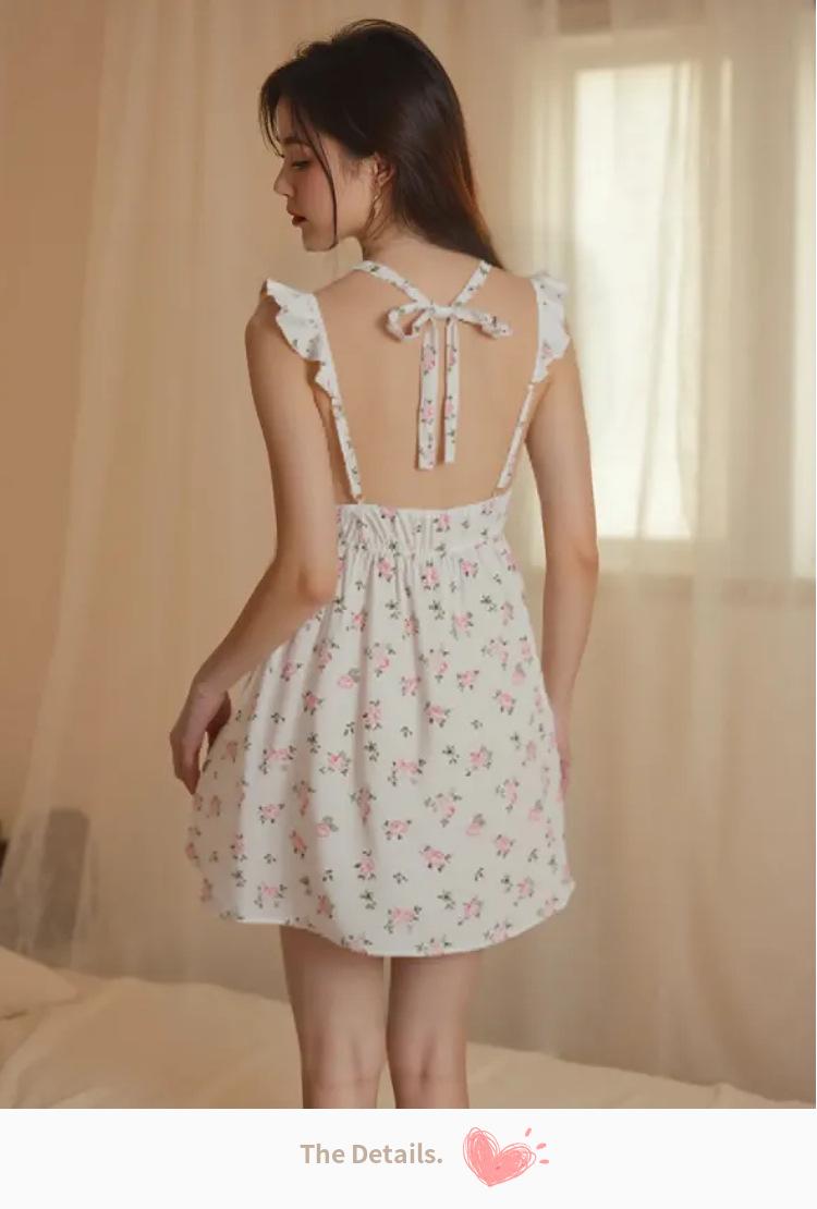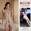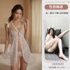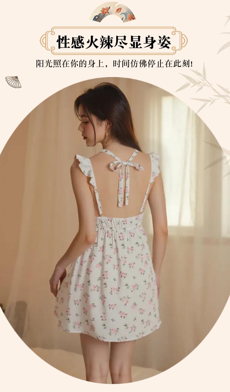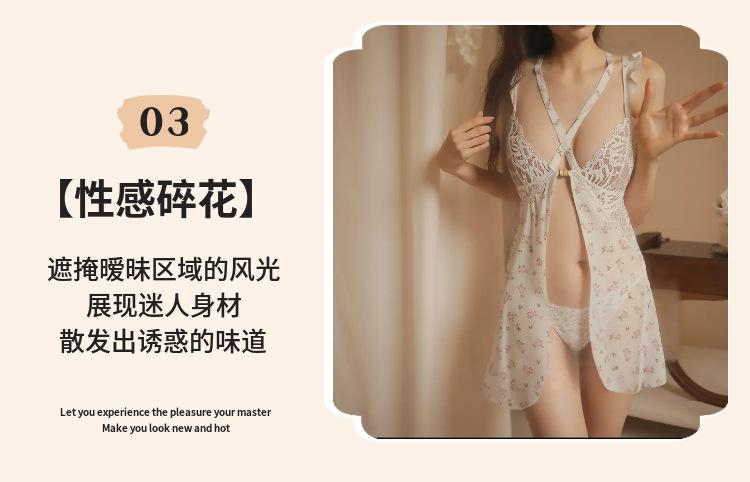 Divertido Camisón Dulce Estampado Floral Malla Encaje Patchwork Profundo V Tentación Sexy Espalda Descubierta Ropa de Dormir para Mujer