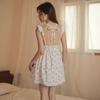 Floral suspender skirt, Floral camisole dress + white stockings, Floral spaghetti strap dress + white fishnet ...