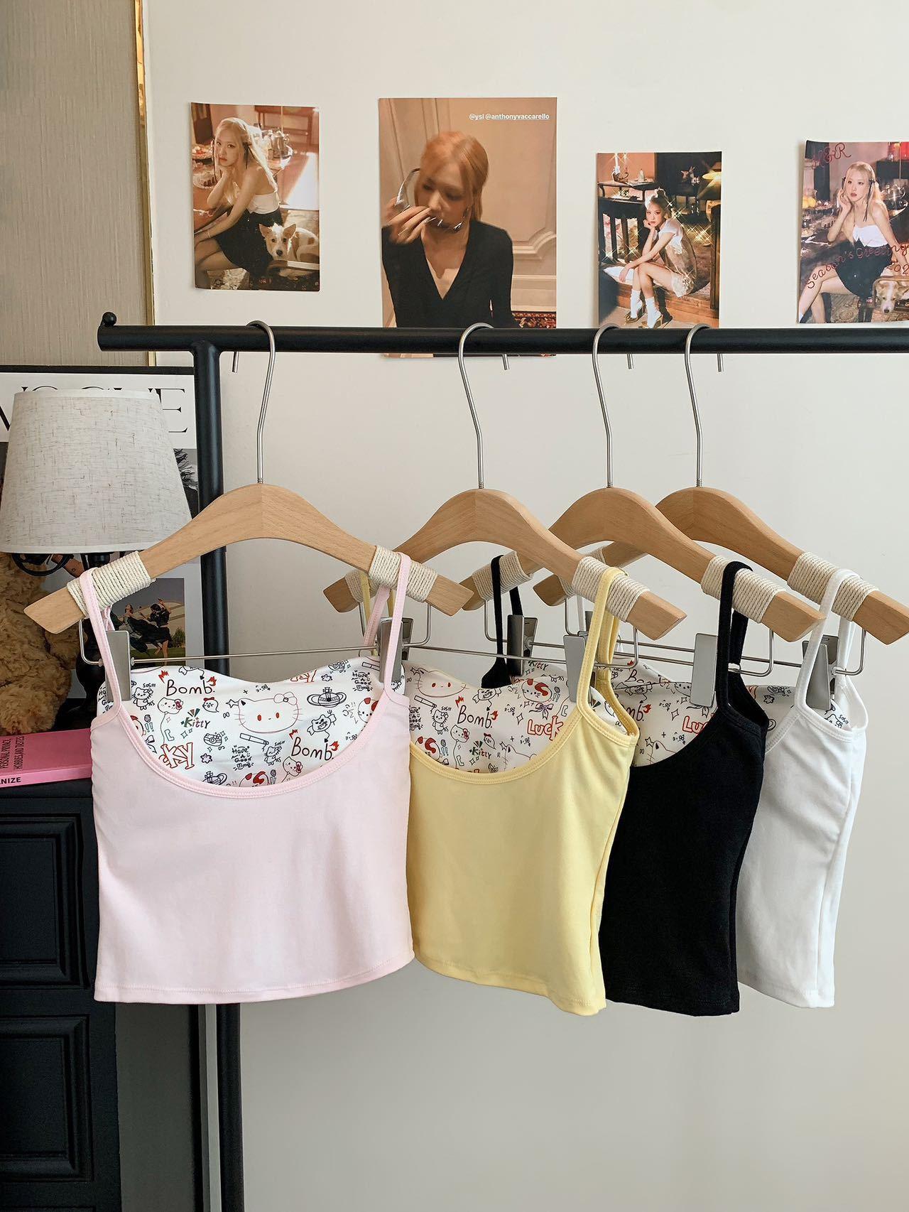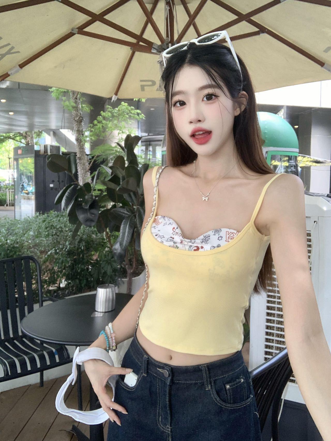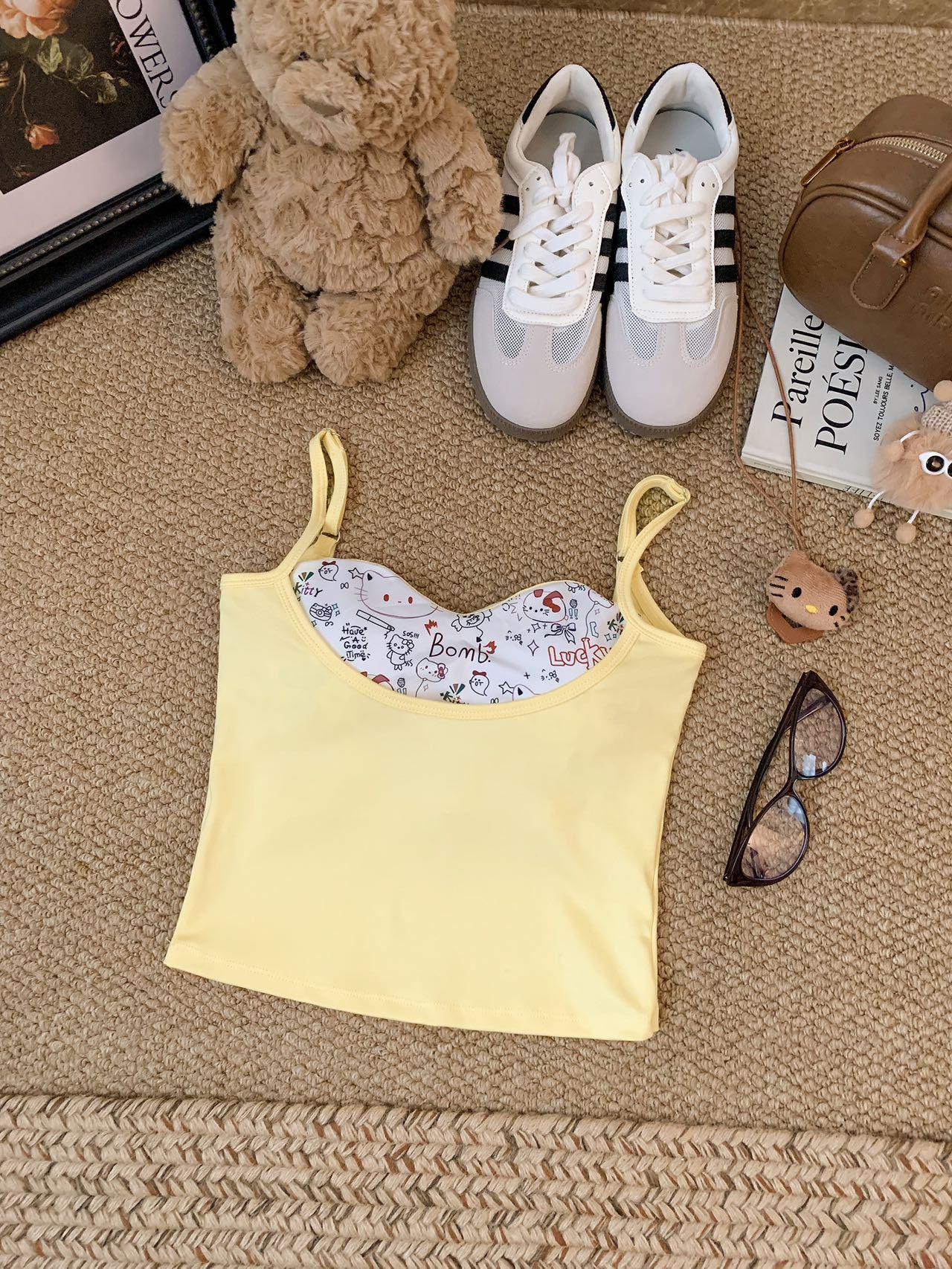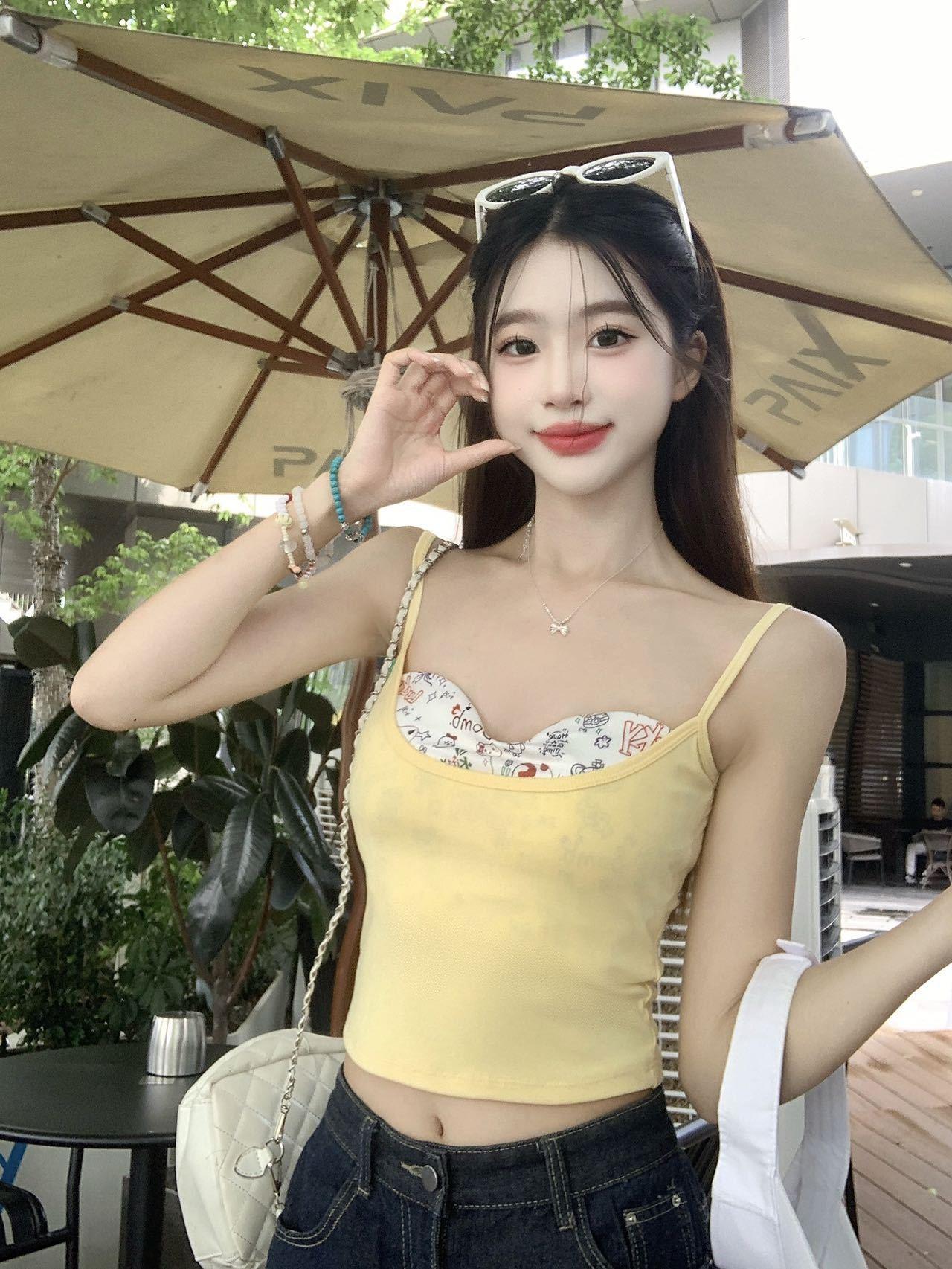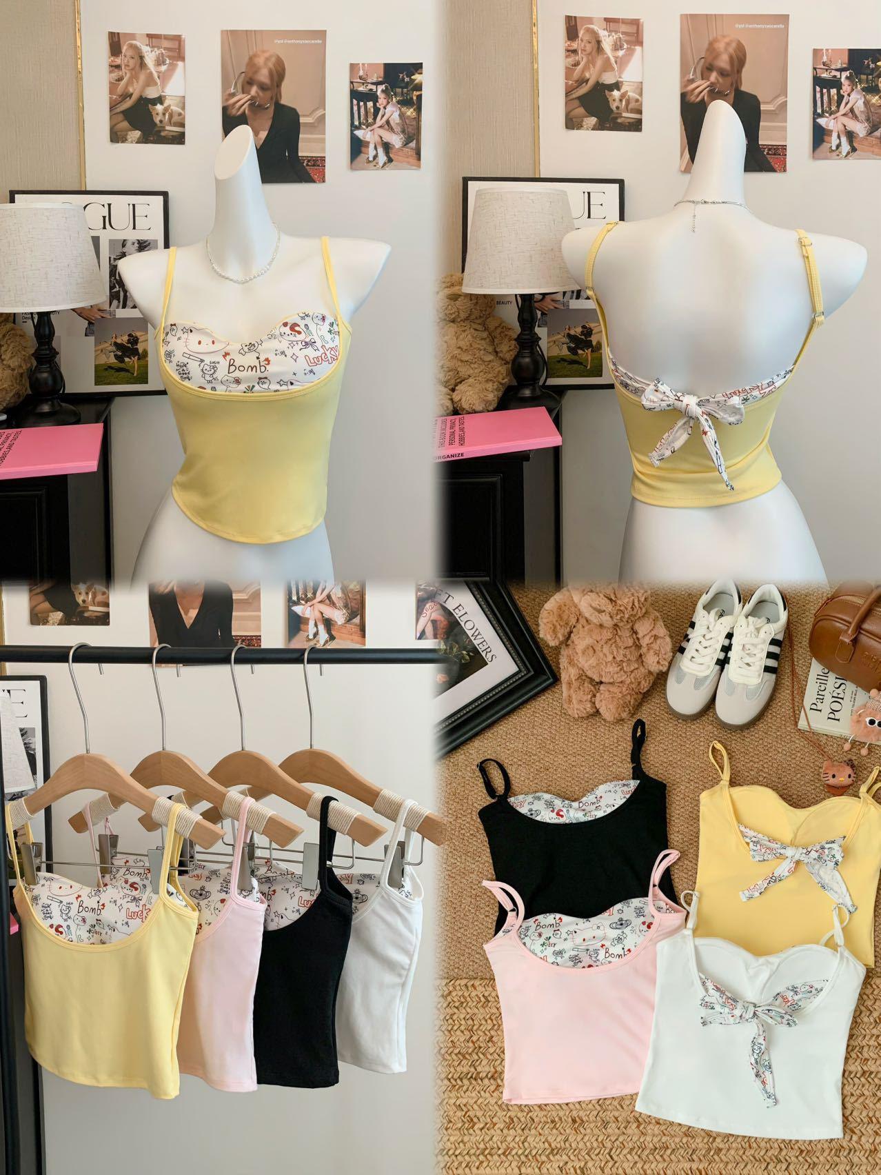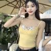 66007 # Rayón Falso Dos Piezas Floral Tirantes Chaleco Dulce de Verano para Mujer Top Básico de Deseo Puro con Almohadillas en el Busto