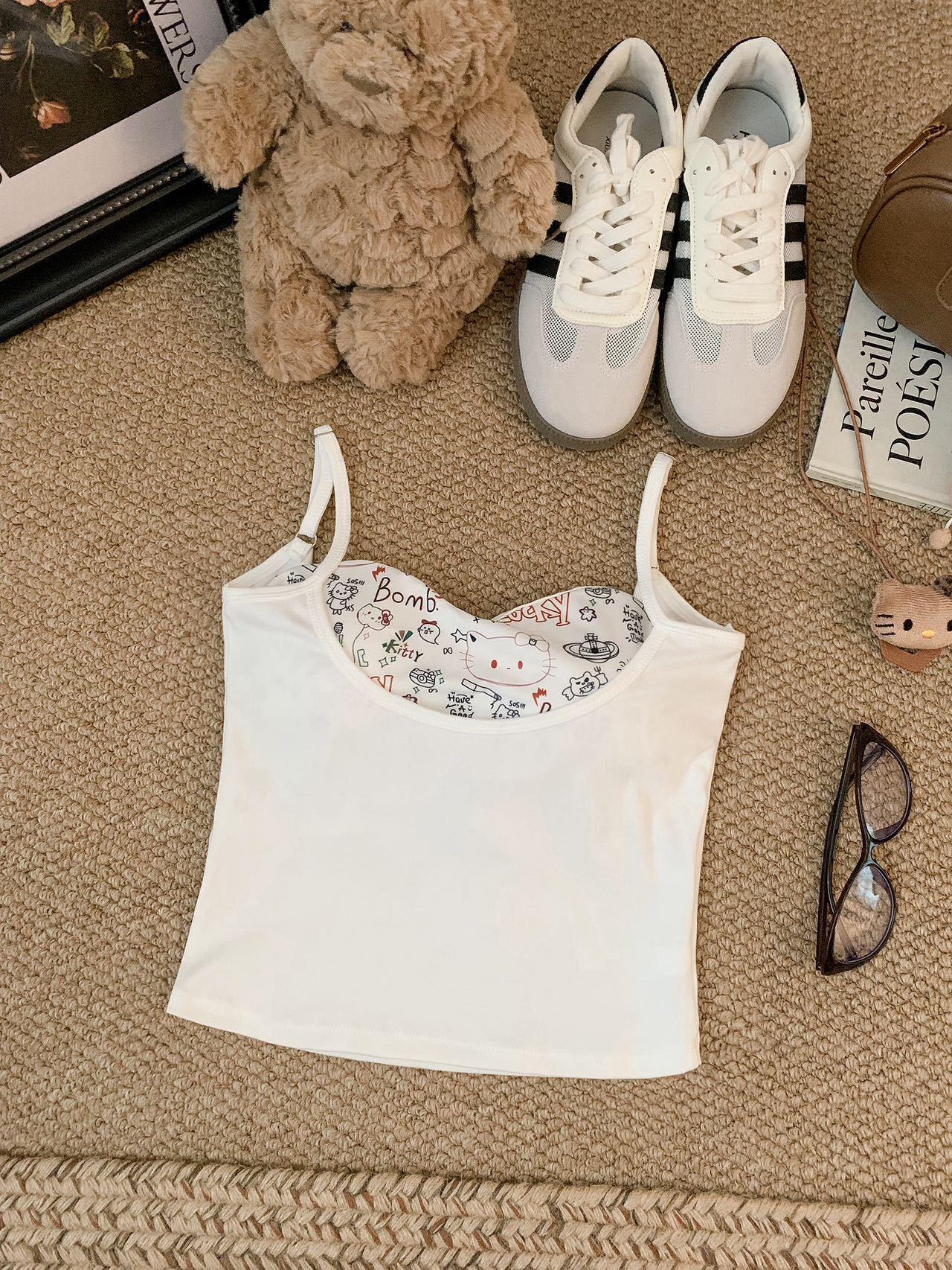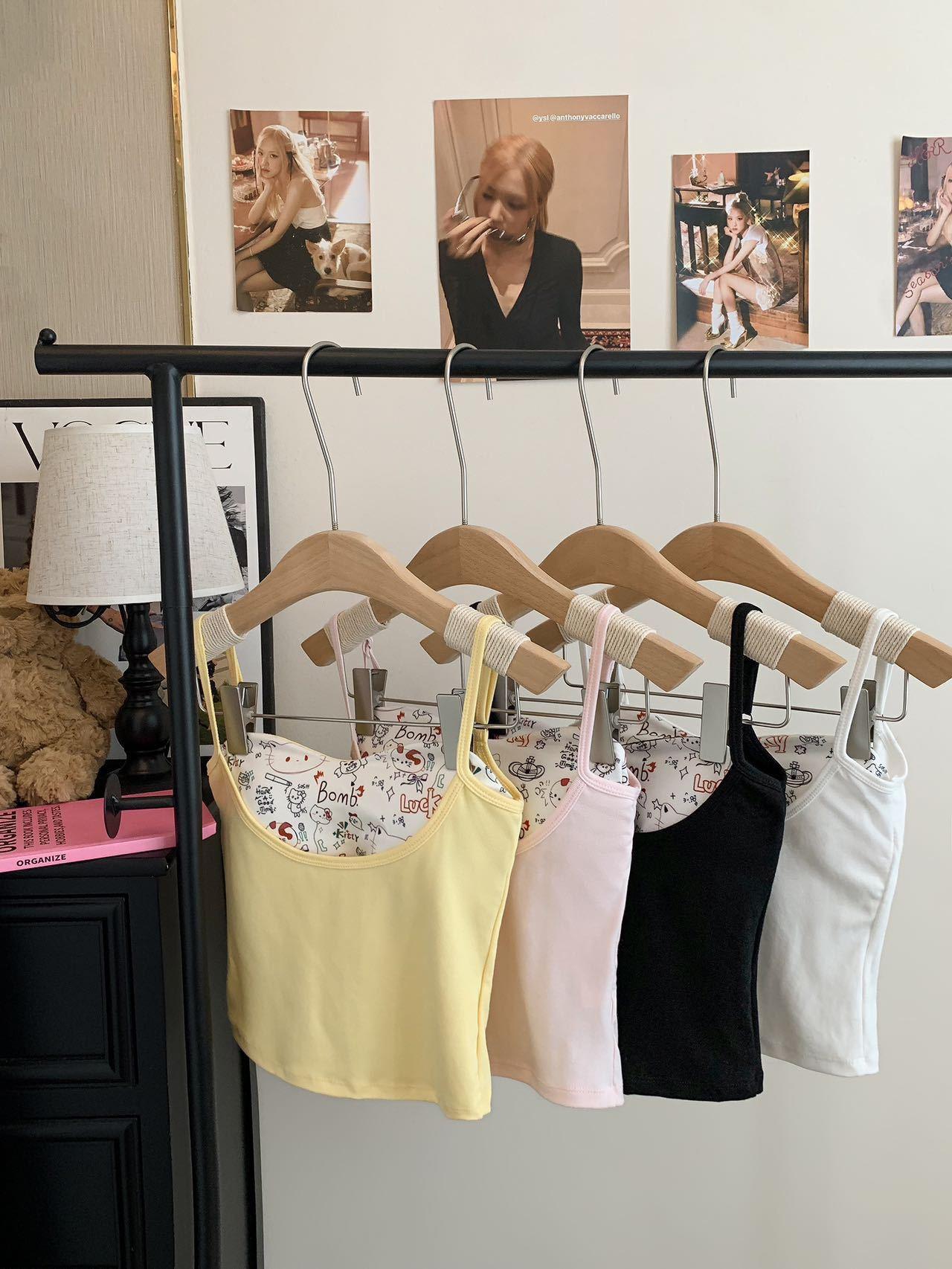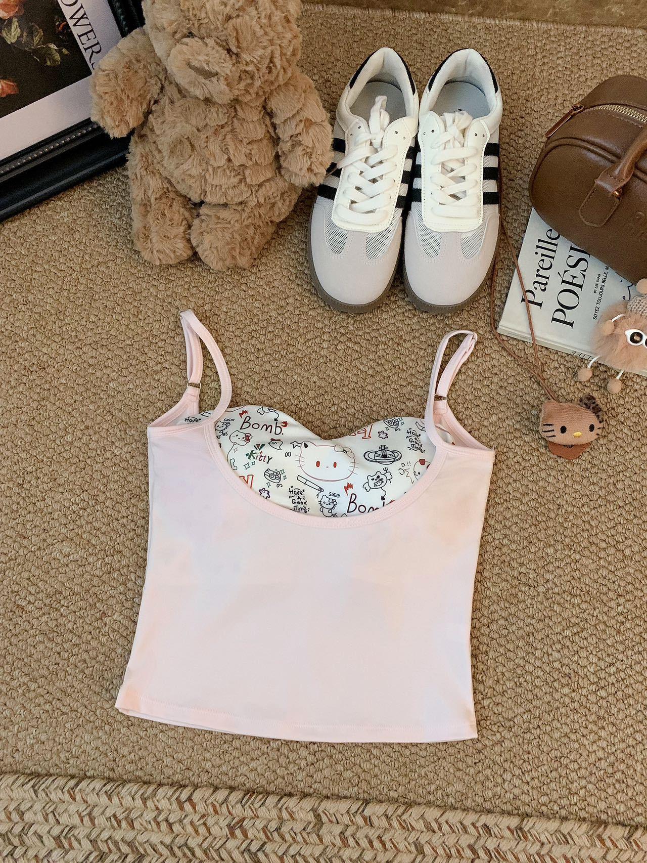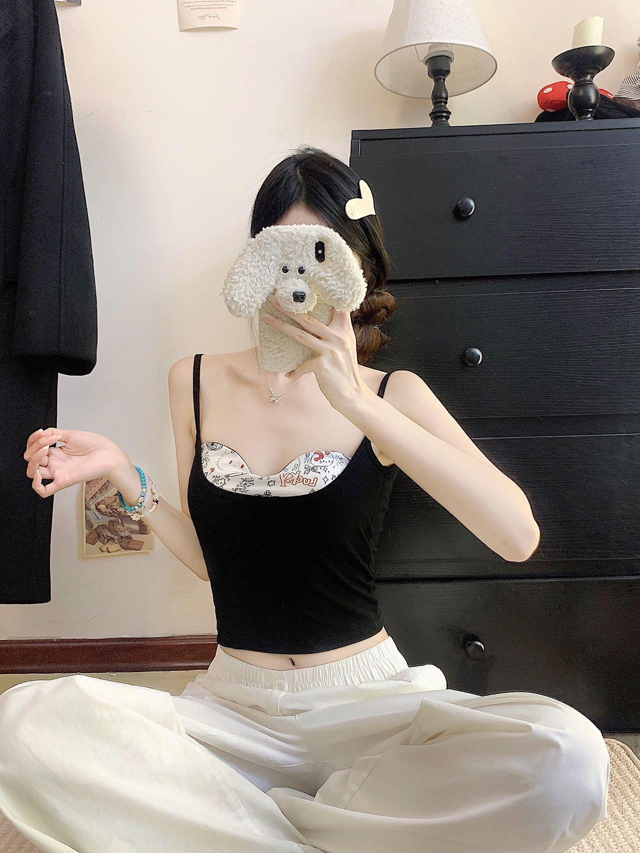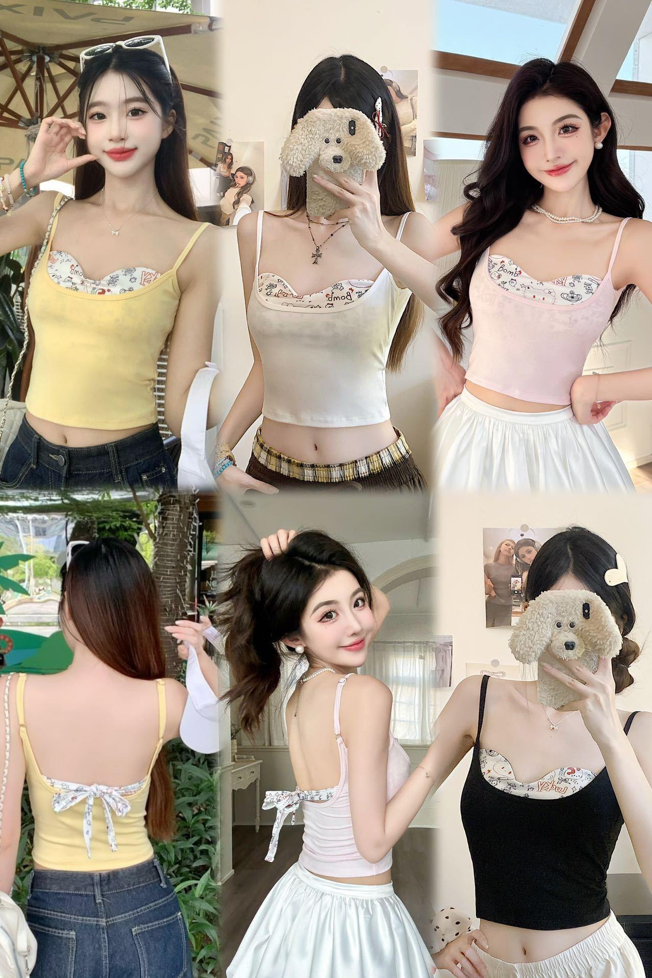 66007 # Rayón Falso Dos Piezas Floral Tirantes Chaleco Dulce de Verano para Mujer Top Básico de Deseo Puro con Almohadillas en el Busto
