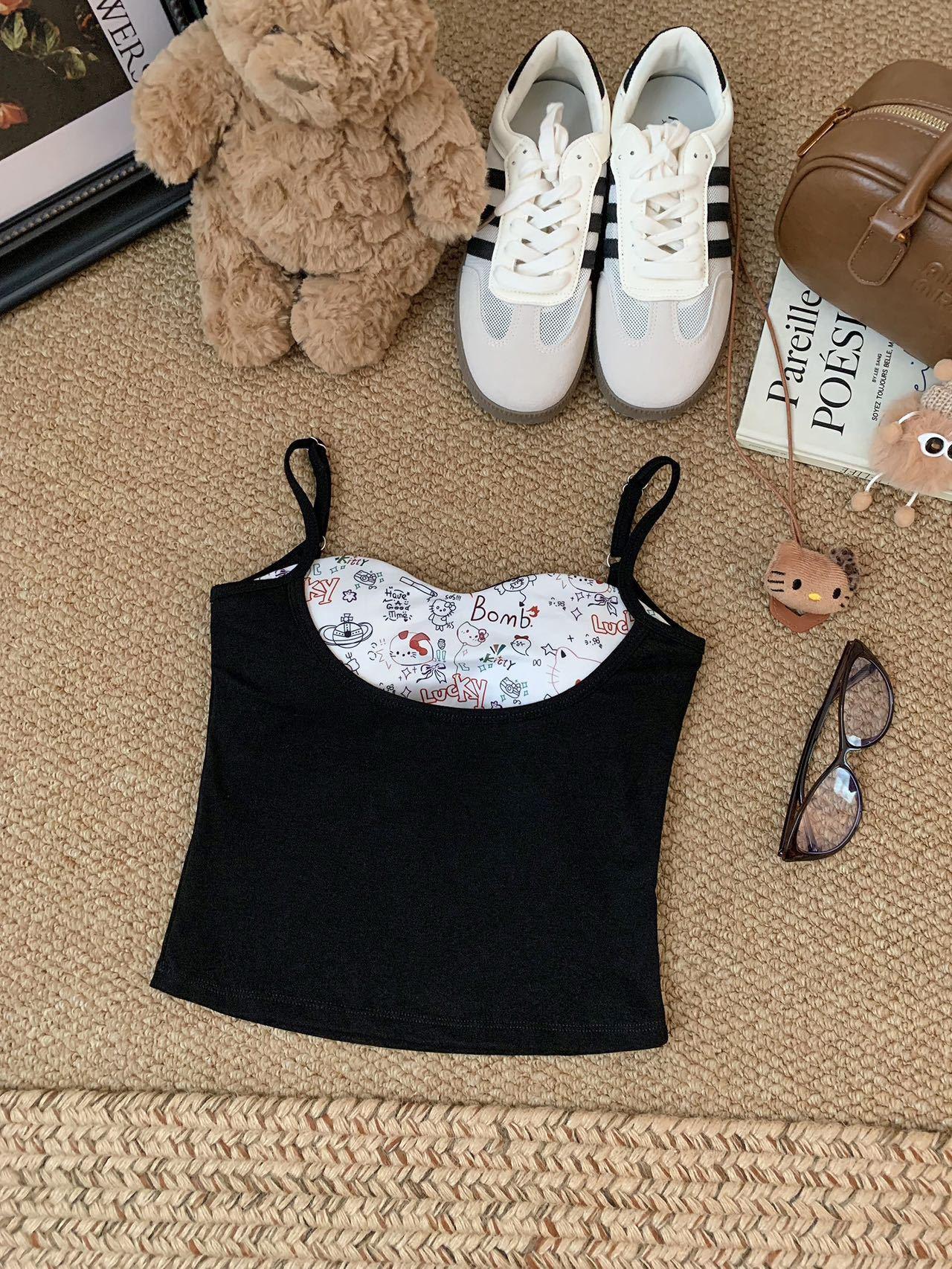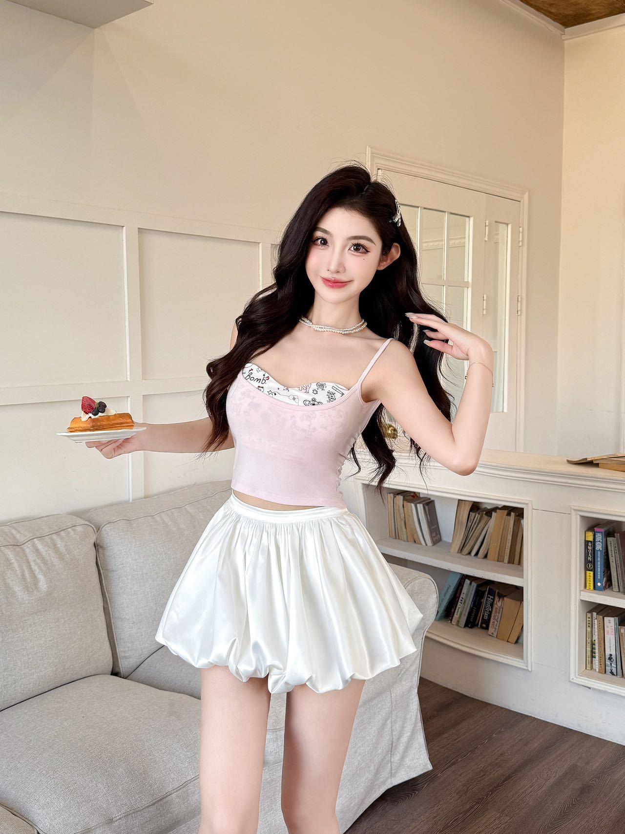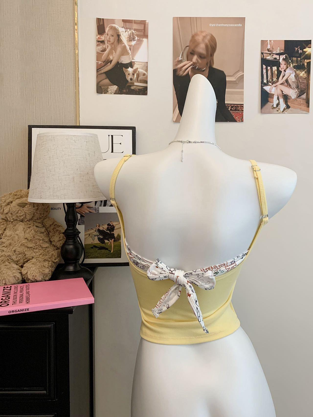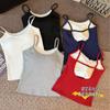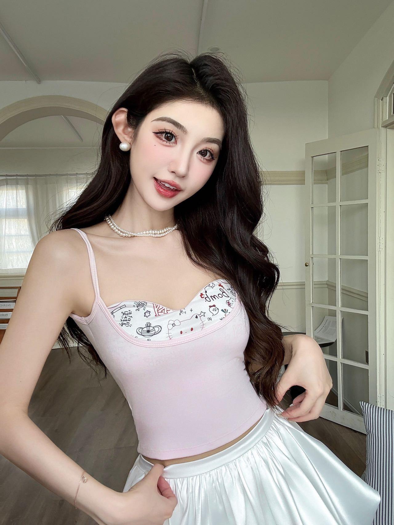 66007 # Rayón Falso Dos Piezas Floral Tirantes Chaleco Dulce de Verano para Mujer Top Básico de Deseo Puro con Almohadillas en el Busto
