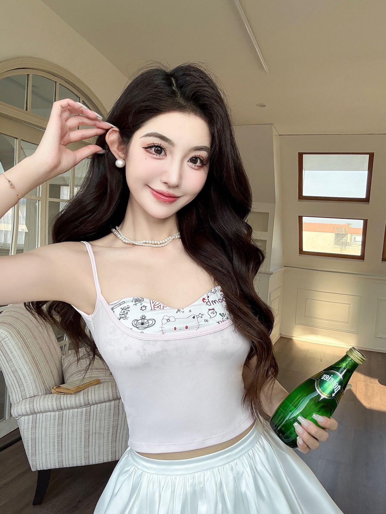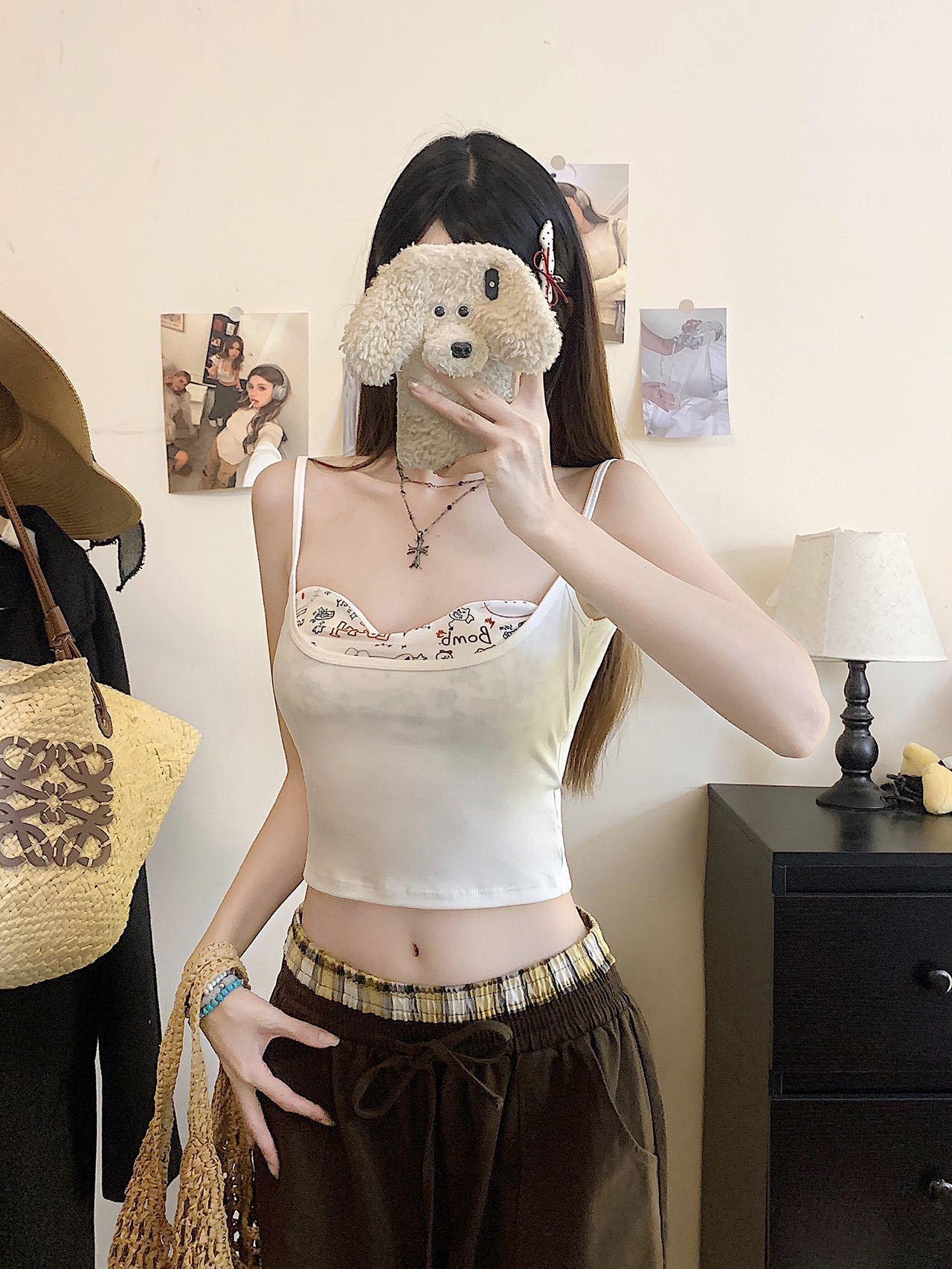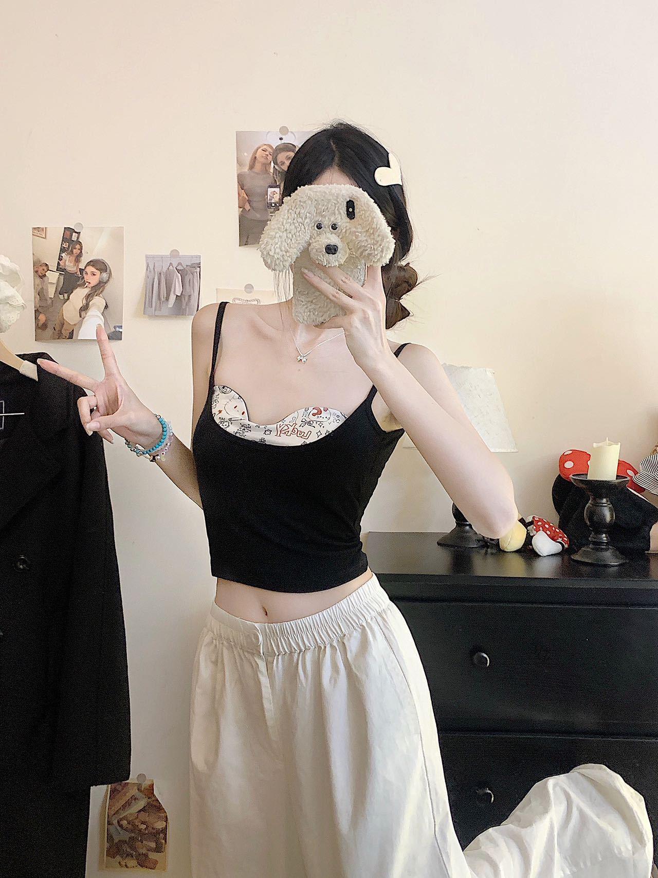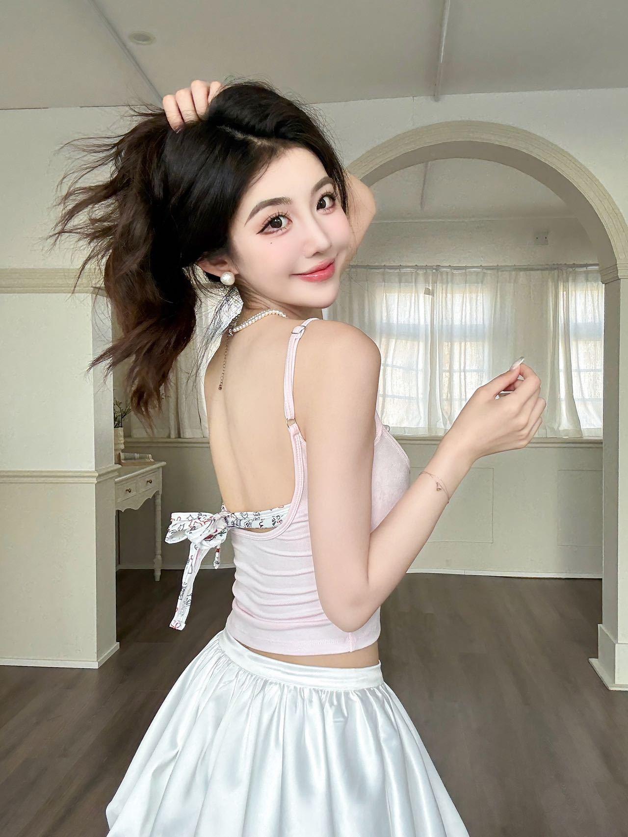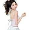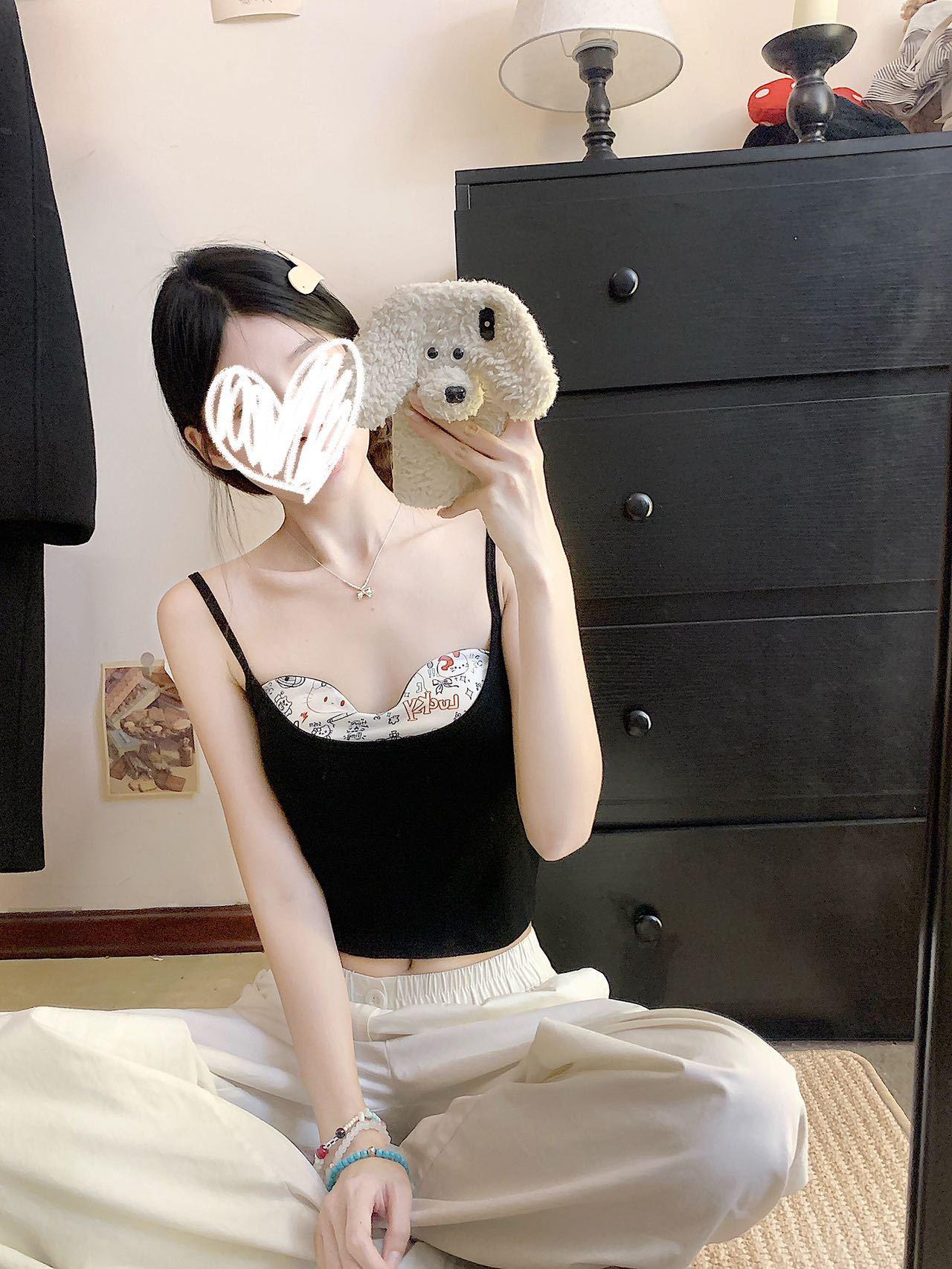 66007 # Rayón Falso Dos Piezas Floral Tirantes Chaleco Dulce de Verano para Mujer Top Básico de Deseo Puro con Almohadillas en el Busto