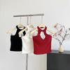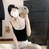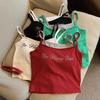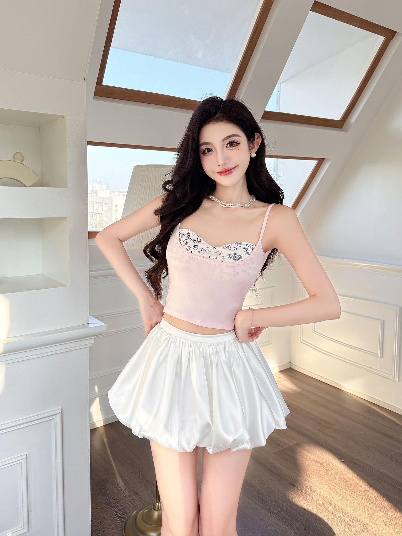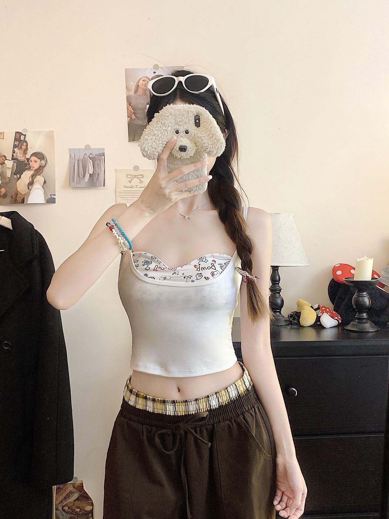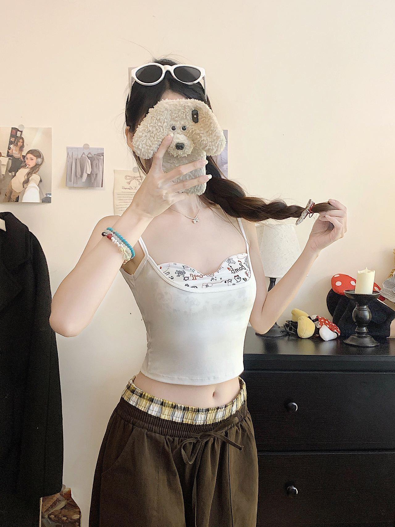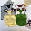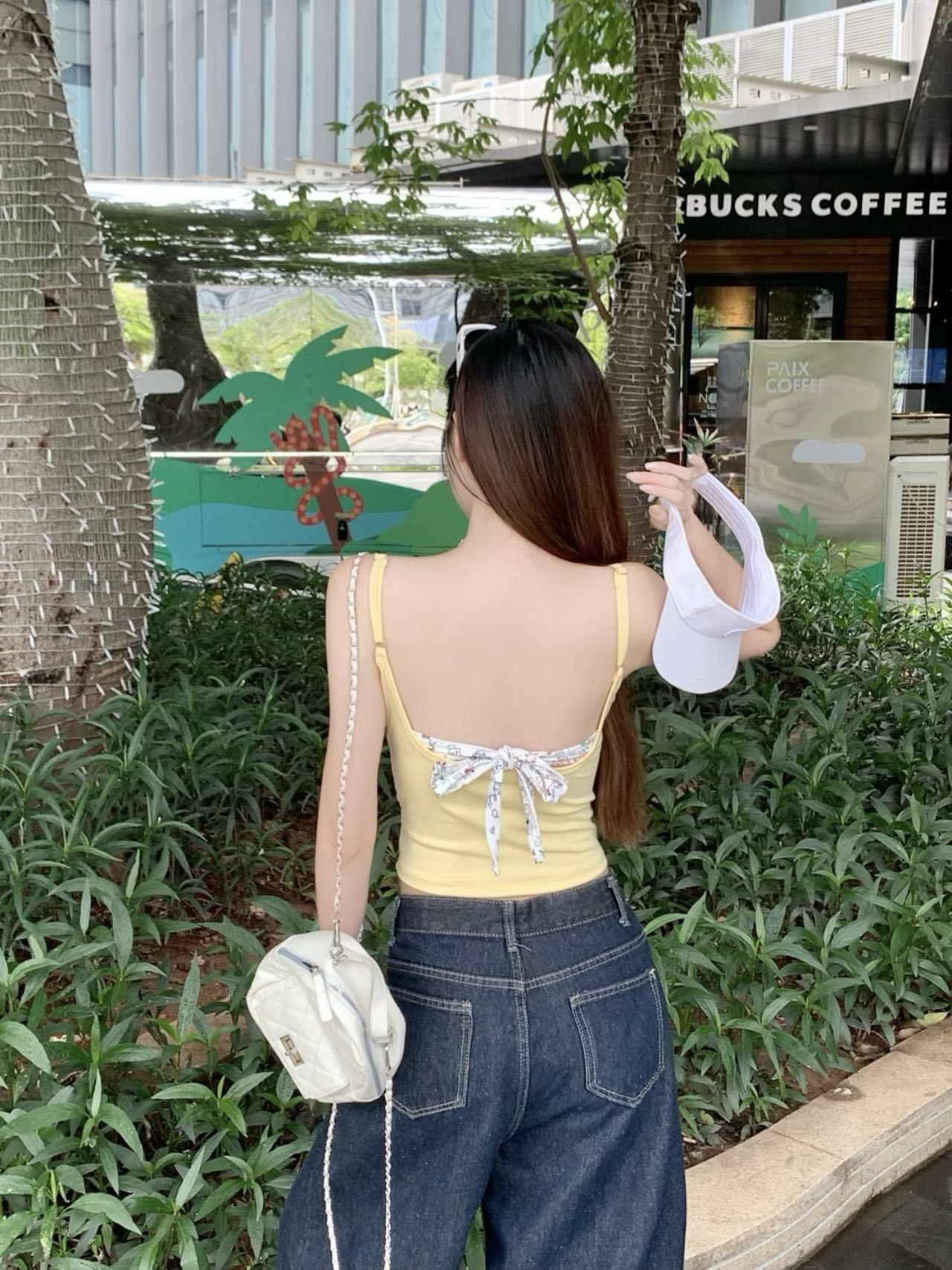66007 # Rayón Falso Dos Piezas Floral Tirantes Chaleco Dulce de Verano para Mujer Top Básico de Deseo Puro con Almohadillas en el Busto