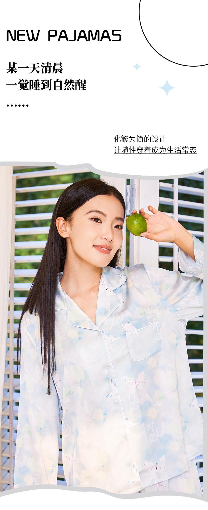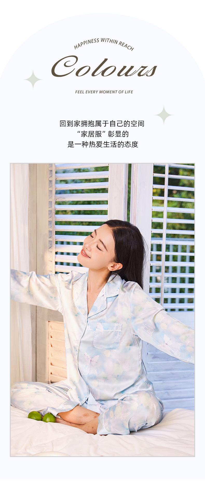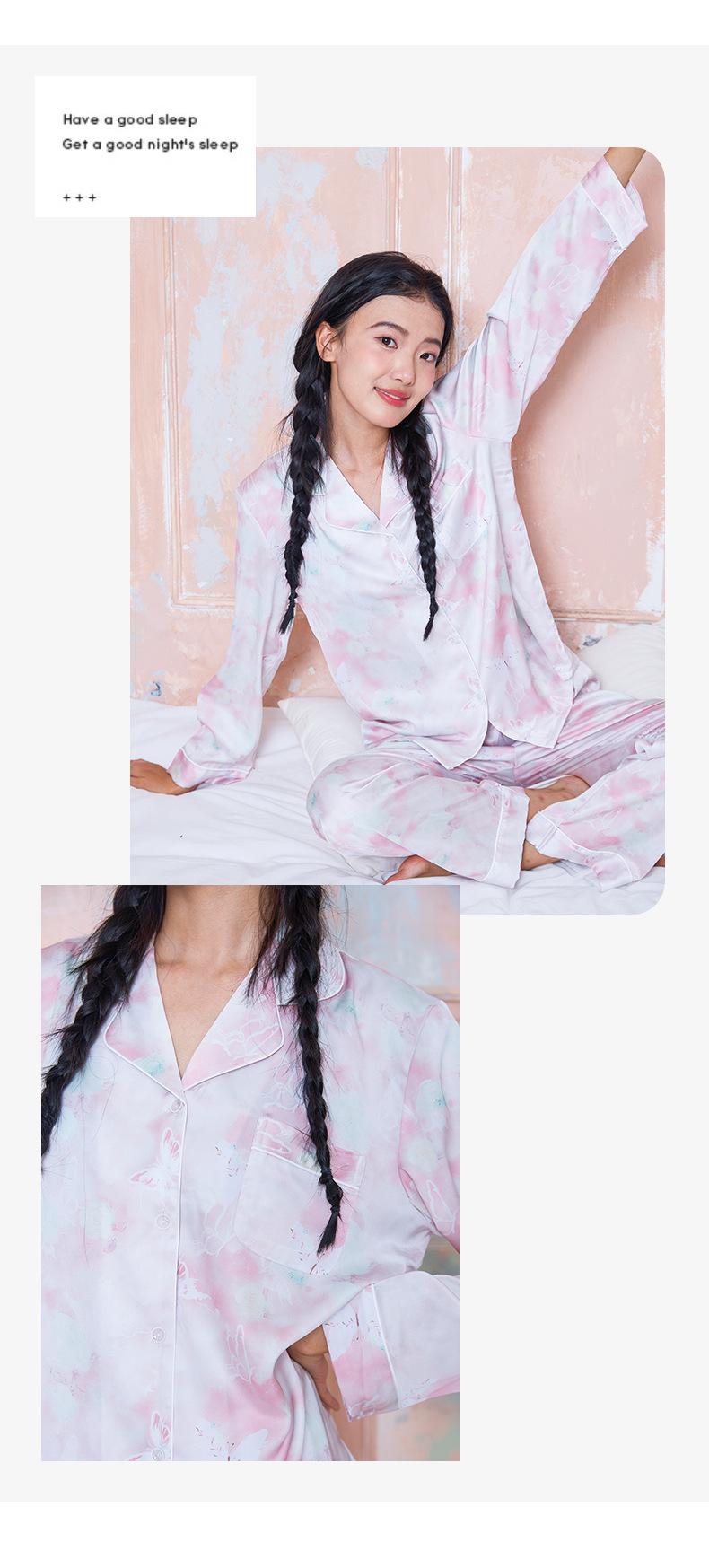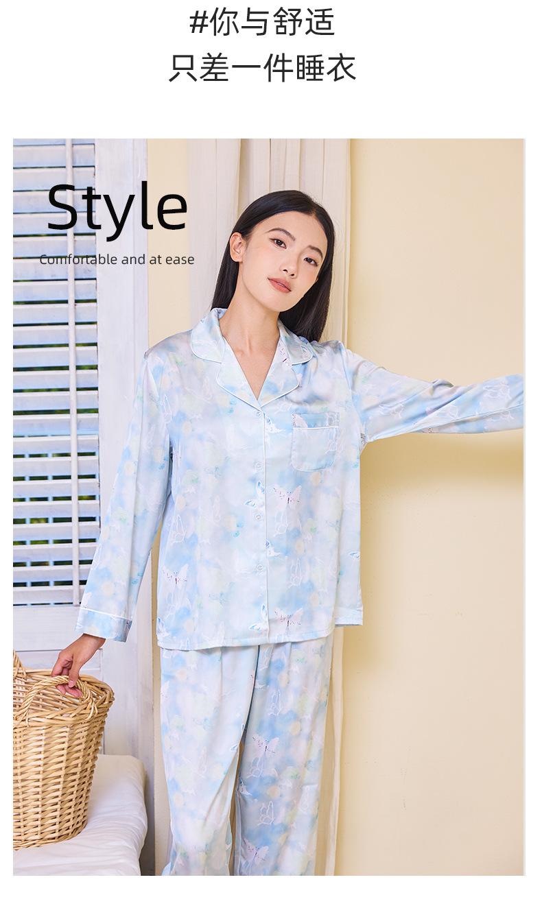 Pijama de Seda de Hielo para Mujer Otoño Color Aceite Mariposa Manga Larga Pantalón para Mejores Amigas Alta Calidad Delgada Primavera y Otoño Traje de Ropa para Casa