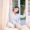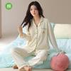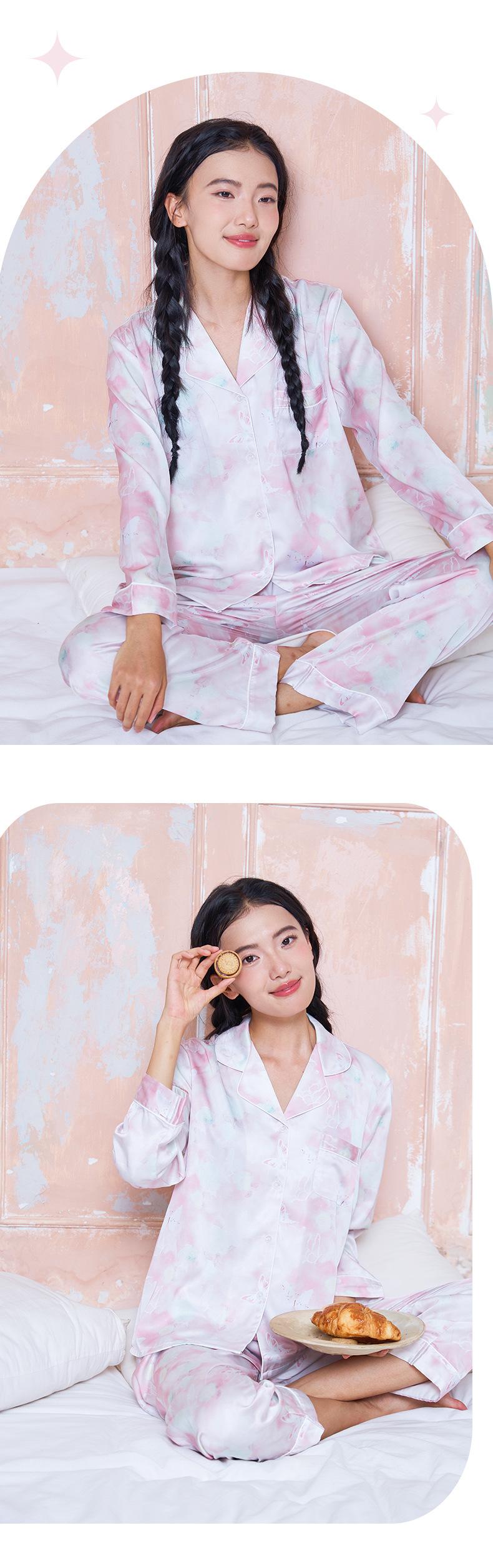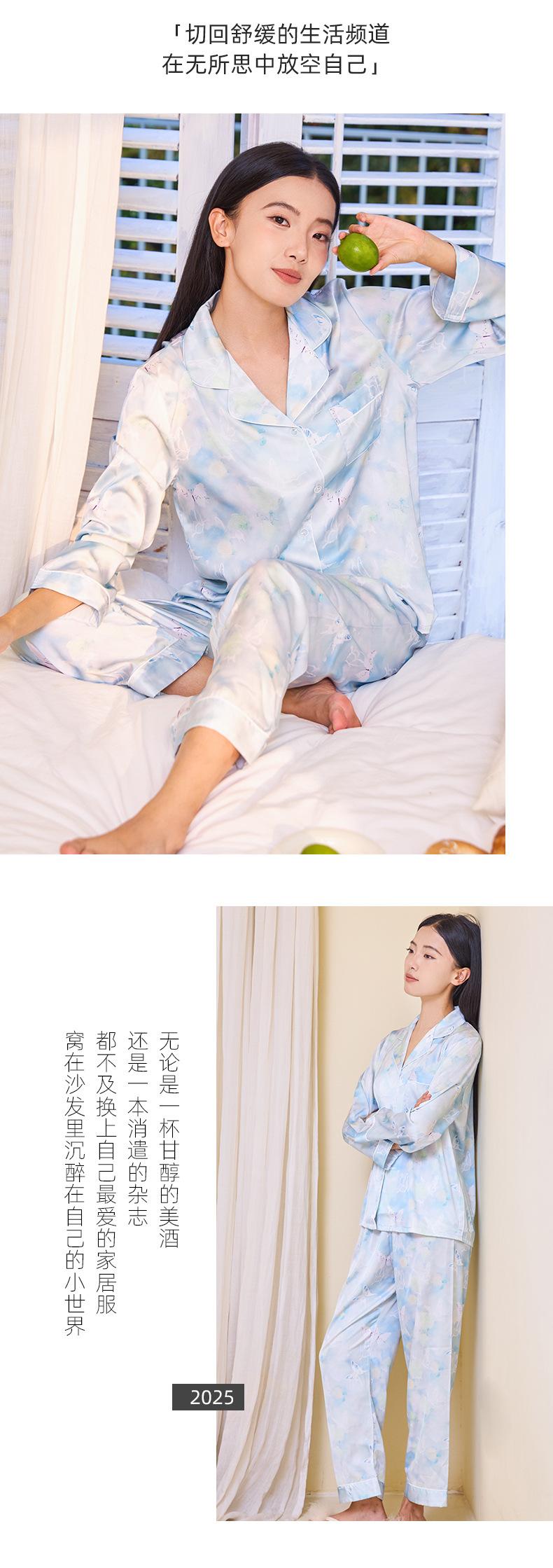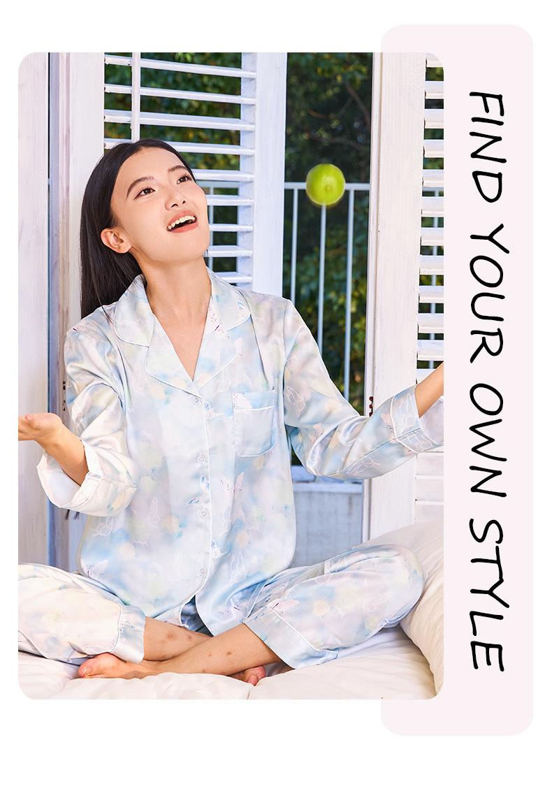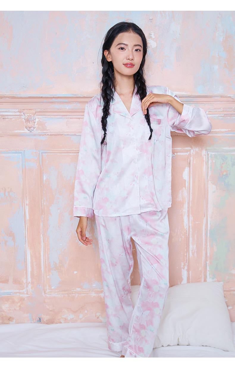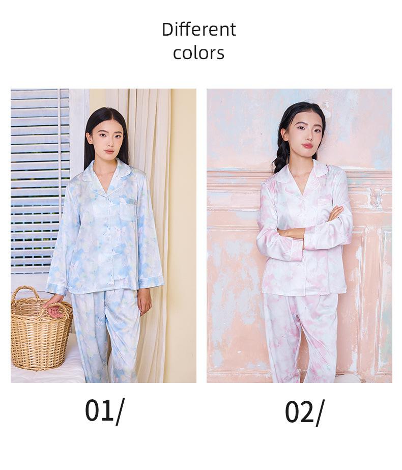 Pijama de Seda de Hielo para Mujer Otoño Color Aceite Mariposa Manga Larga Pantalón para Mejores Amigas Alta Calidad Delgada Primavera y Otoño Traje de Ropa para Casa