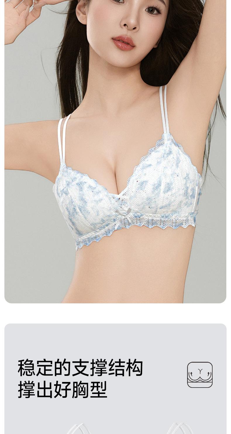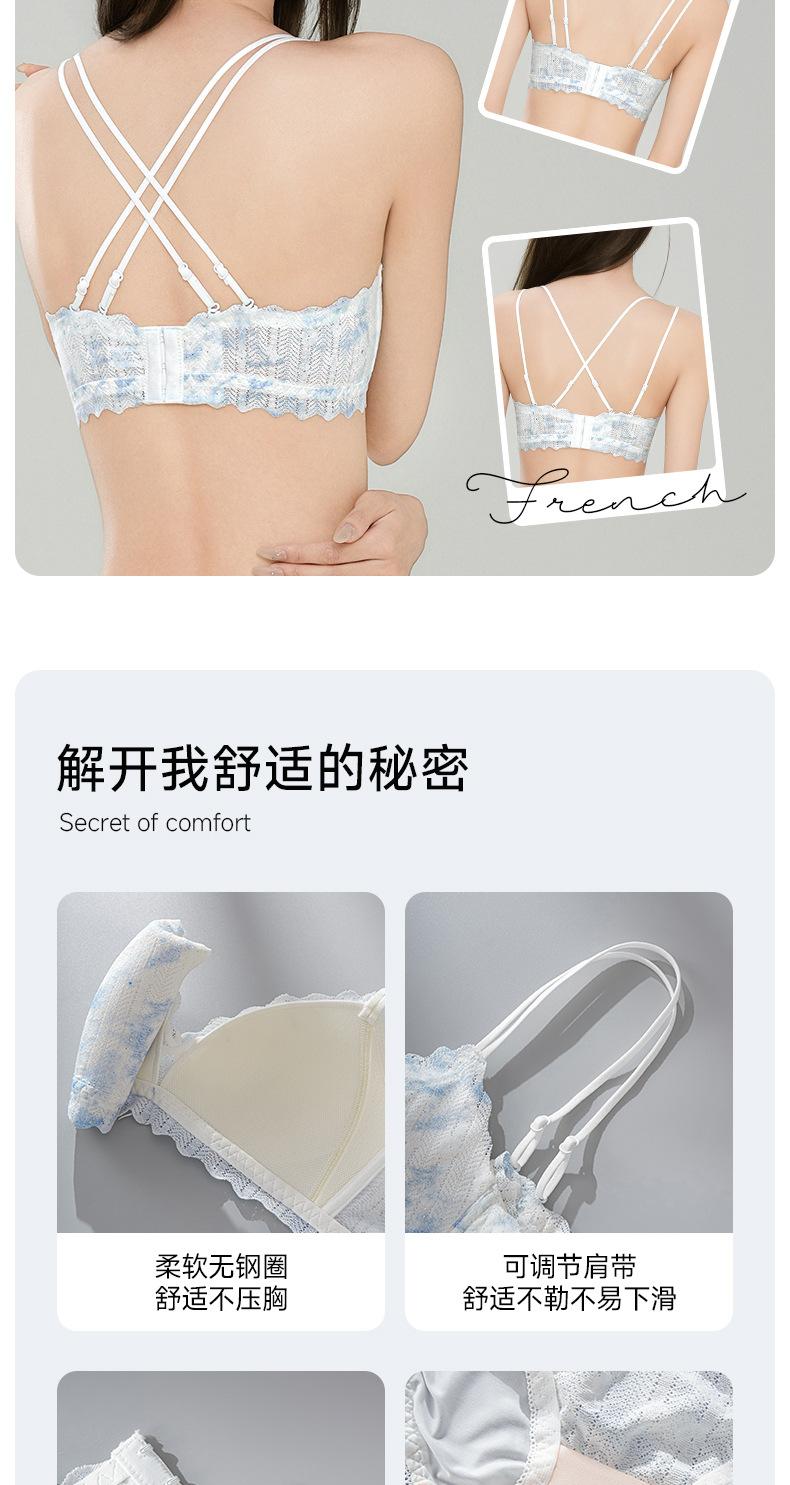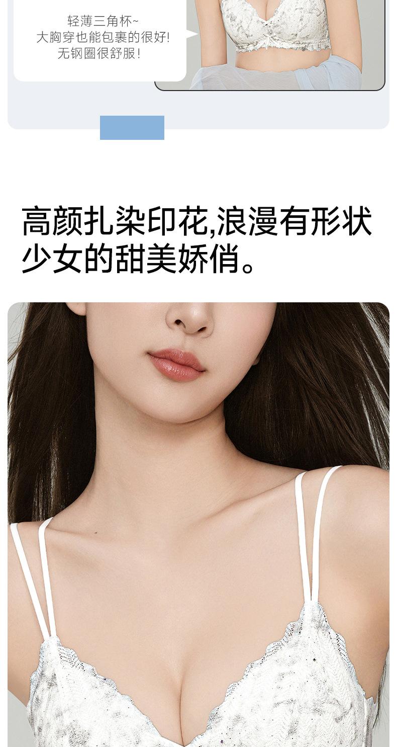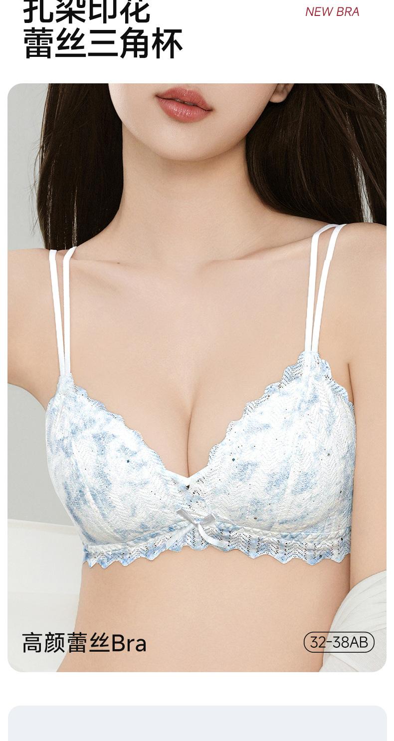 Ropa interior de copa triangular fija de encaje francés para mujer, Push-Up Anticaída Tie-Dye para senos grandes, Sujetador pequeño con espalda cruzada