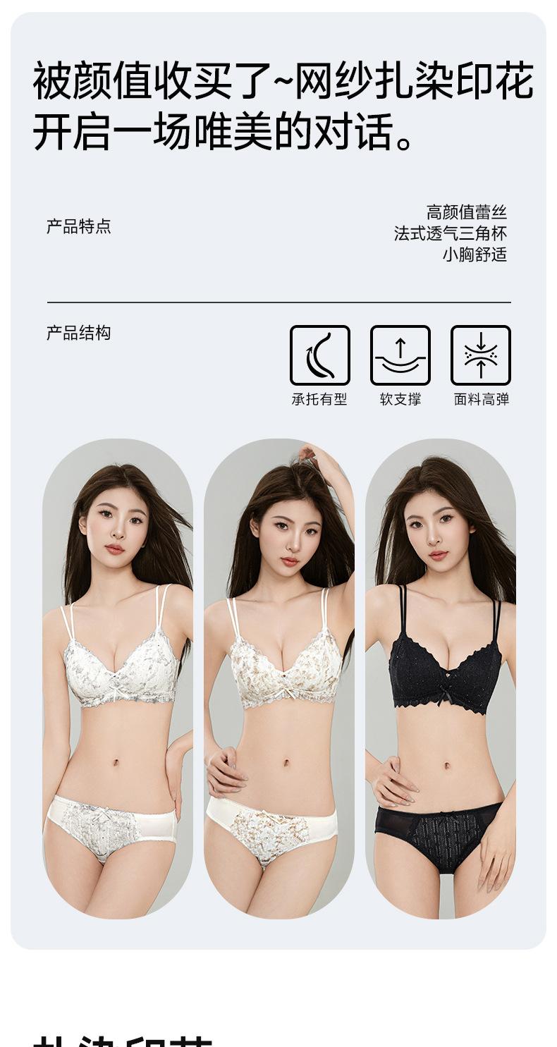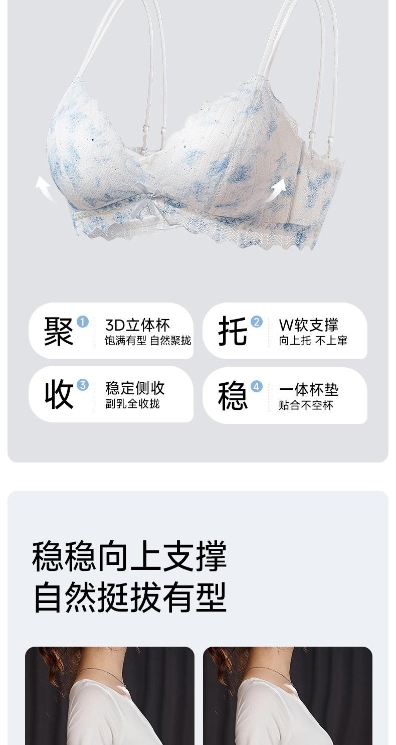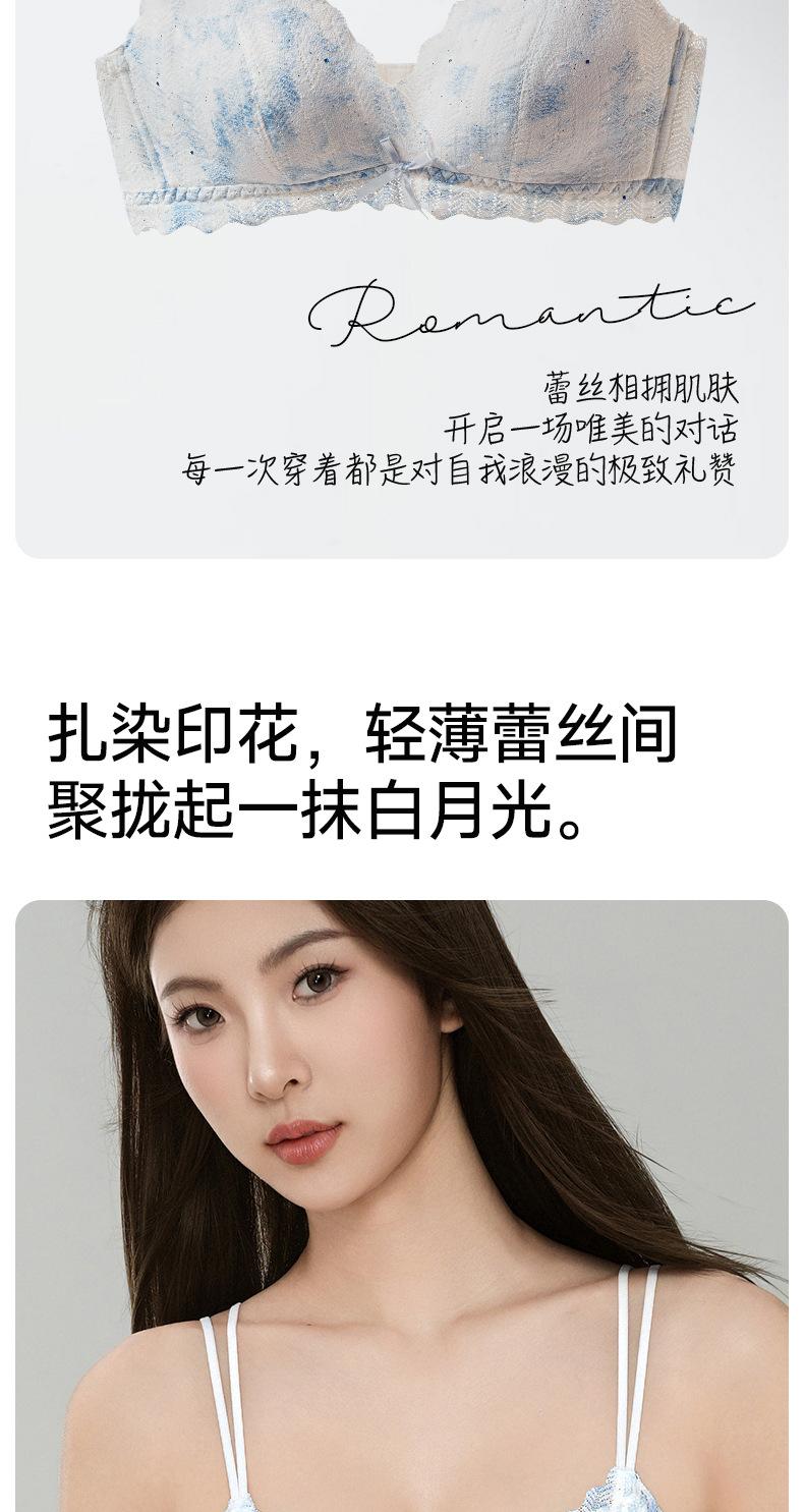 Ropa interior de copa triangular fija de encaje francés para mujer, Push-Up Anticaída Tie-Dye para senos grandes, Sujetador pequeño con espalda cruzada