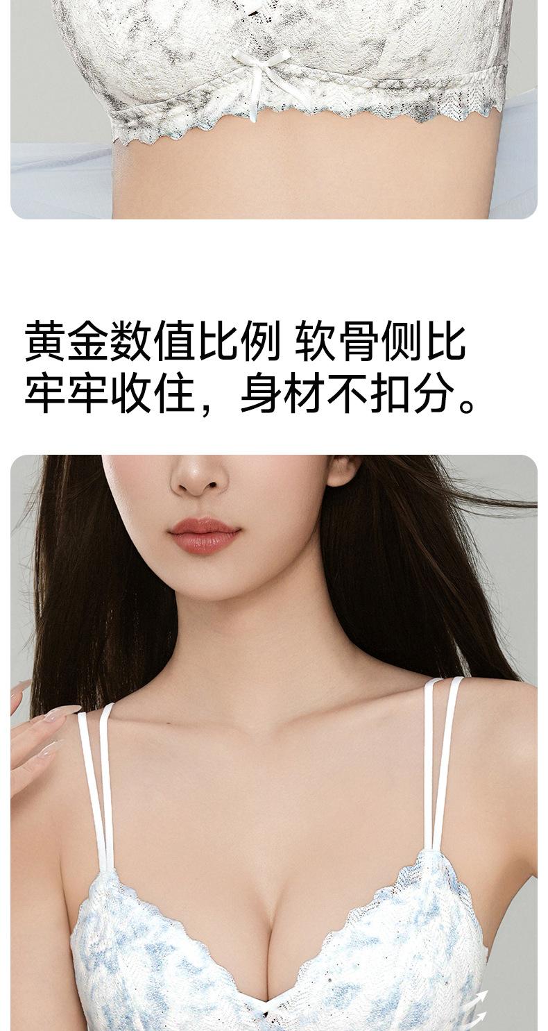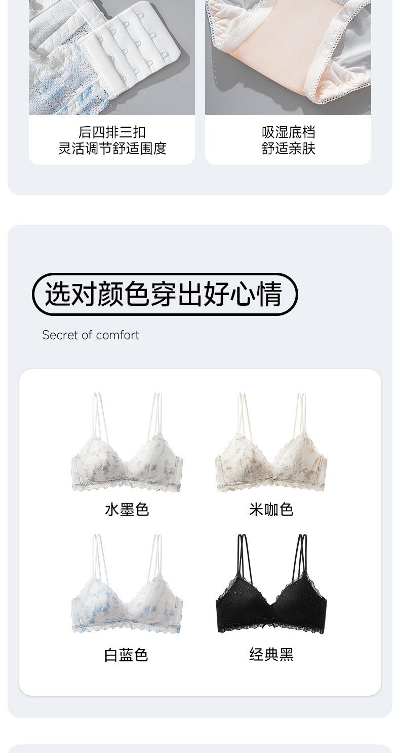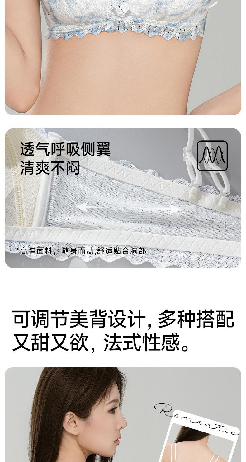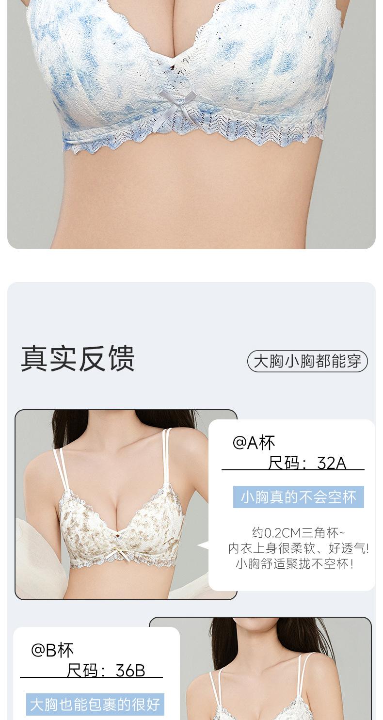 Ropa interior de copa triangular fija de encaje francés para mujer, Push-Up Anticaída Tie-Dye para senos grandes, Sujetador pequeño con espalda cruzada