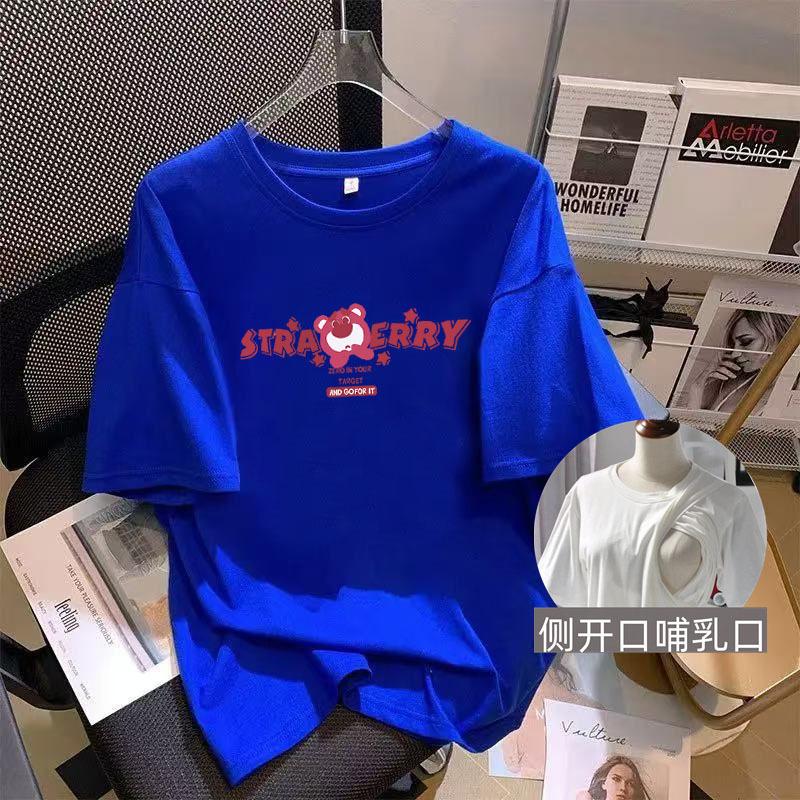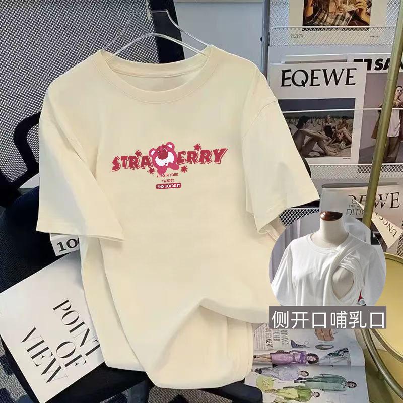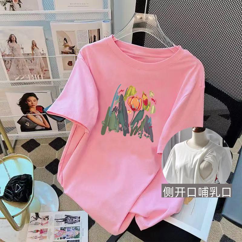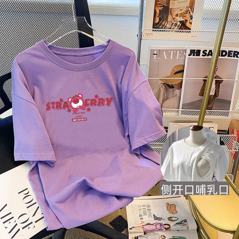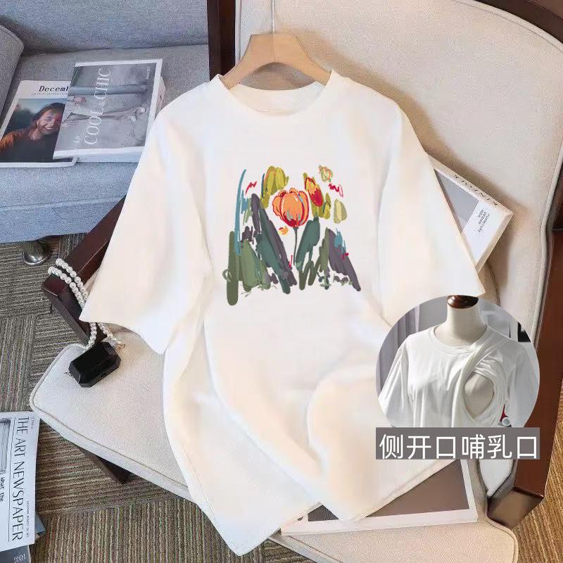 Top de Lactancia Casual de Estilo Coreano con Cuello Redondo Ropa Exterior Primavera Otoño Abertura Lateral Camiseta Manga Corta Trendy Mamá Ropa para Amamantar Corte Holgado