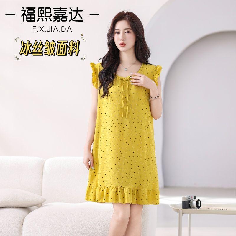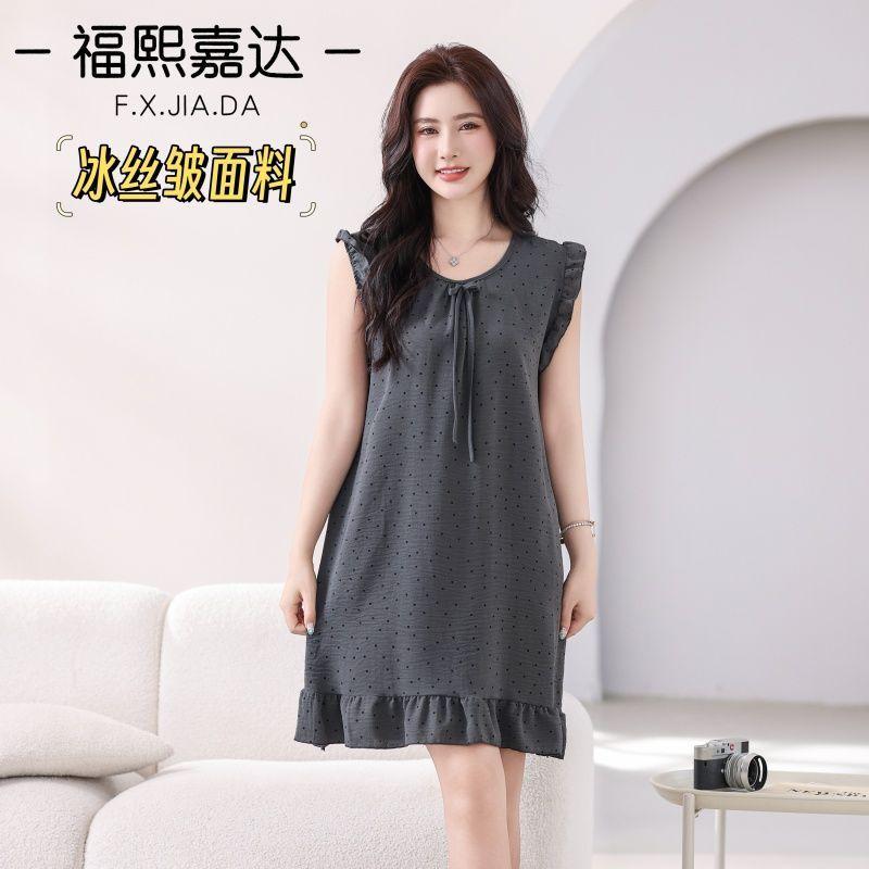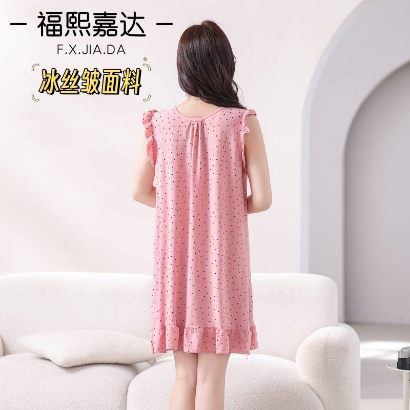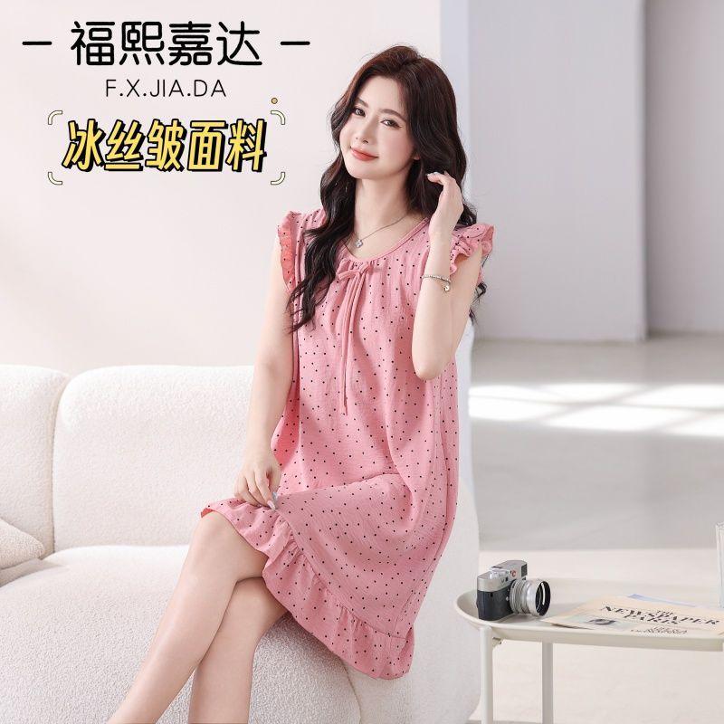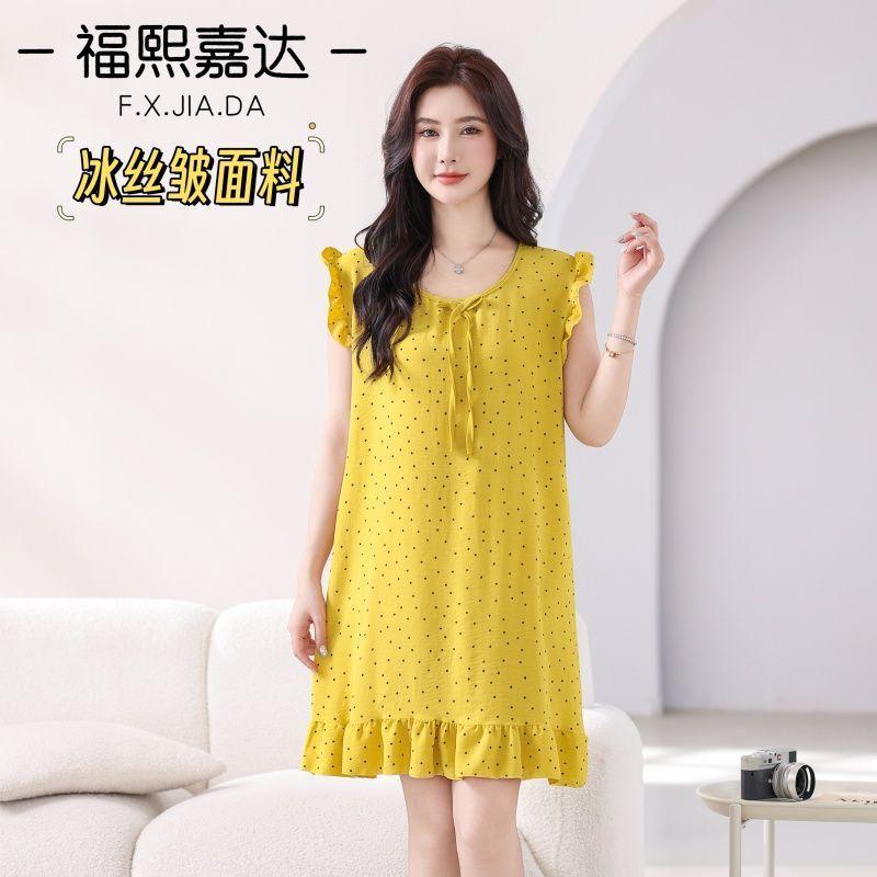 Vestido de mujer para el hogar sin mangas, estilo popular de celebridad de internet, temperamento delgado y adelgazante, cubre la carne, nuevo de verano, manga mariposa, lunares, camisón de mujer