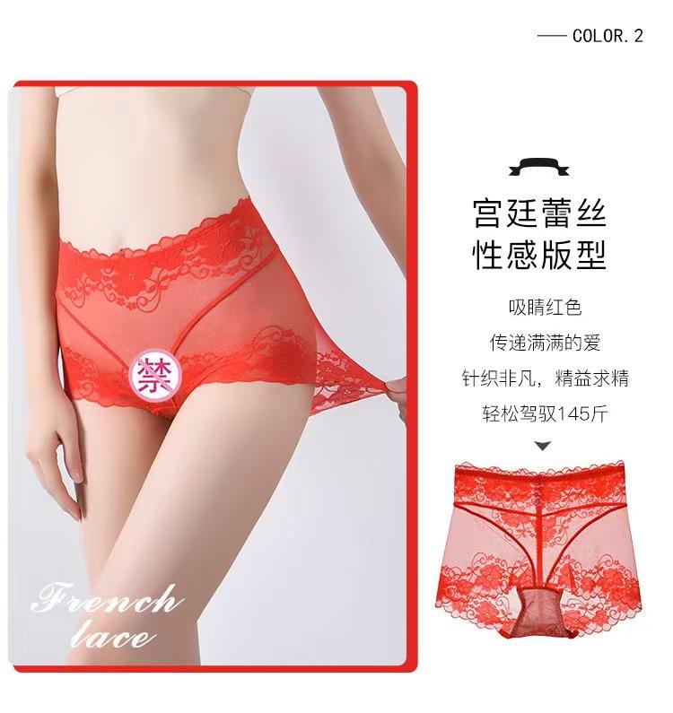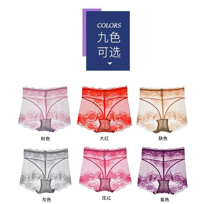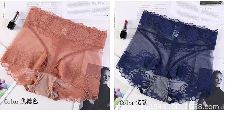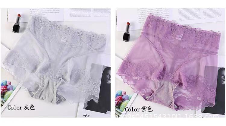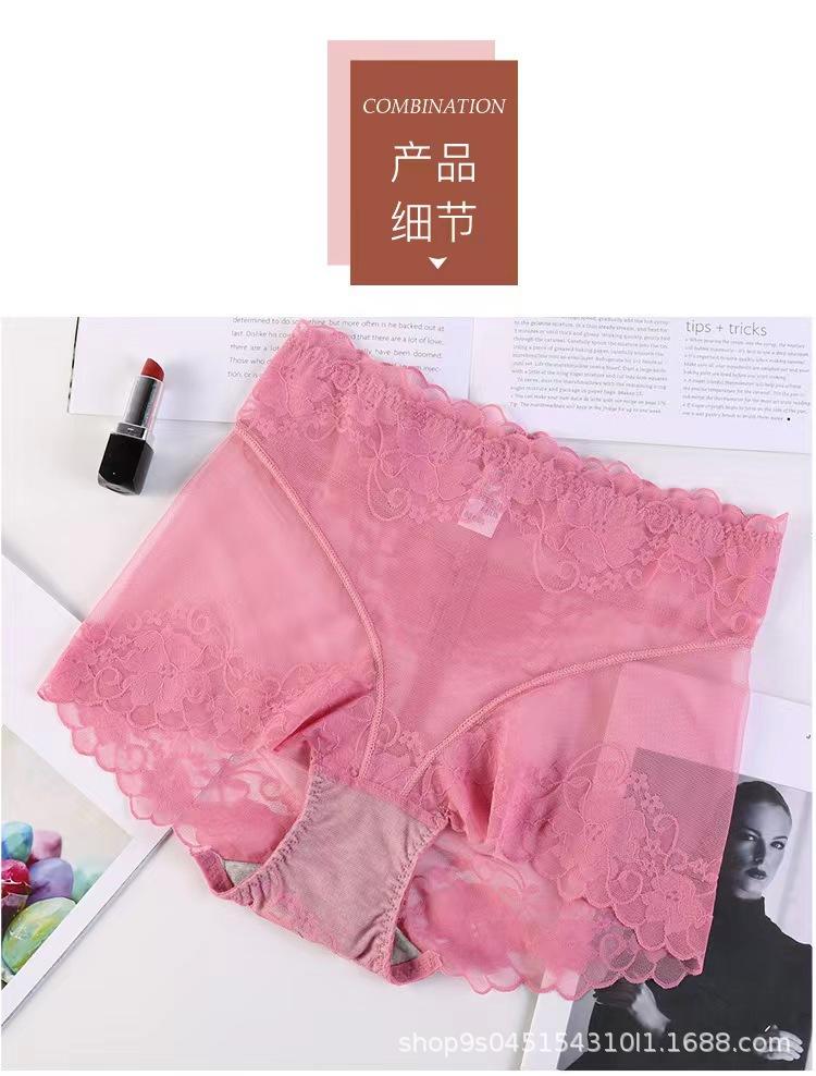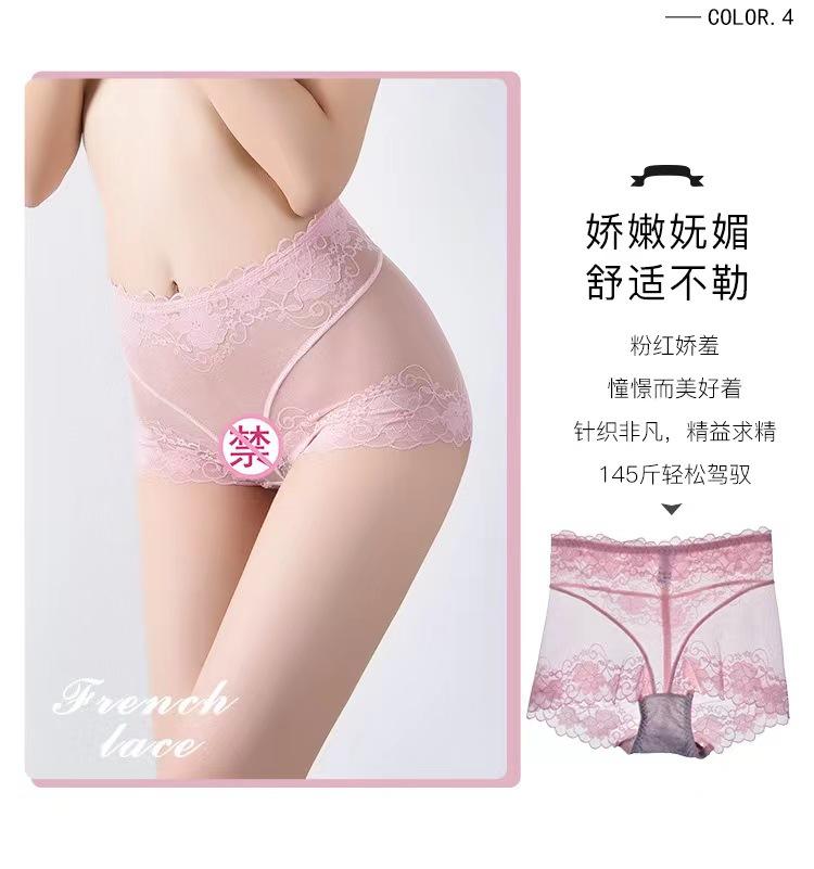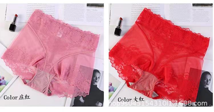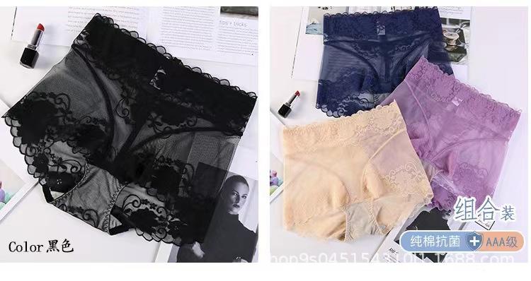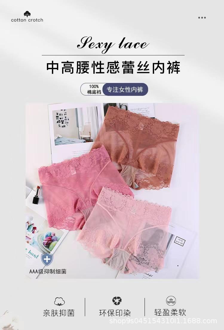 Ropa interior de encaje de cintura alta para mujer sexy sexy que contrae el abdomen deseo puro bóxer de algodón sin costuras ropa interior delgada para mujer