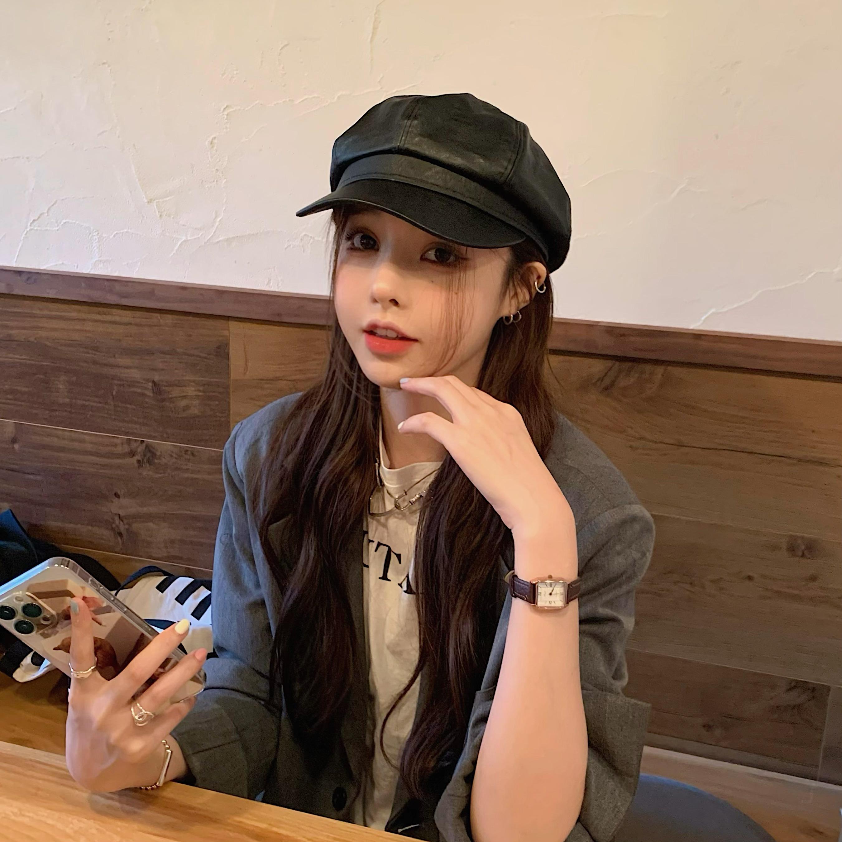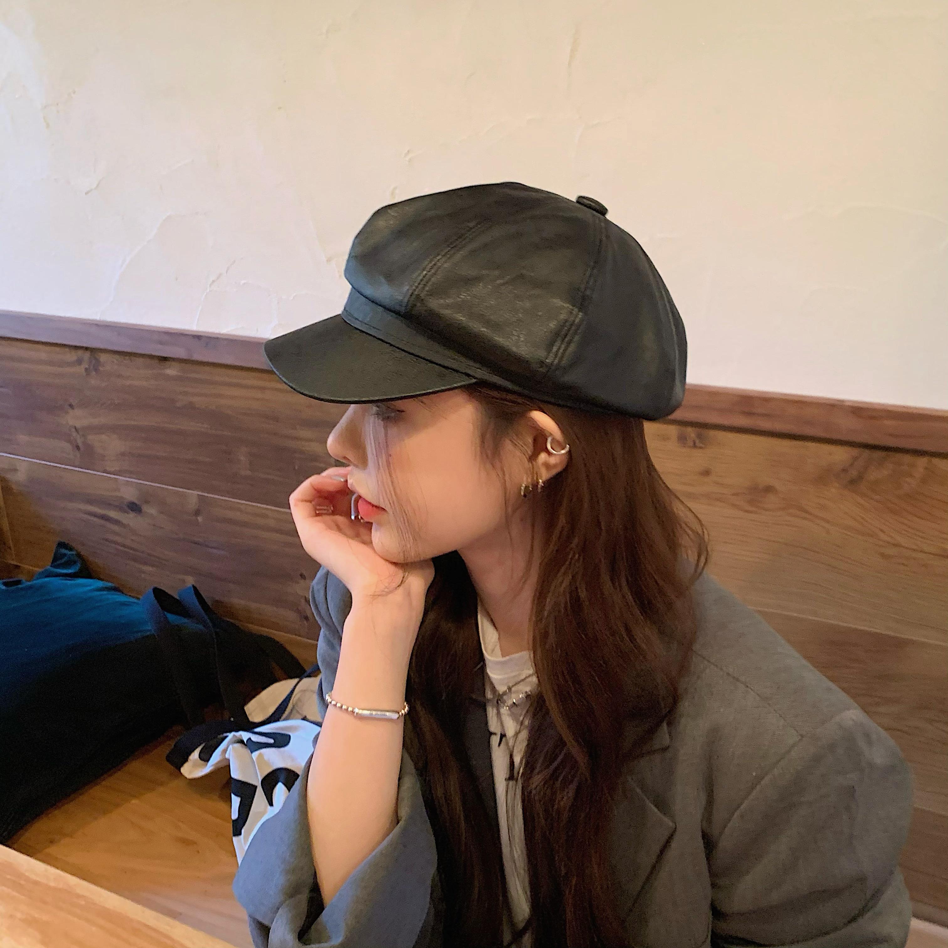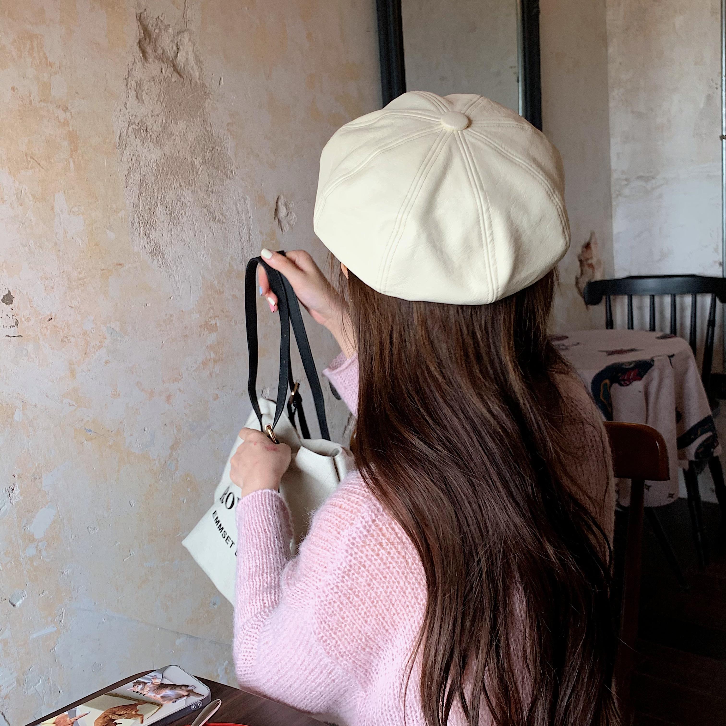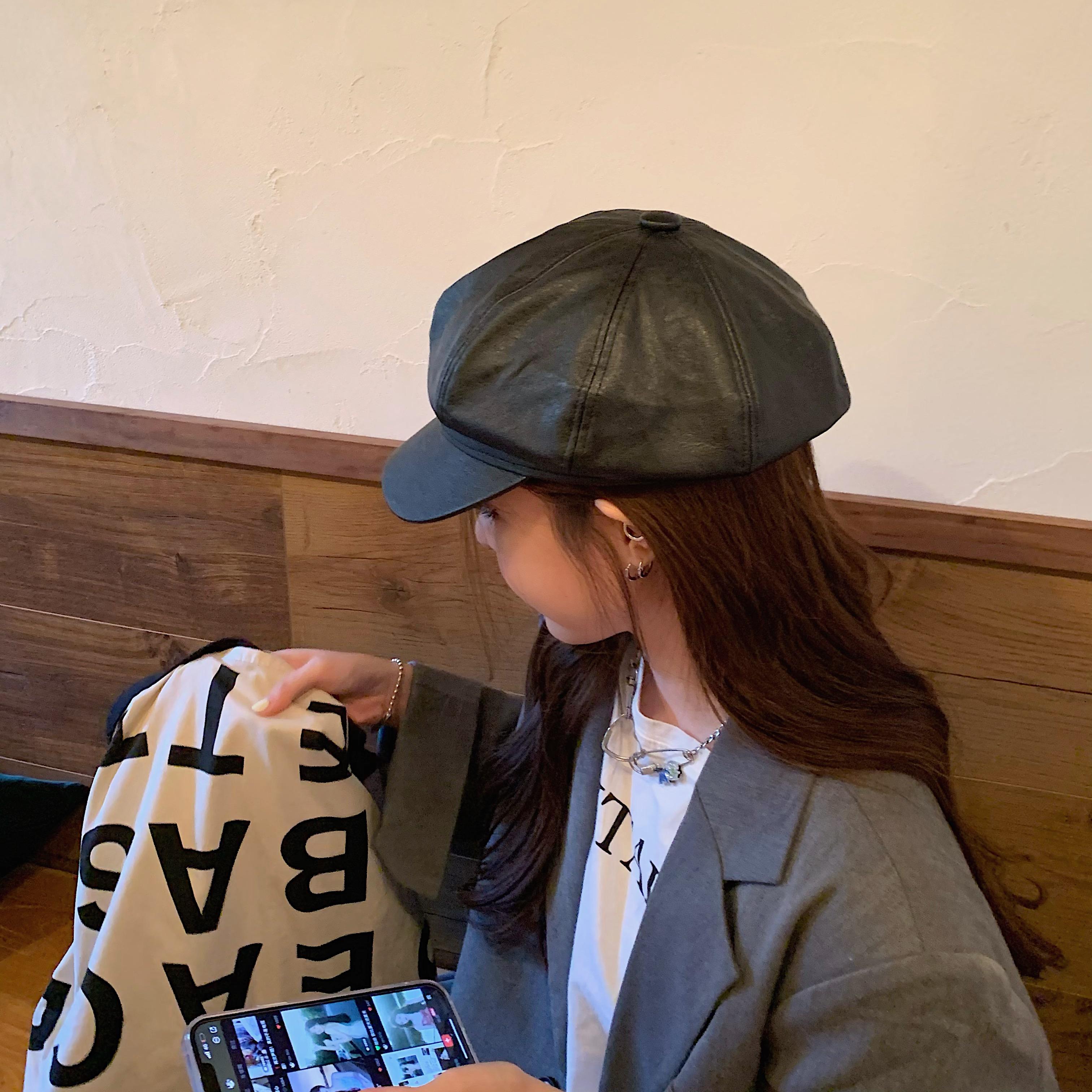 Sombrero octogonal de cuero combinable con todo estilo coreano sombrero retro femenino boina de invierno a prueba de sol rojo de internet británico sombrero de pintor estilo japonés