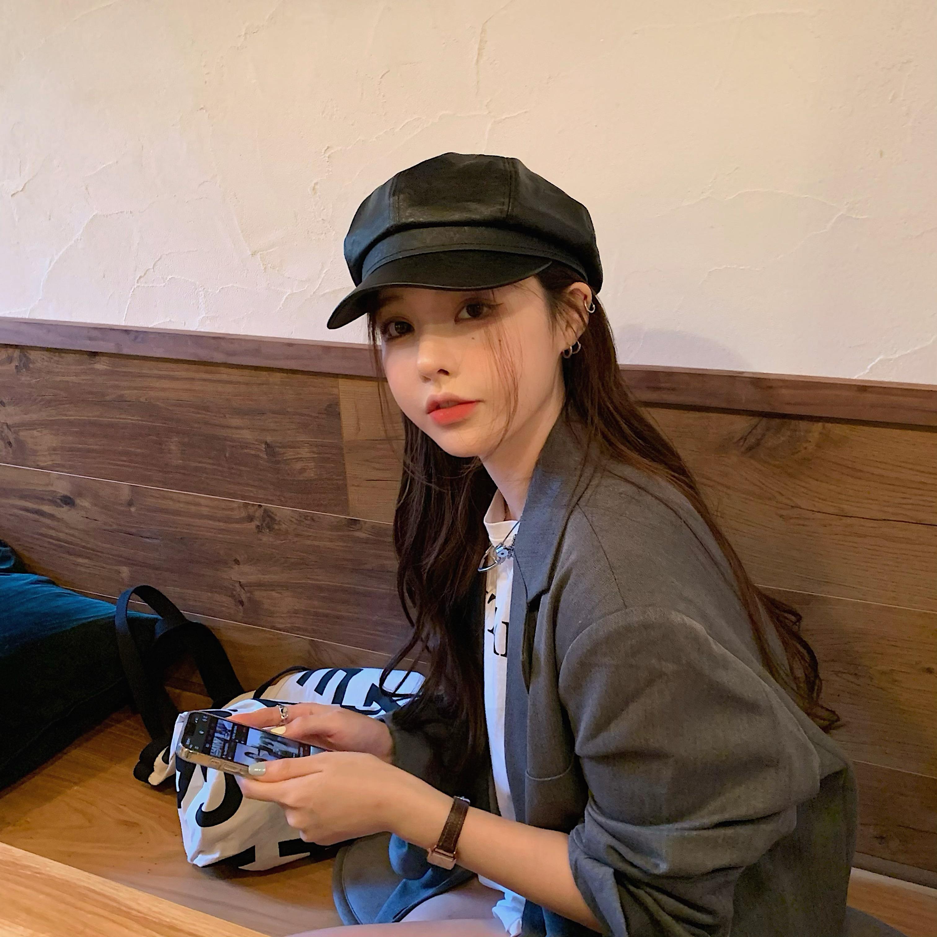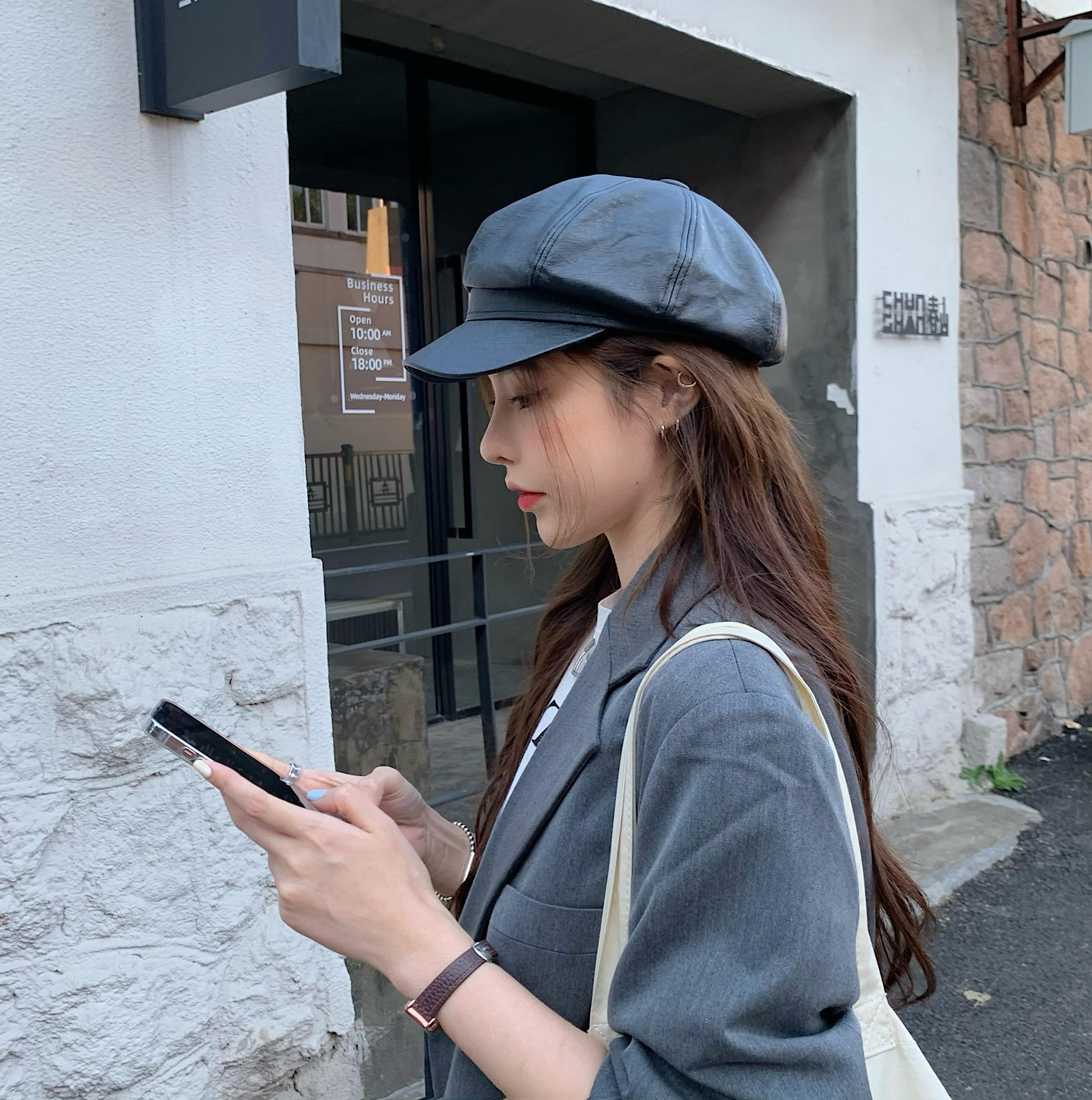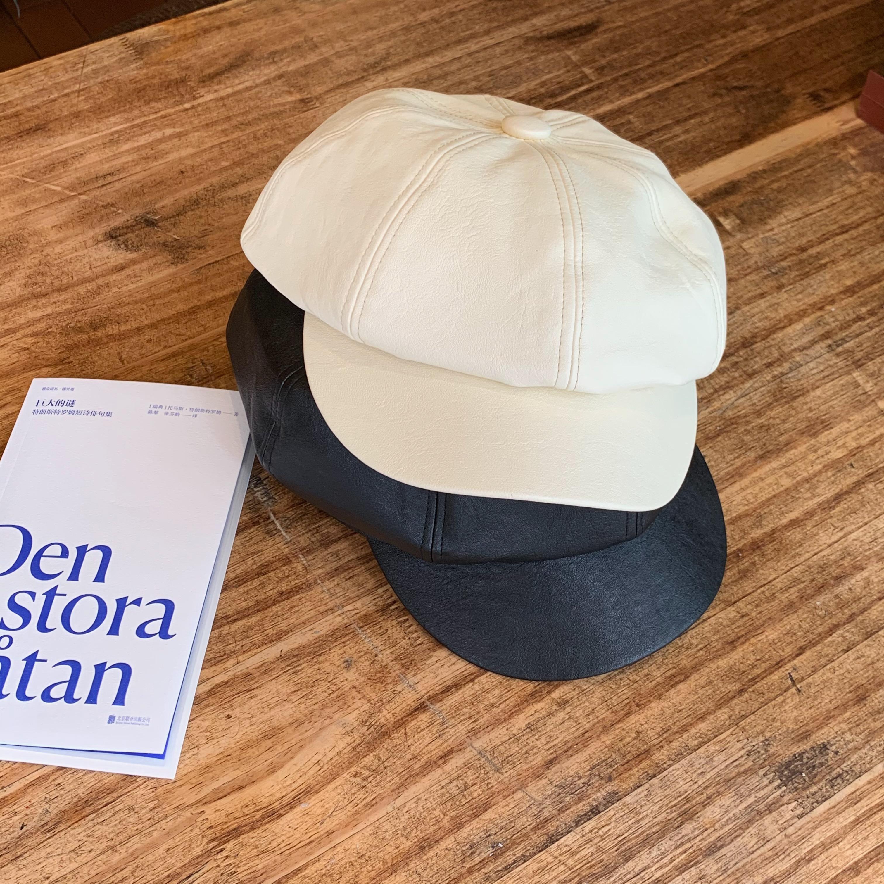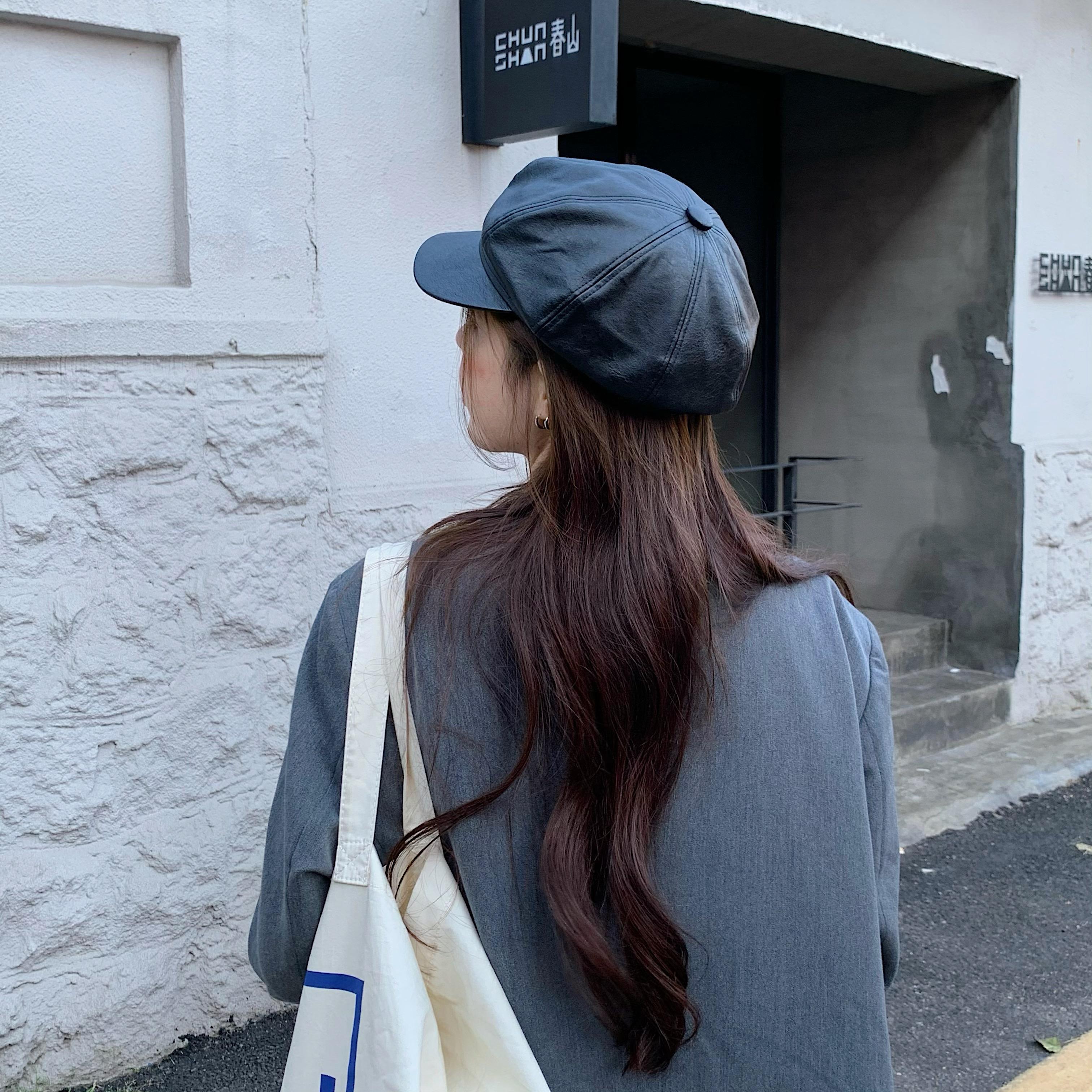 Sombrero octogonal de cuero combinable con todo estilo coreano sombrero retro femenino boina de invierno a prueba de sol rojo de internet británico sombrero de pintor estilo japonés