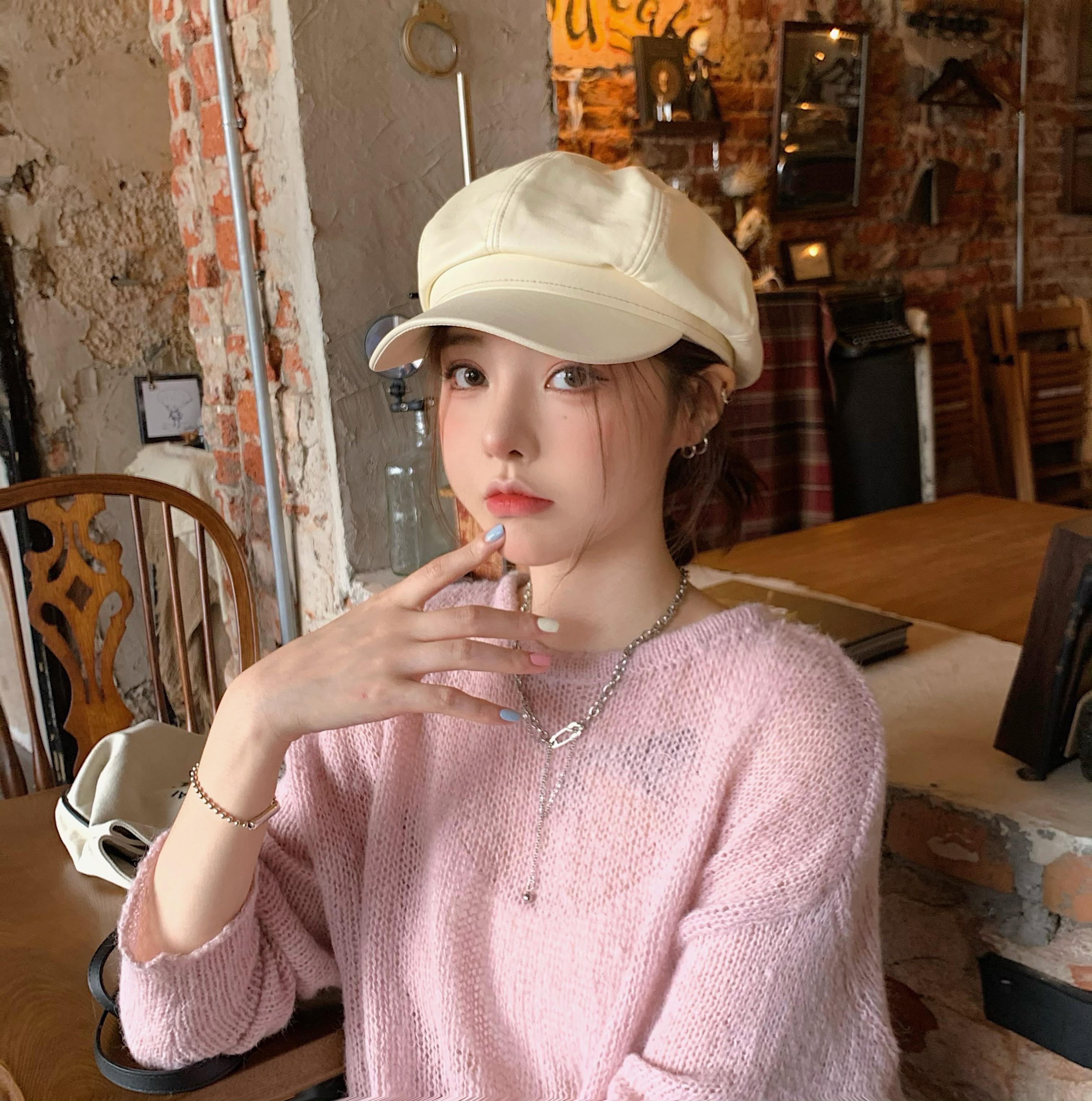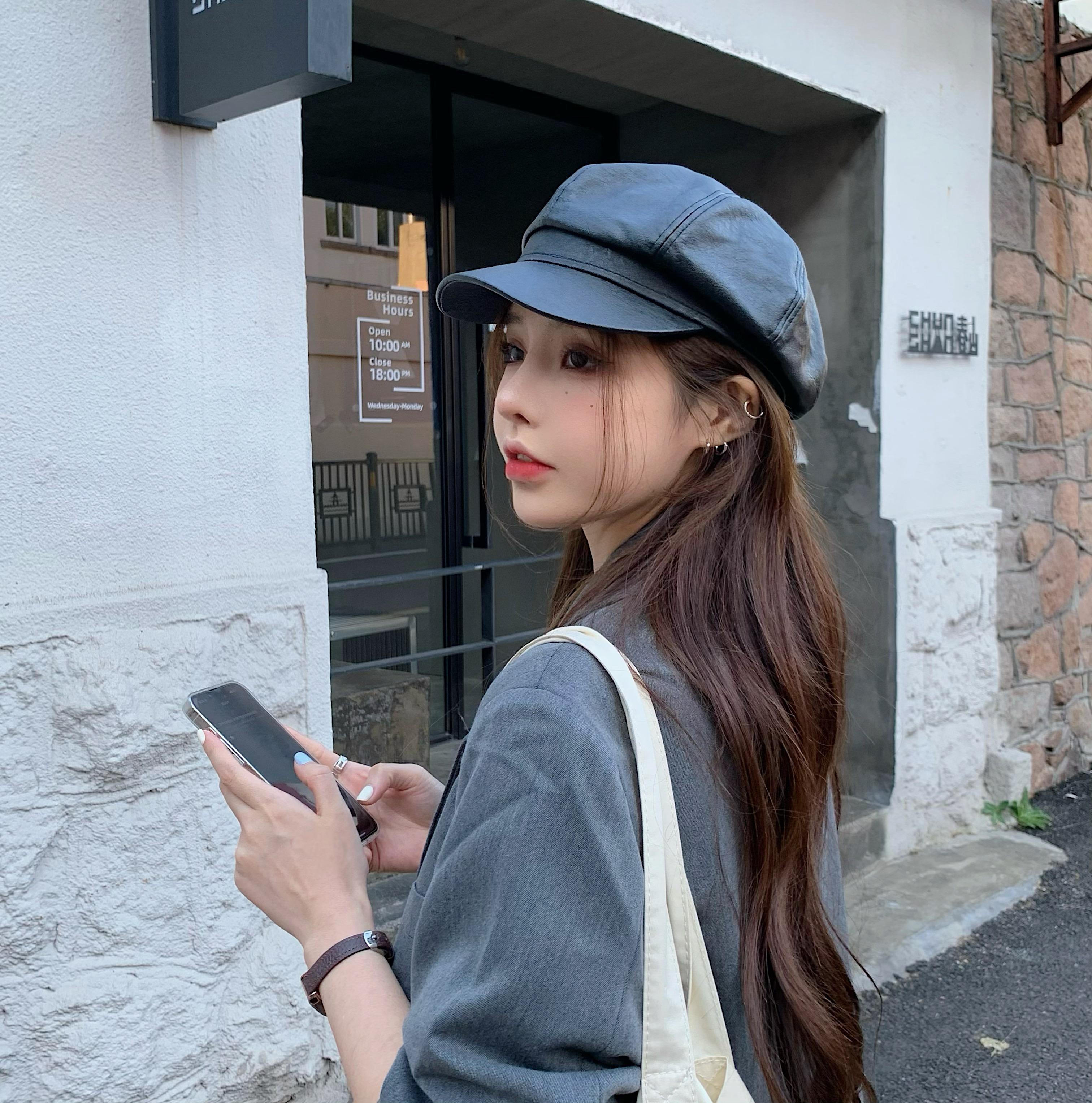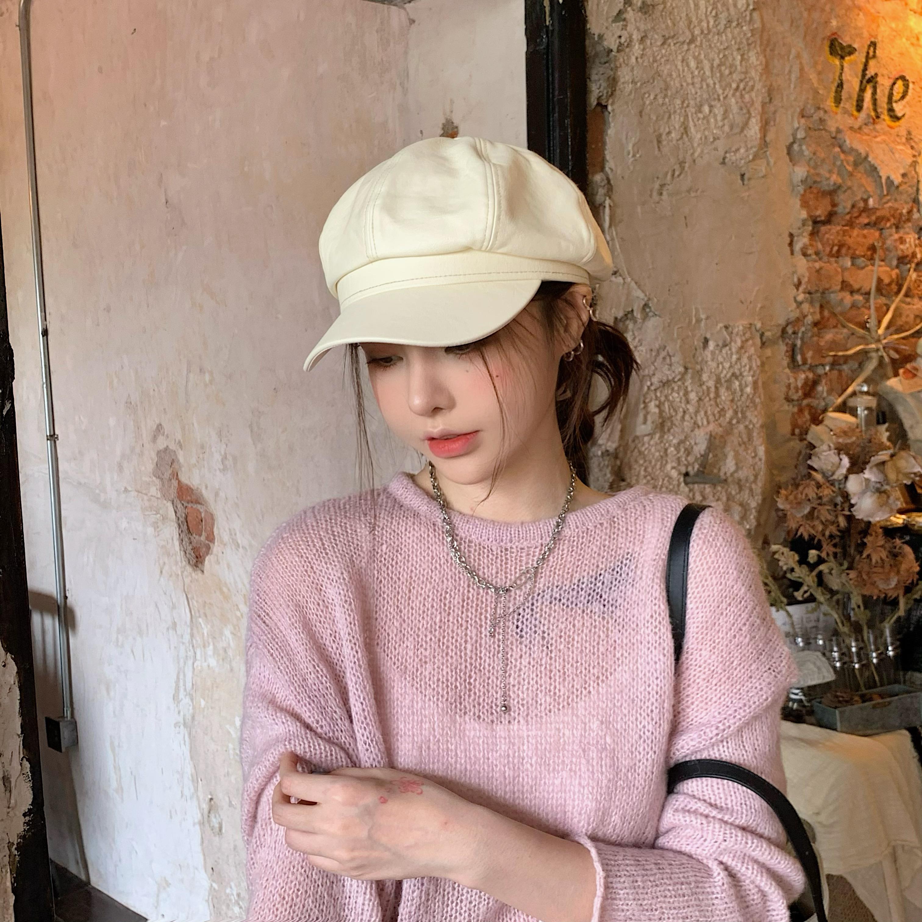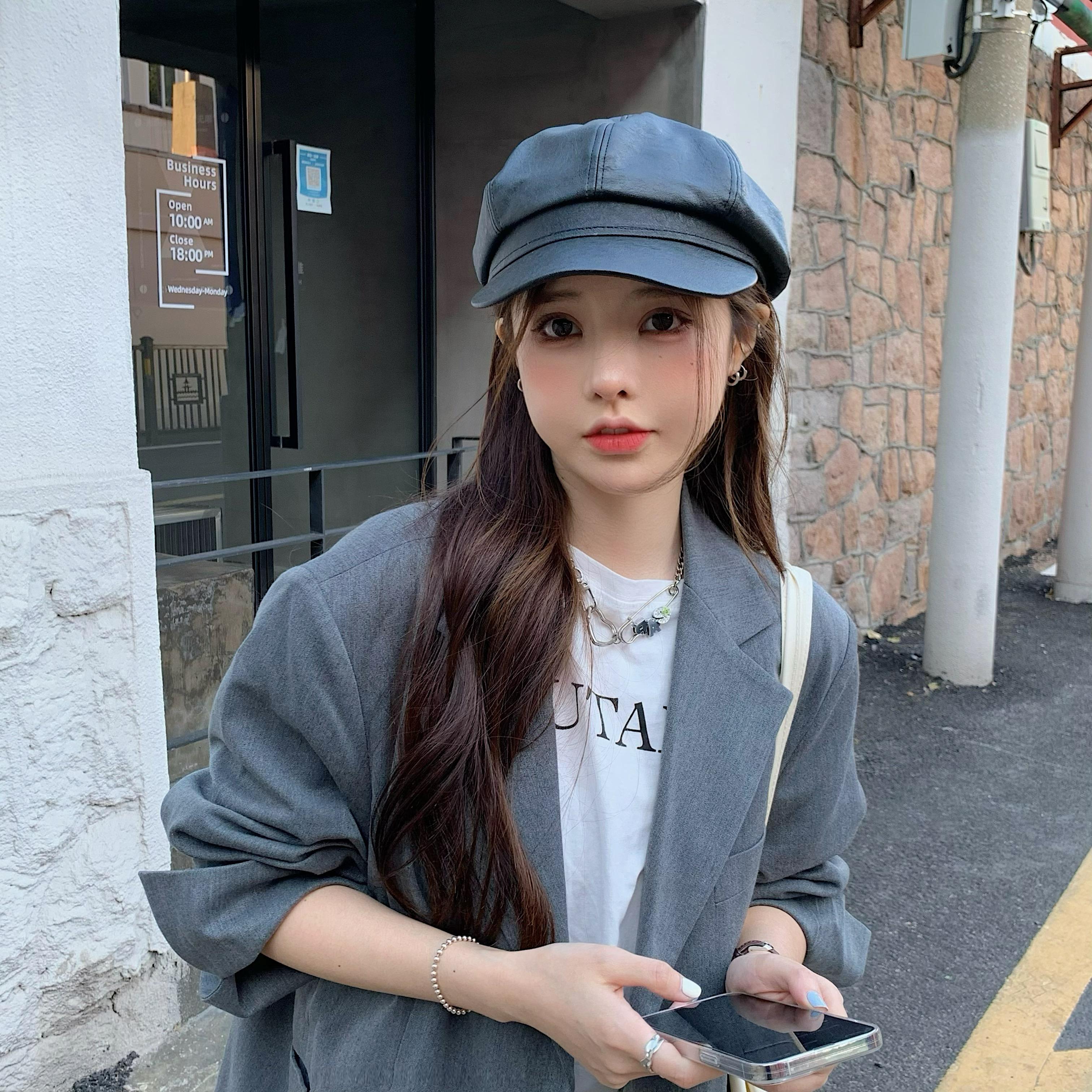 Sombrero octogonal de cuero combinable con todo estilo coreano sombrero retro femenino boina de invierno a prueba de sol rojo de internet británico sombrero de pintor estilo japonés