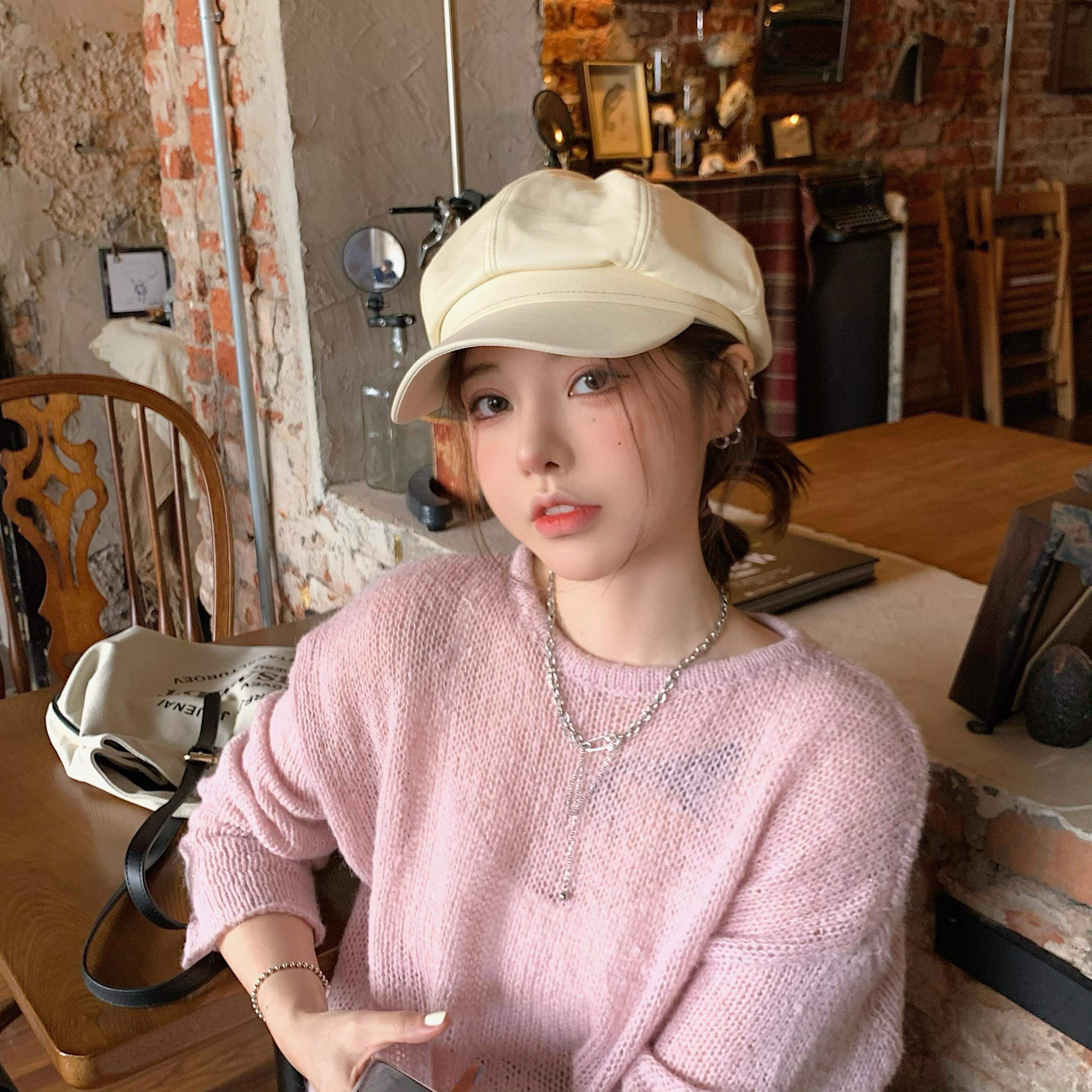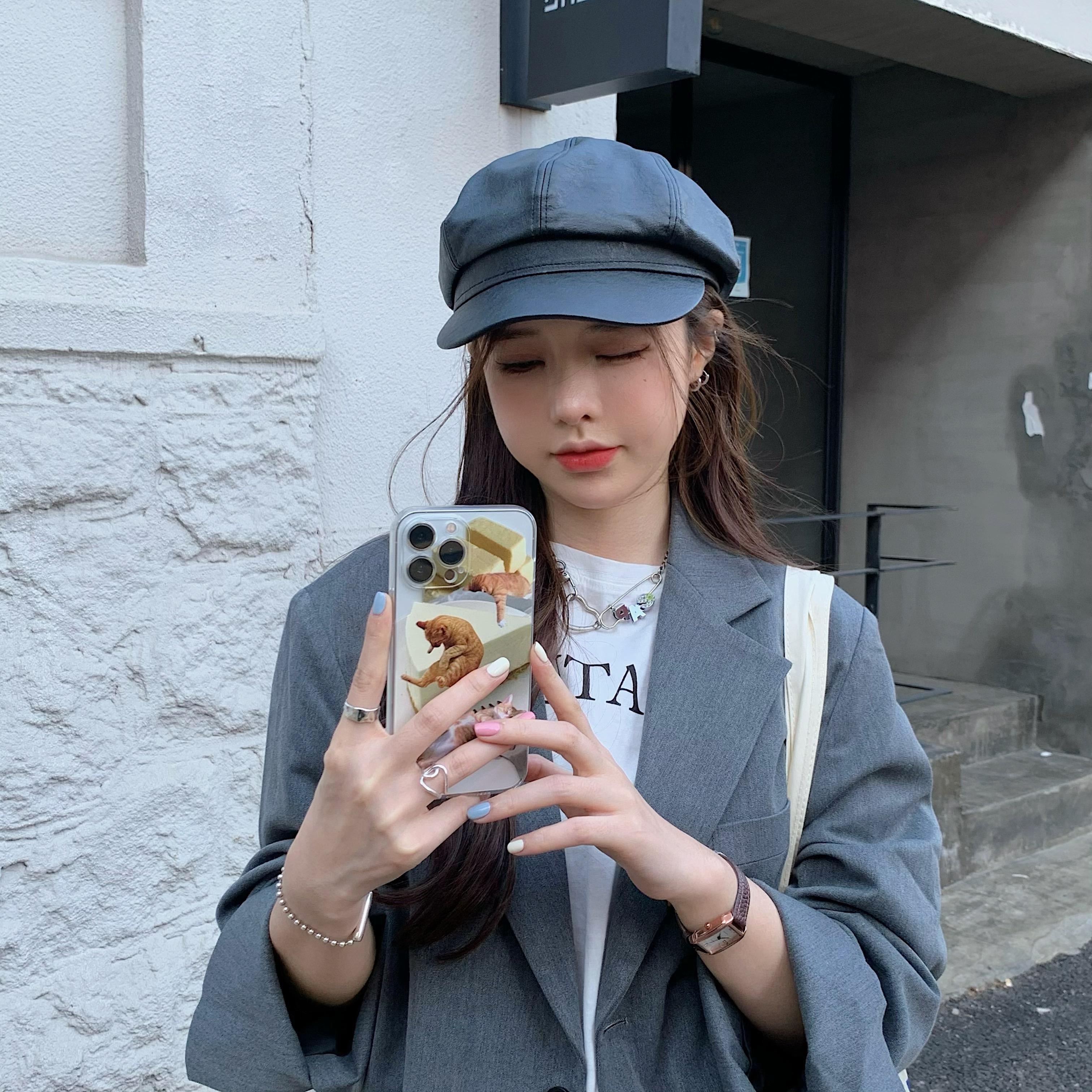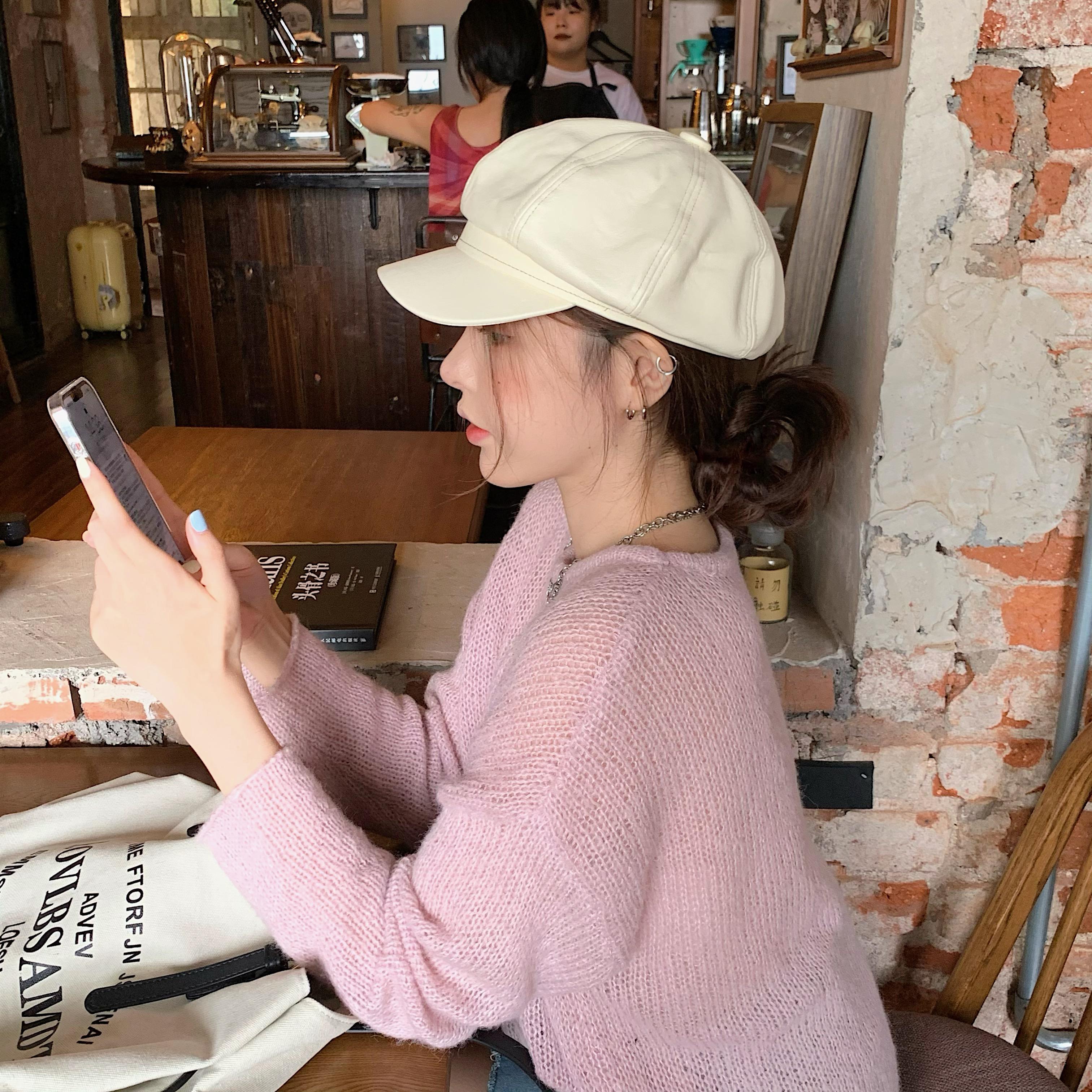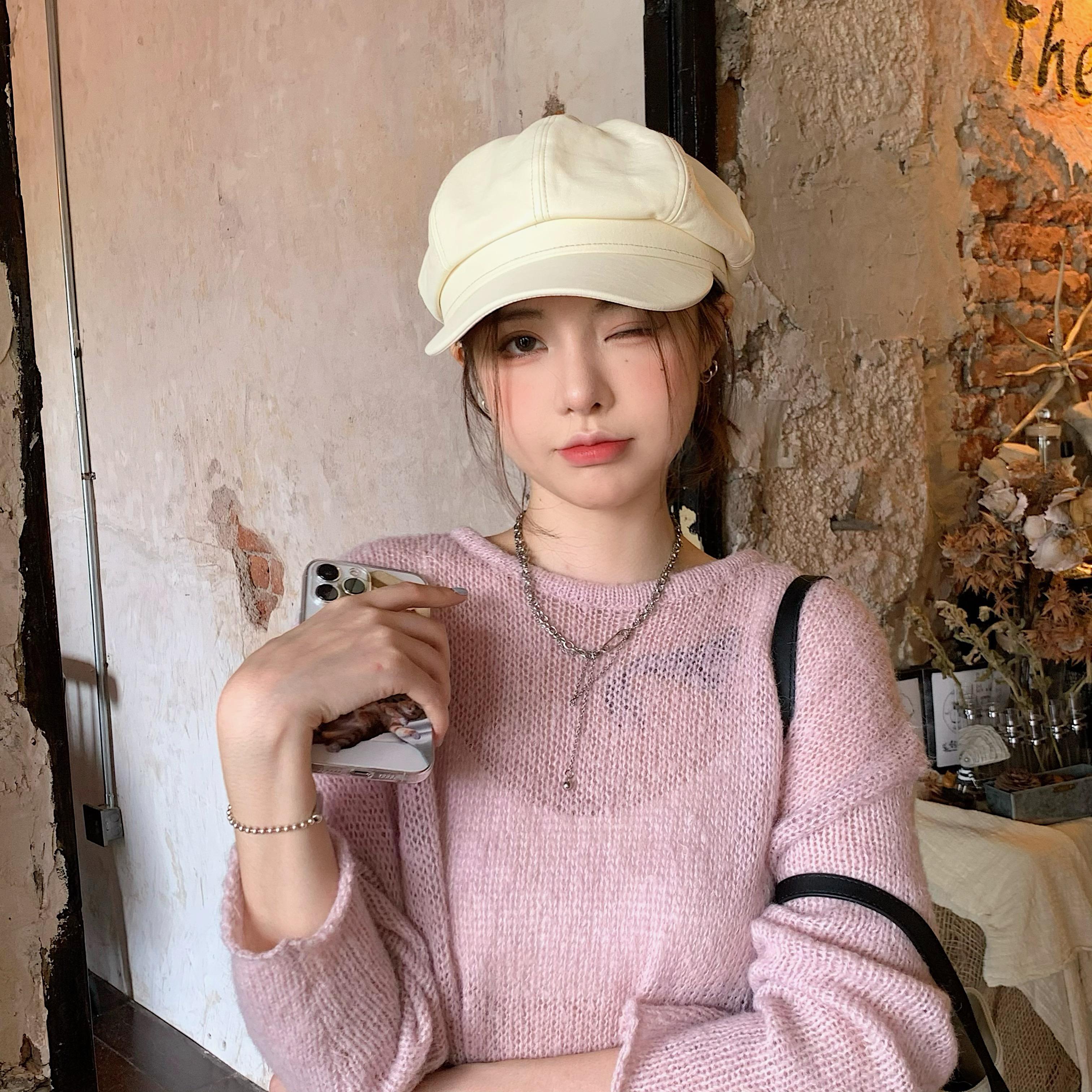 Sombrero octogonal de cuero combinable con todo estilo coreano sombrero retro femenino boina de invierno a prueba de sol rojo de internet británico sombrero de pintor estilo japonés