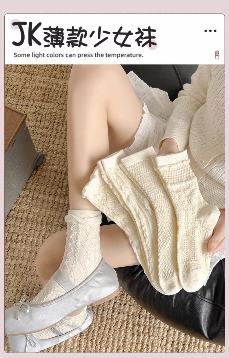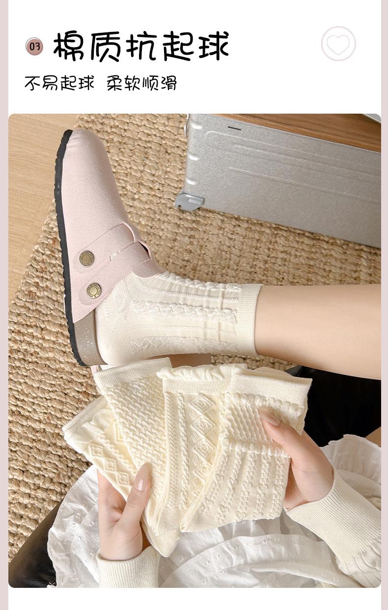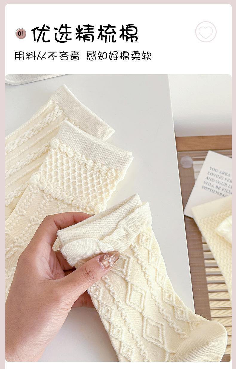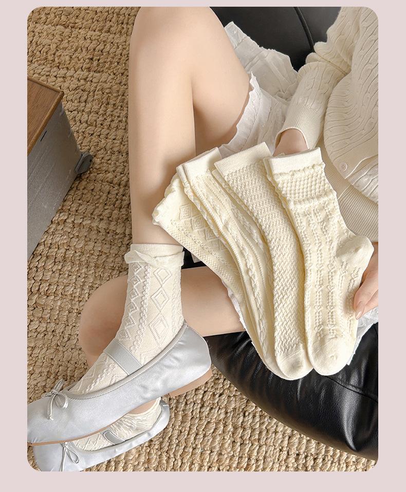 Calcetines Blancos Lechosos para Mujer con Patrón de Diamantes, Media Caña, Color Sólido Versátiles Calcetines Holgados Sin Costuras, Algodón Peinado, Calcetines Jk Estilo Japonés