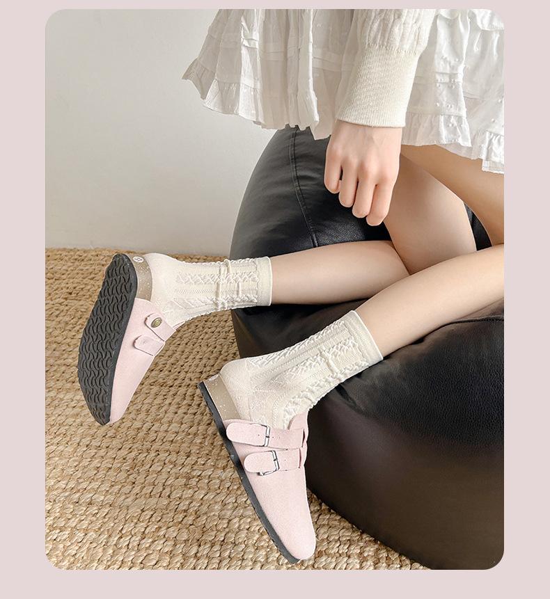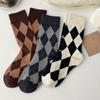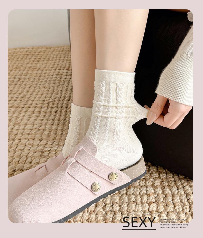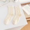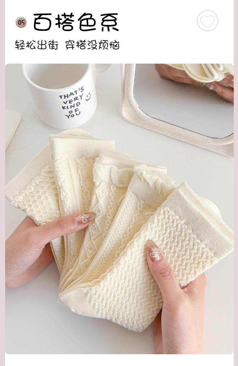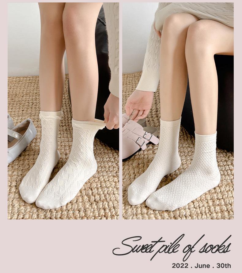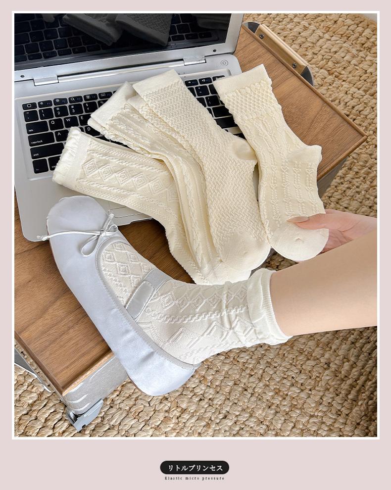 Calcetines Blancos Lechosos para Mujer con Patrón de Diamantes, Media Caña, Color Sólido Versátiles Calcetines Holgados Sin Costuras, Algodón Peinado, Calcetines Jk Estilo Japonés