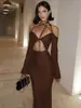 2025 Nuevo Europeo y Americano Transfronterizo Verano Color Sólido Malla Bandeau Moda Temperamento Sexy Costuras Vestido Mujer Venta al por Mayor