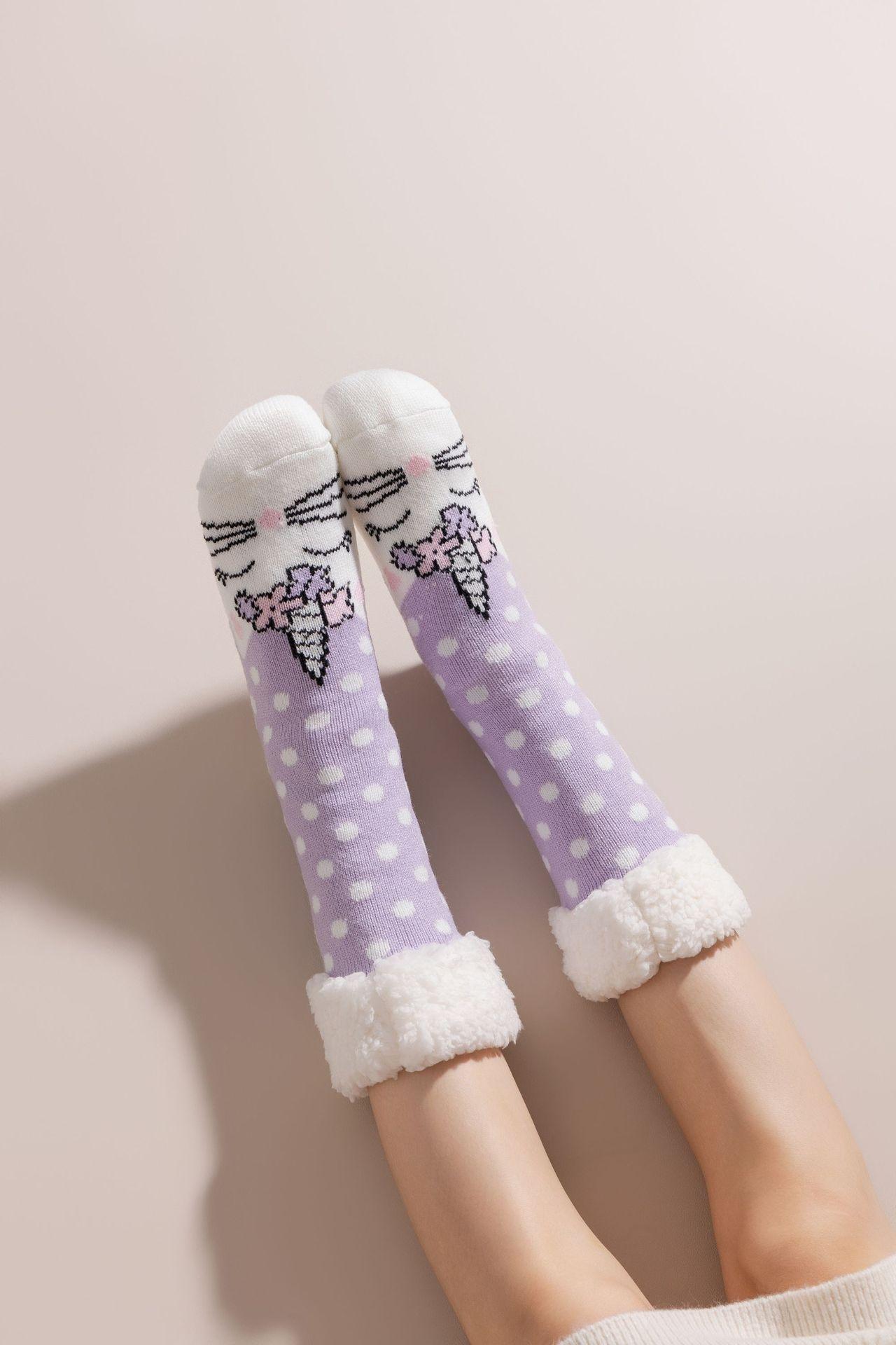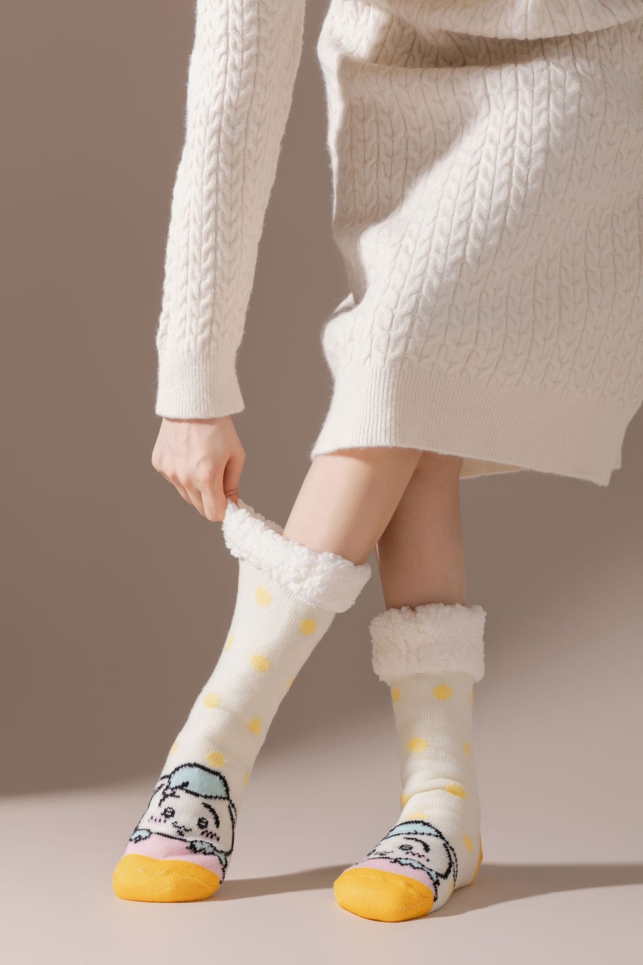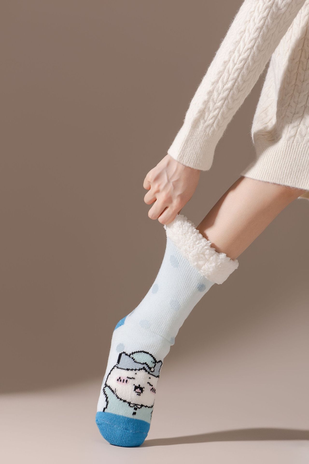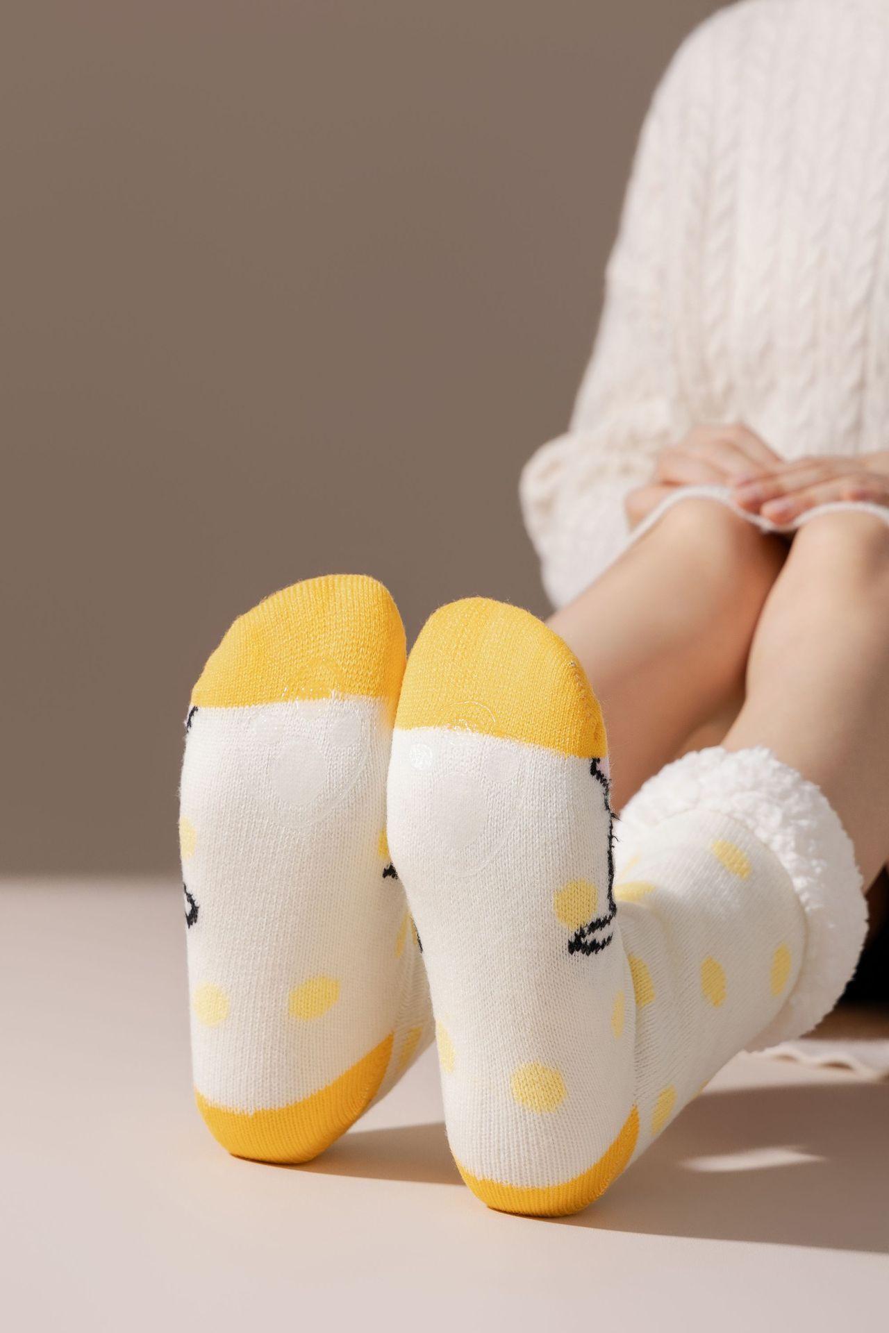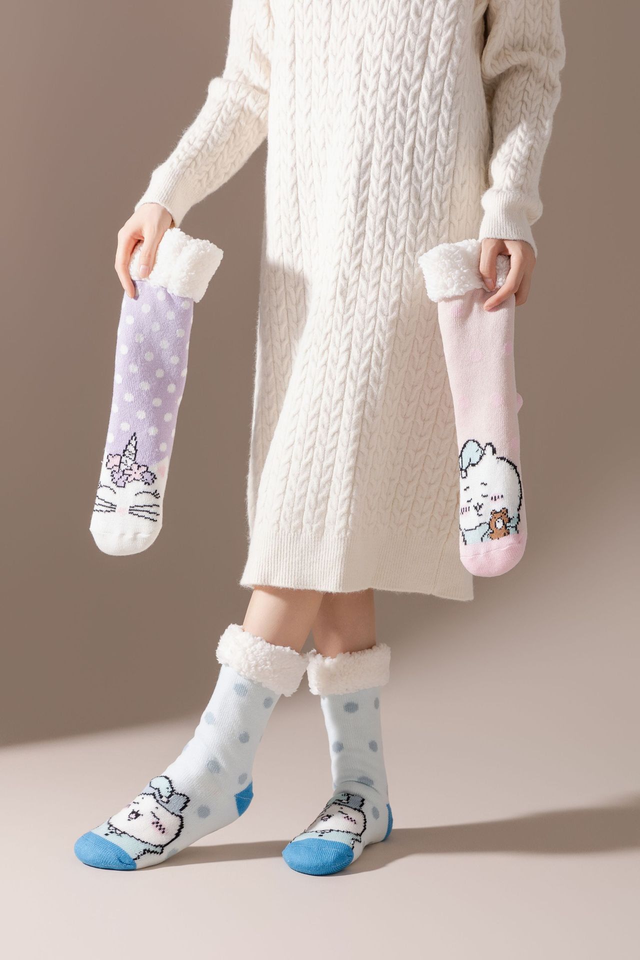 Calcetines de forro polar de coral de otoño e invierno para mujer, nuevos calcetines de felpa gruesos y lindos de dibujos animados hasta la mitad de la pantorrilla para mujer, calcetines para dormir en casa