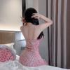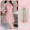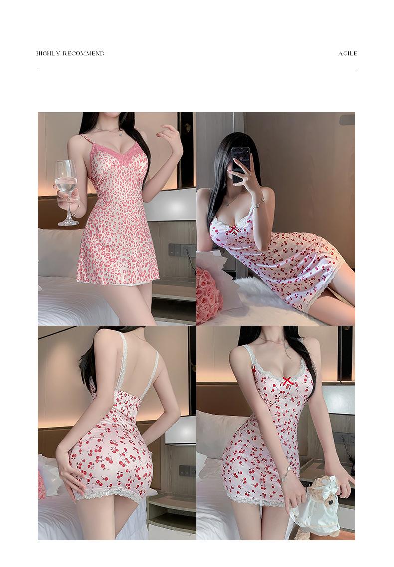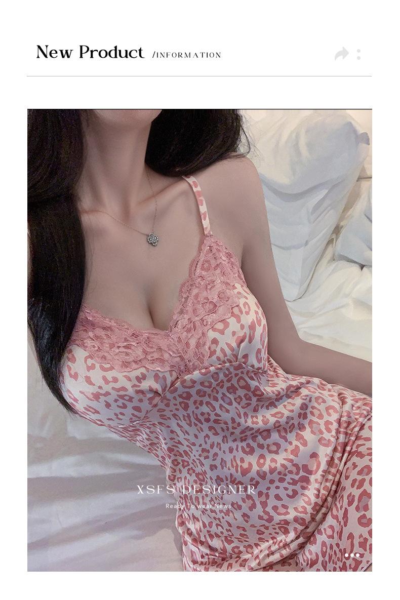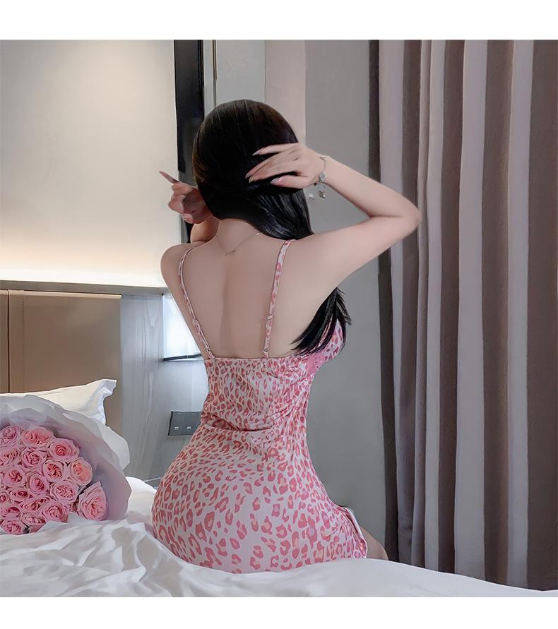 West Poetry Camisón Sexy Lujo Ligero Nicho Sentido de Alta Gama Estampado Leopardo Rosa Estilo Deseo Puro Camisola Vestido de Noche de Verano Lencería sin Espalda