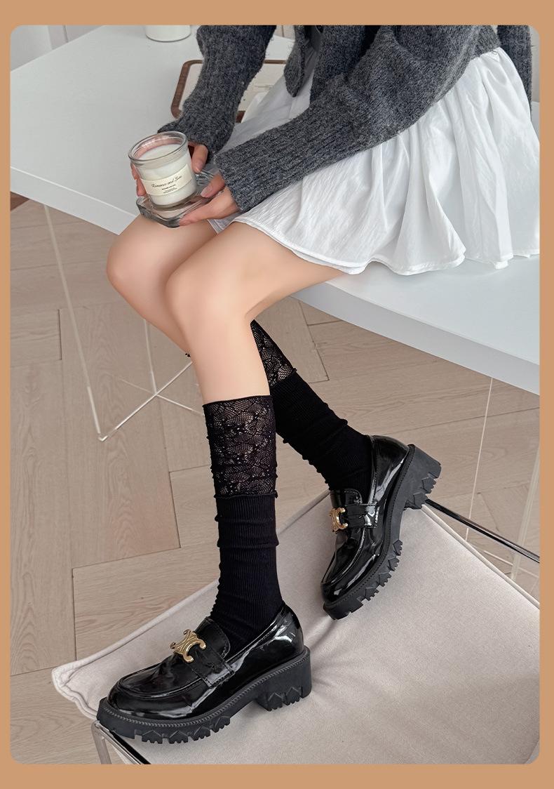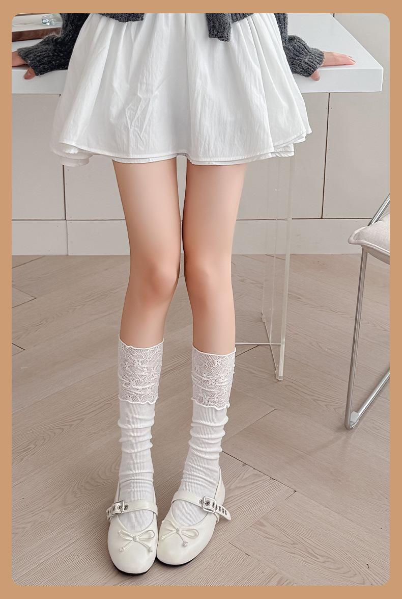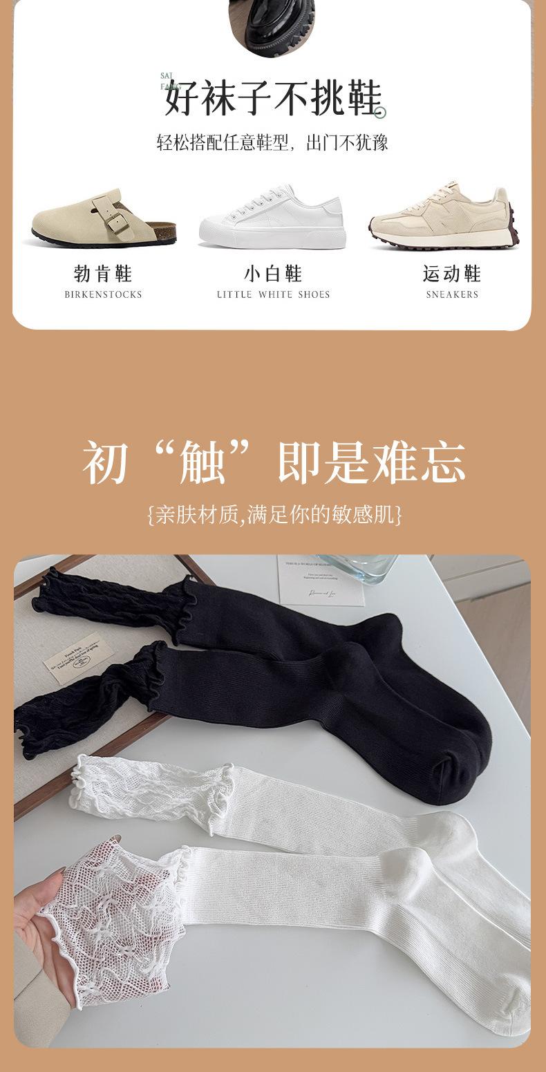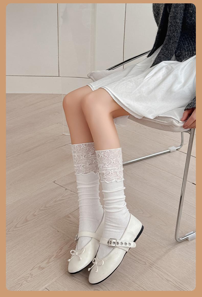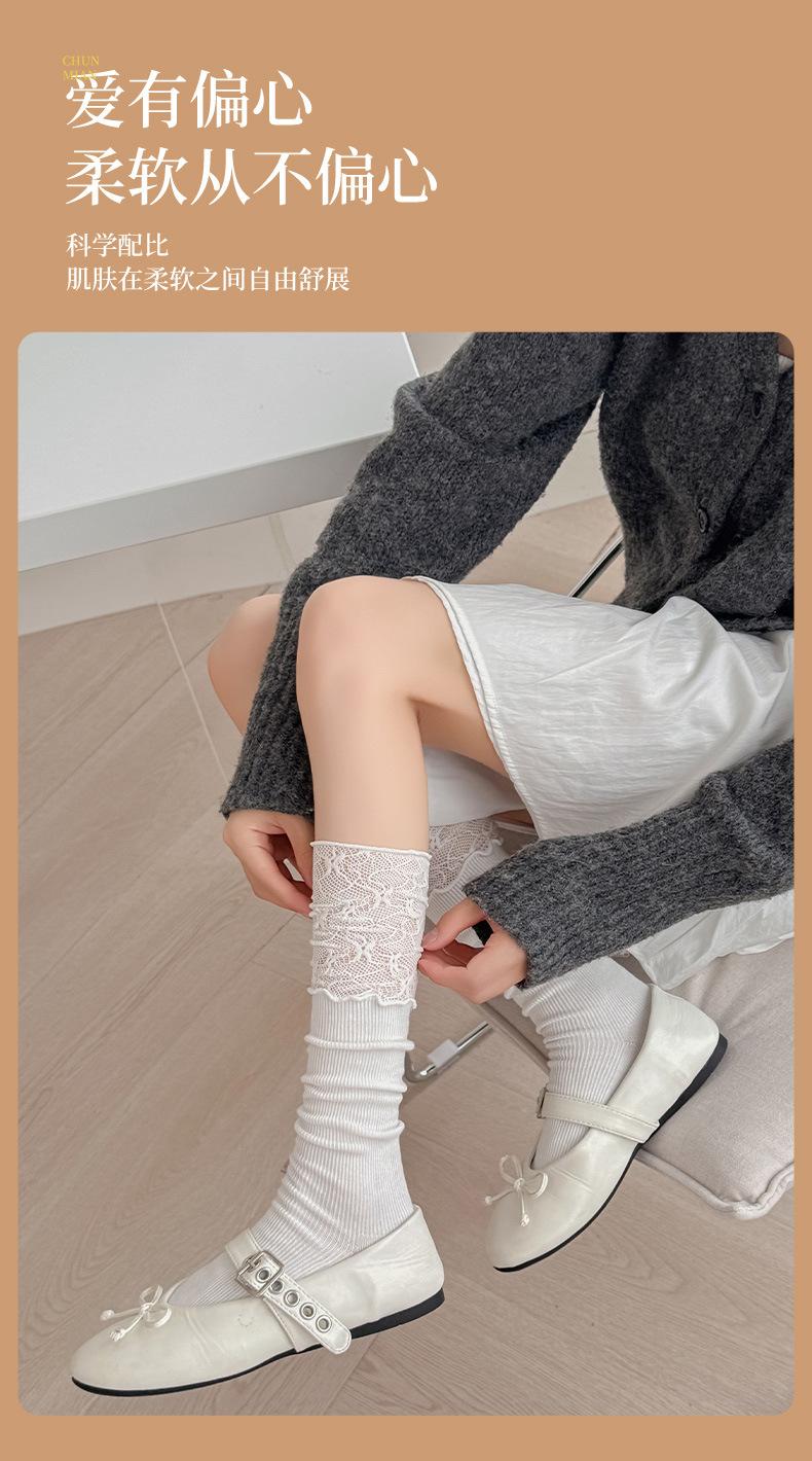 Calcetines estilo ballet para mujer, dulces calcetines de media pantorrilla con patchwork de encaje, calcetines holgados de encaje modernos y sencillos para mujer, calcetines Lolita