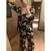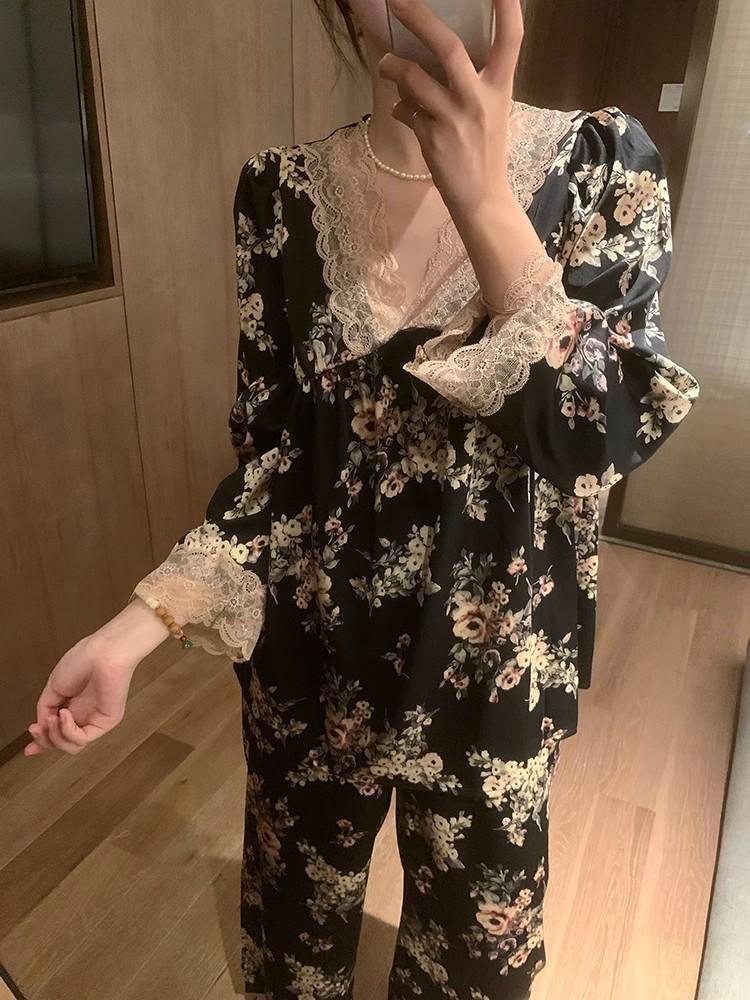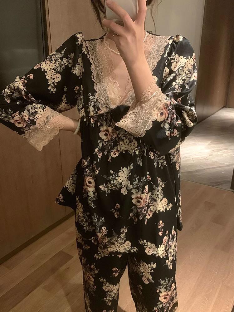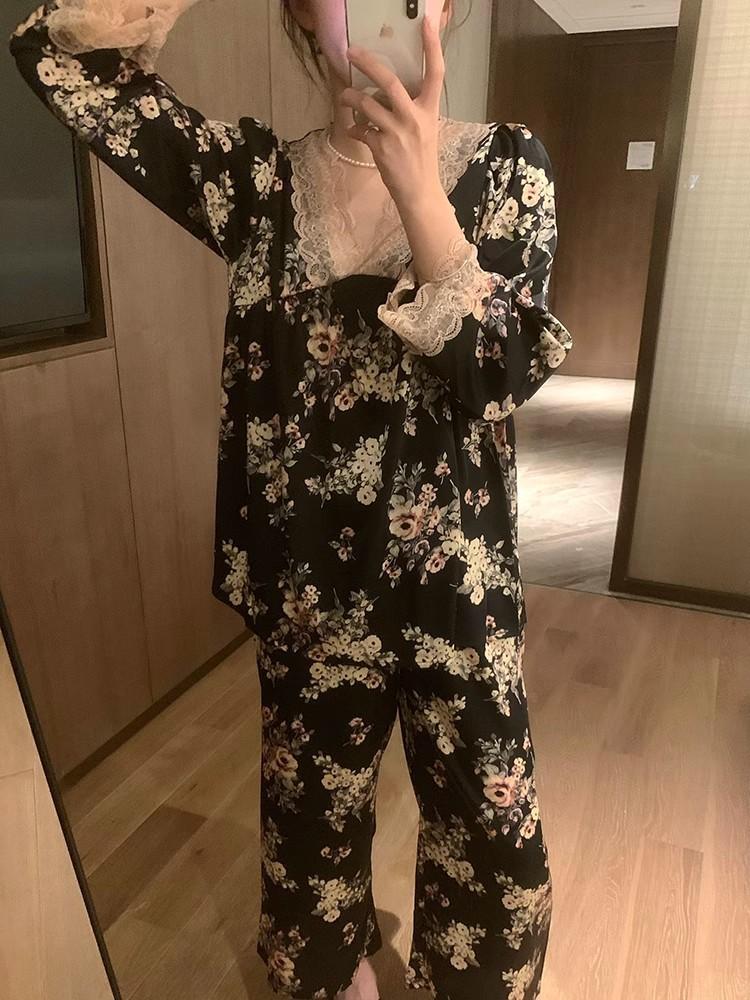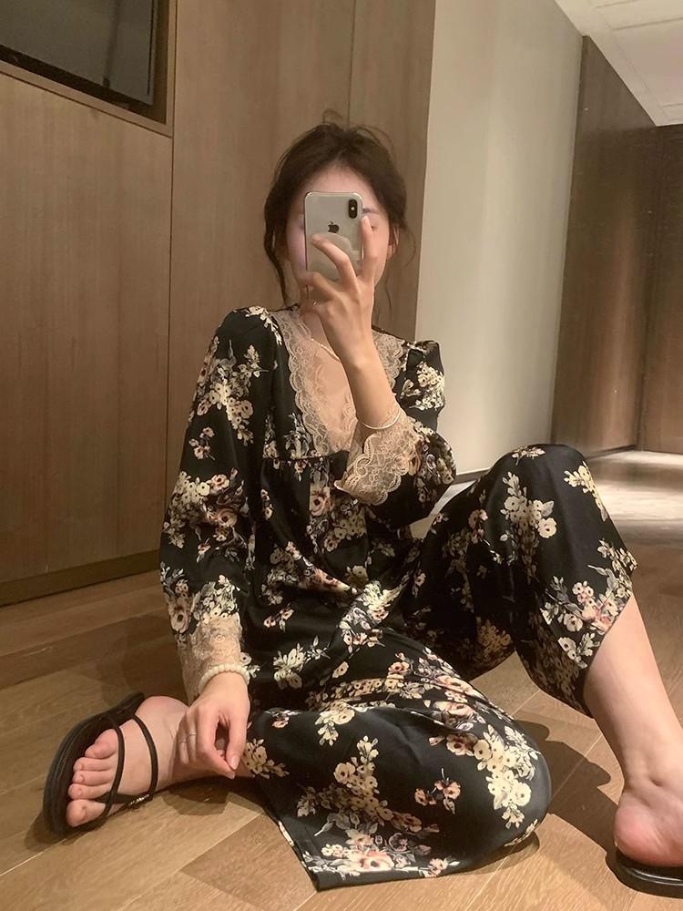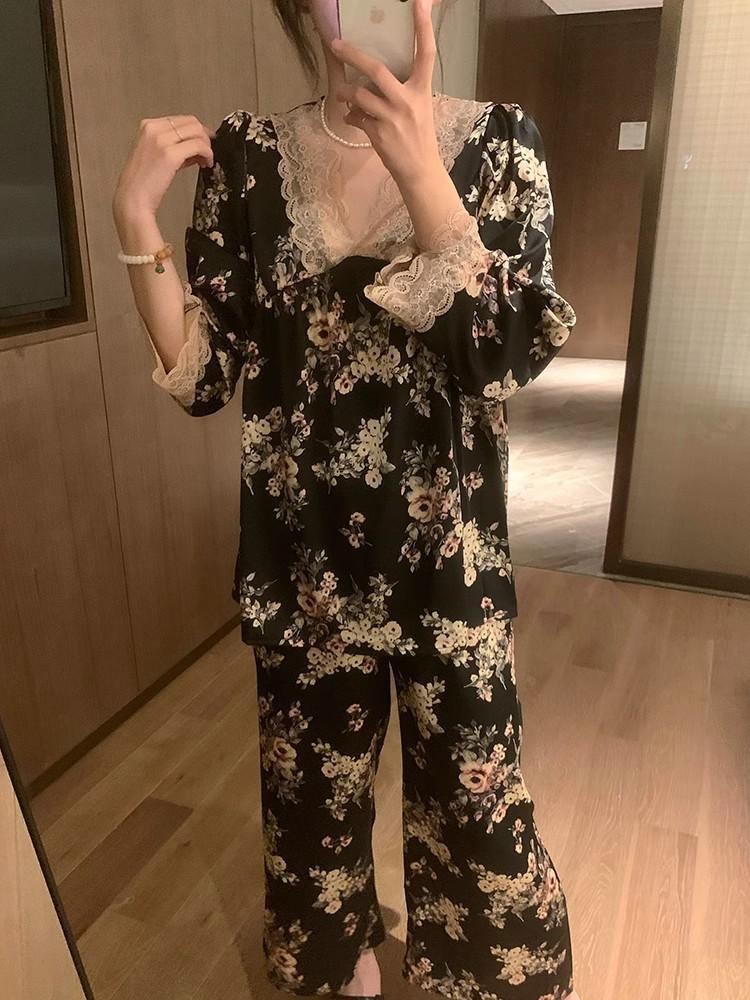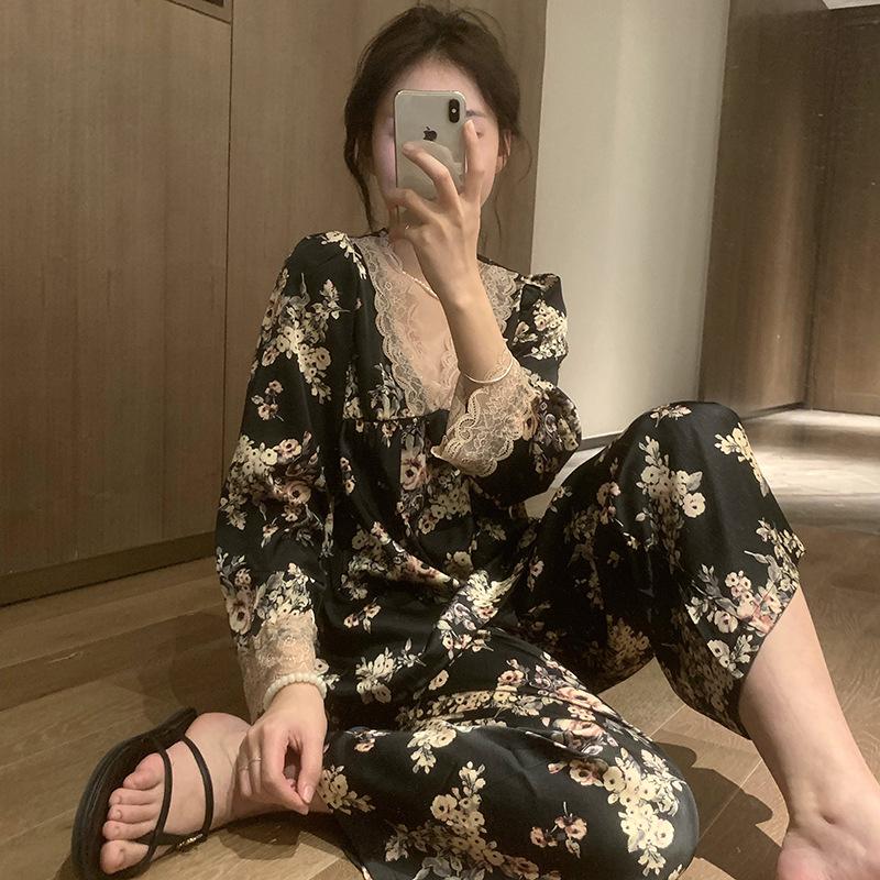 Pijamas para Mujer Primavera y Otoño Seda de Hielo Fresco Pantalones de Manga Larga Sueltos Conjunto de Dos Piezas Verano Lindo Se Puede Usar Afuera Ropa para el Hogar de Mujer