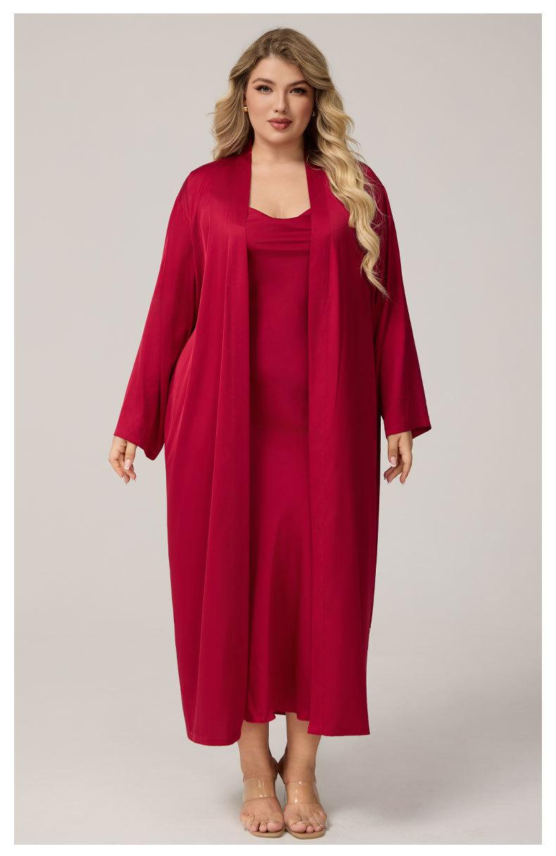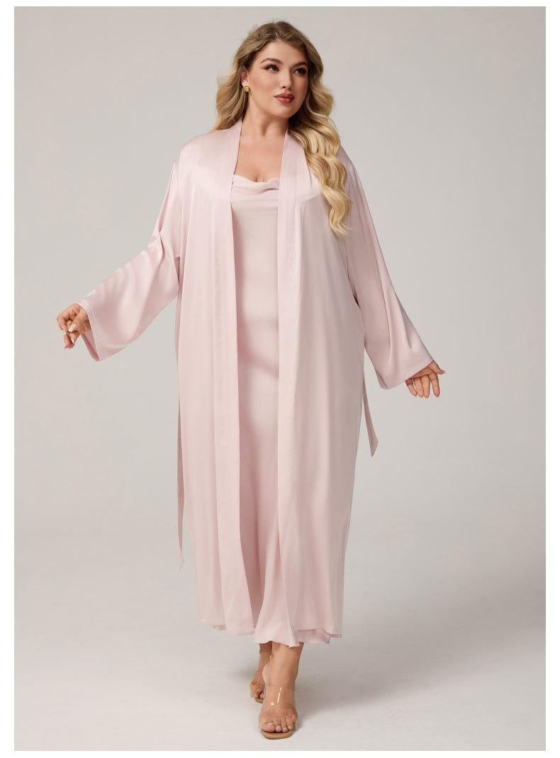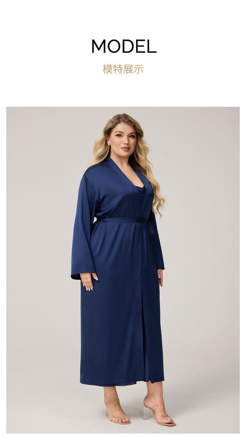 Yaoting Vestido Largo de Satén con Cuello Caído Talla Grande Europeo y Americano y Set de Bata para Mujer Sexy Cómodo Ropa para el Hogar PT7014