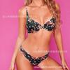 Conjunto de ropa interior para mujer transfronterizo de Europa y Estados Unidos, copa delgada, con aro de acero, conjunto de sujetador, gris con estampado de polvo rojo, ropa interior