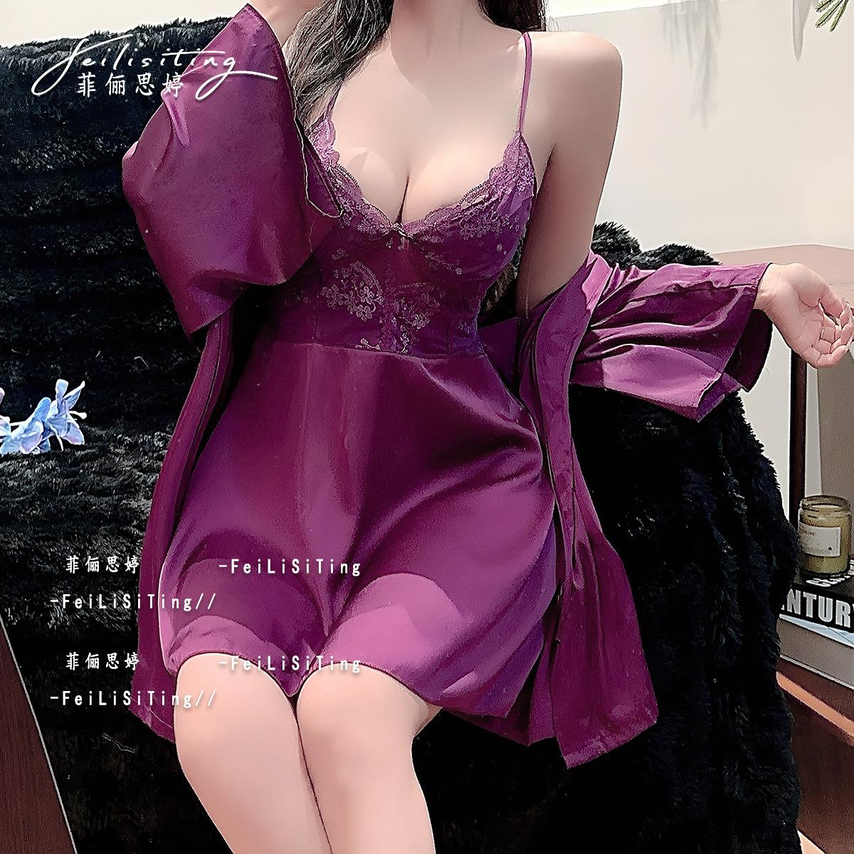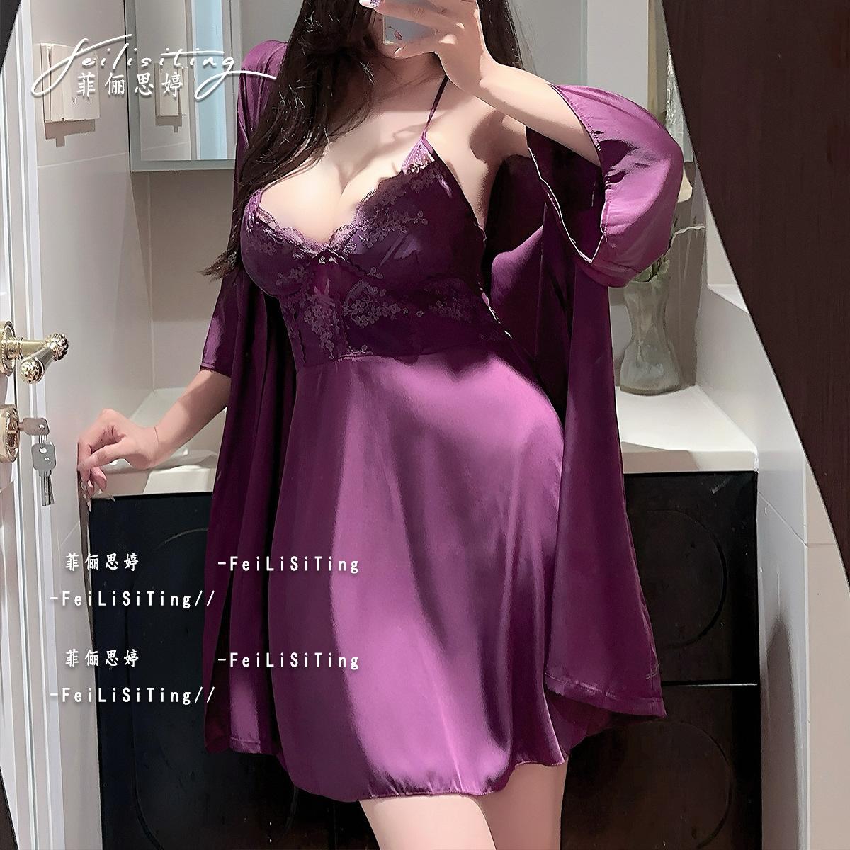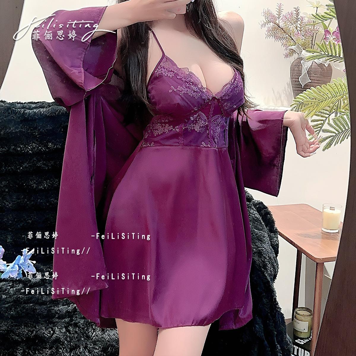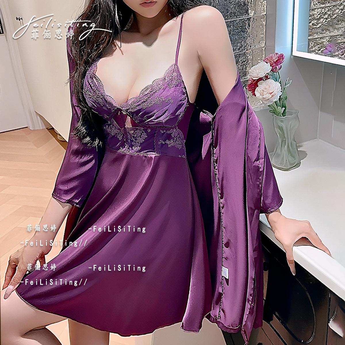 Dark purple two-piece suit (ice silk jacket), Dark purple two-piece suit (light purple lace jacket), Dark purp...