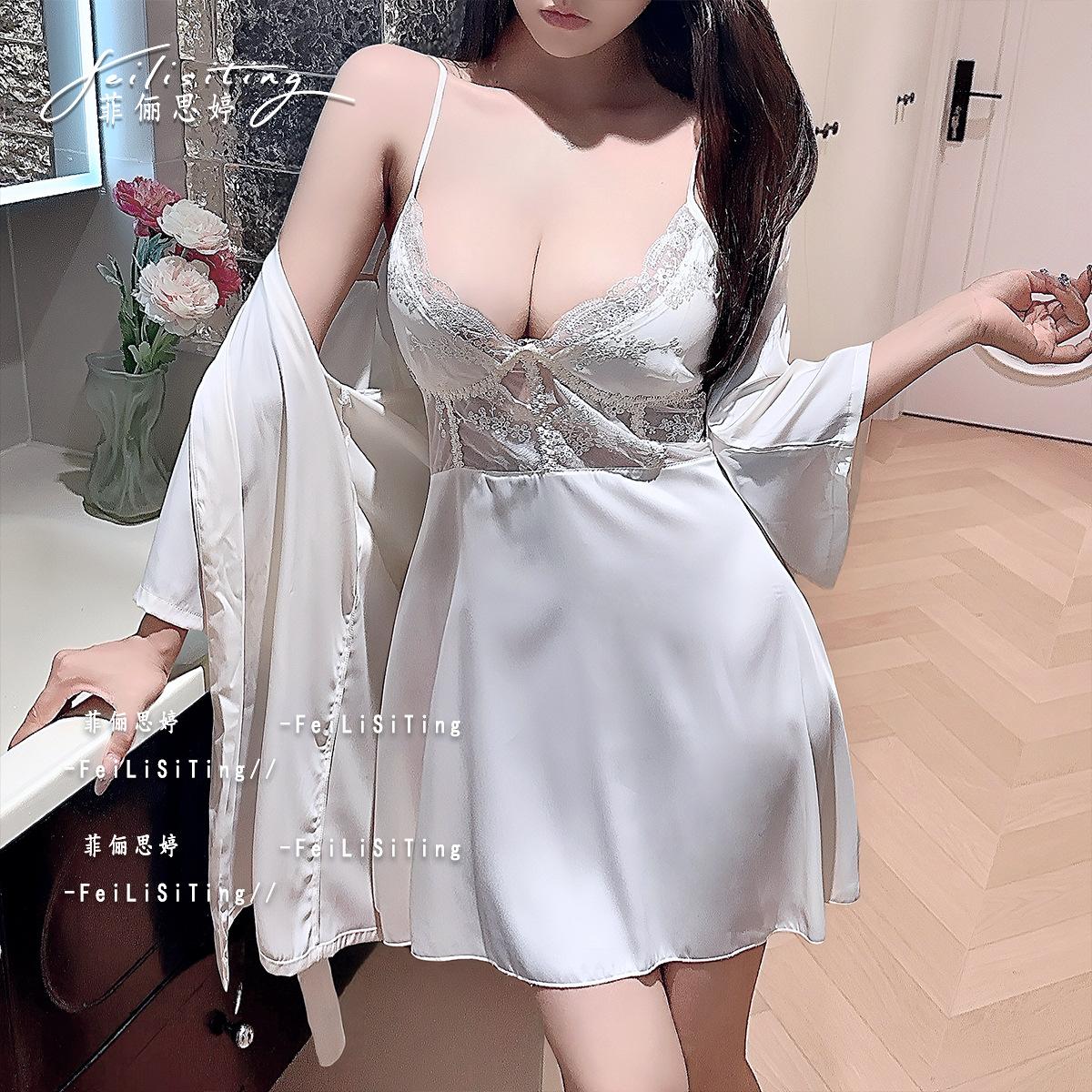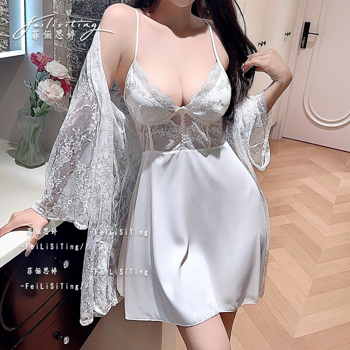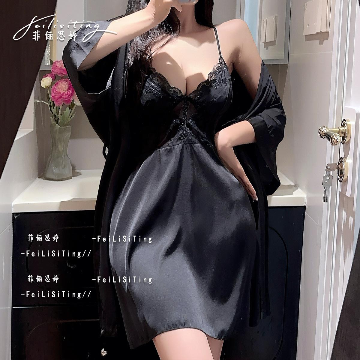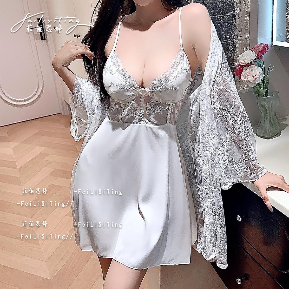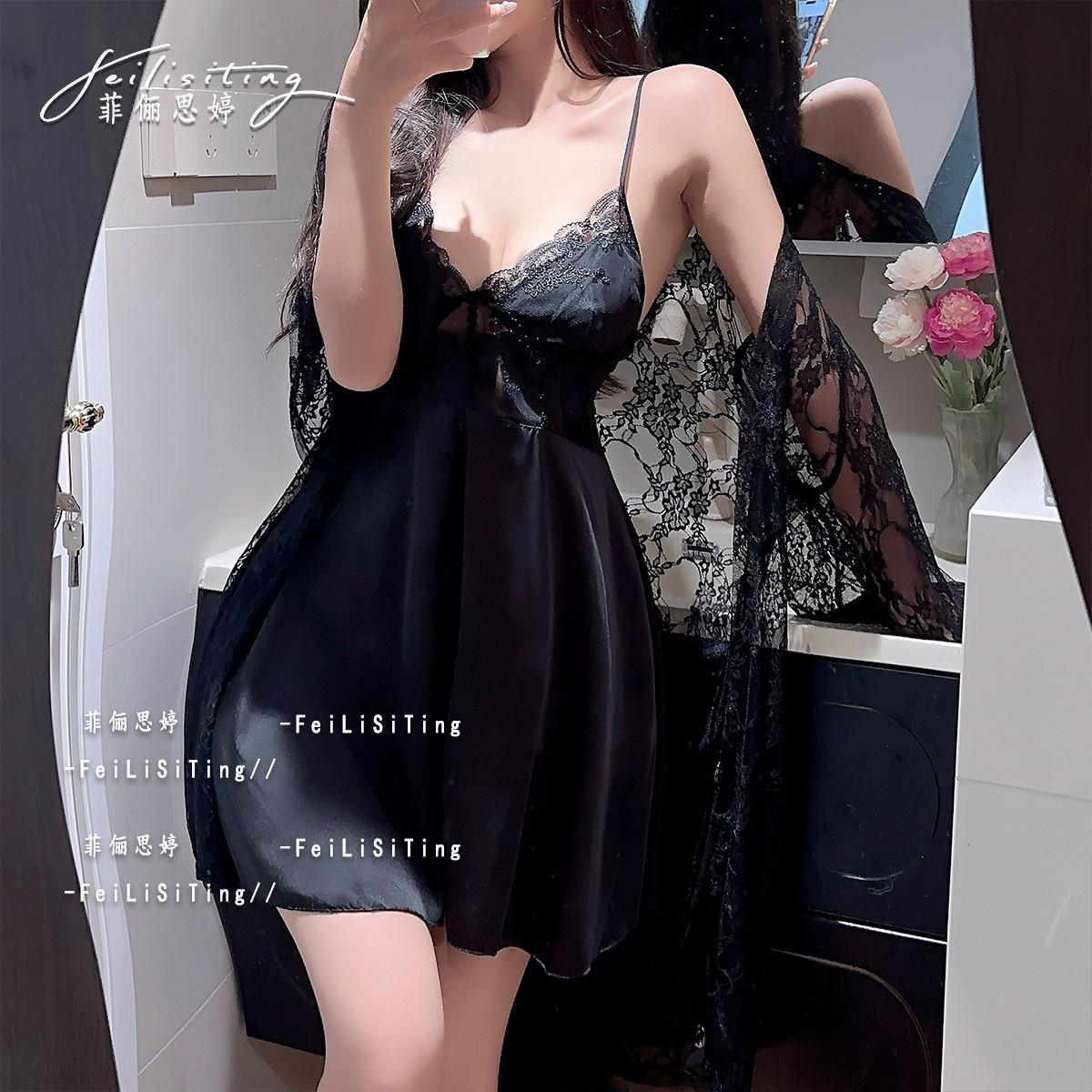 Pijama Sexy Camisón con Tirantes para Mujer 2025 Nuevo Verano Encaje Seda de Hielo Camisón Conjunto de Ropa para el Hogar de Alta Gama
