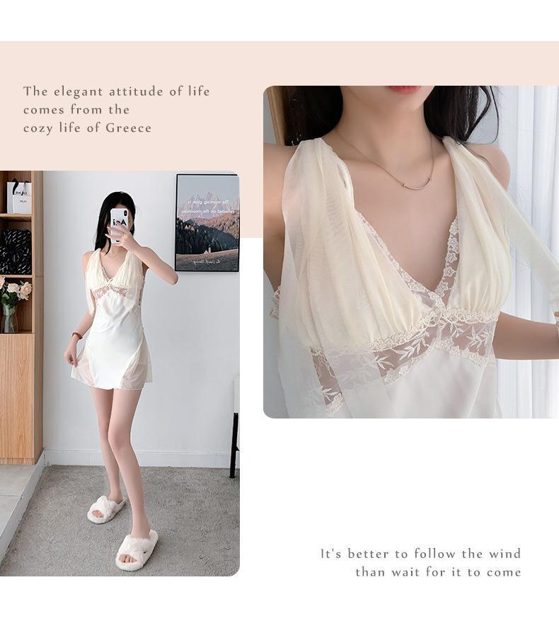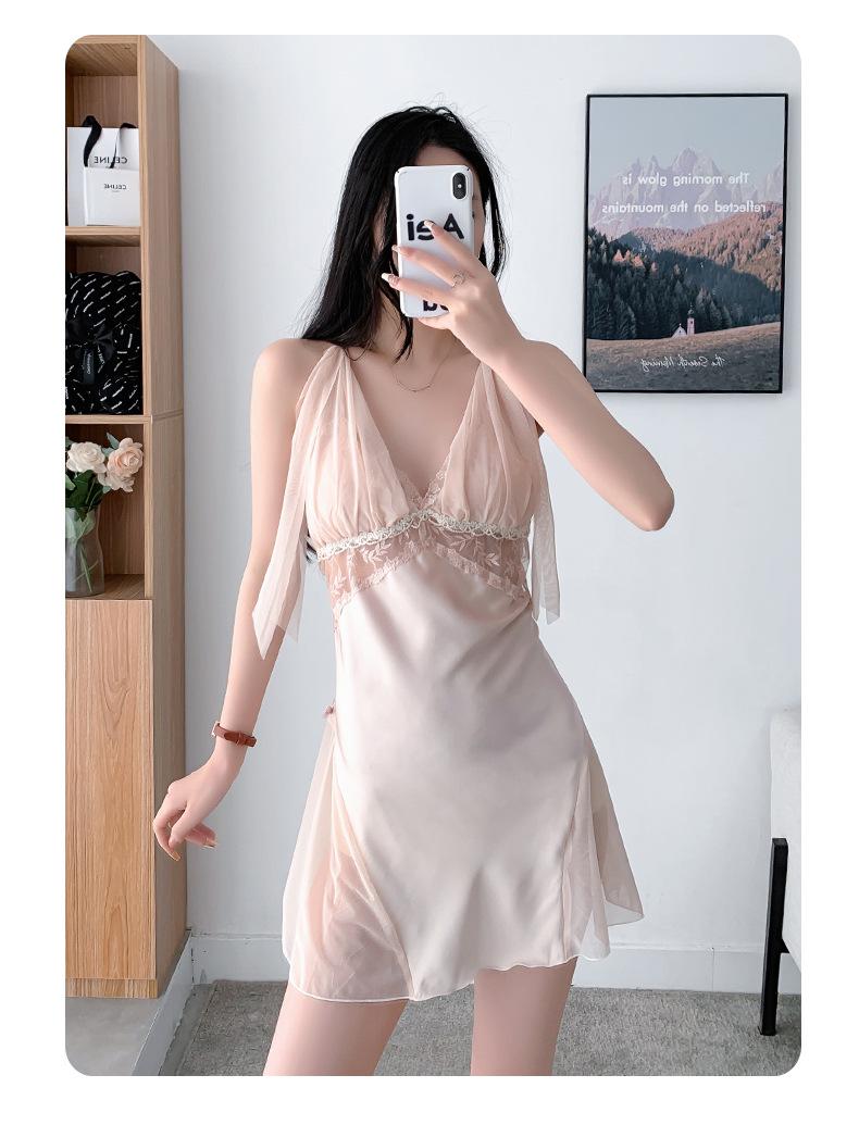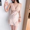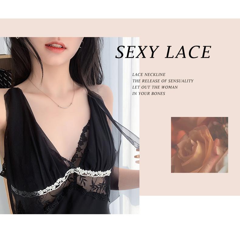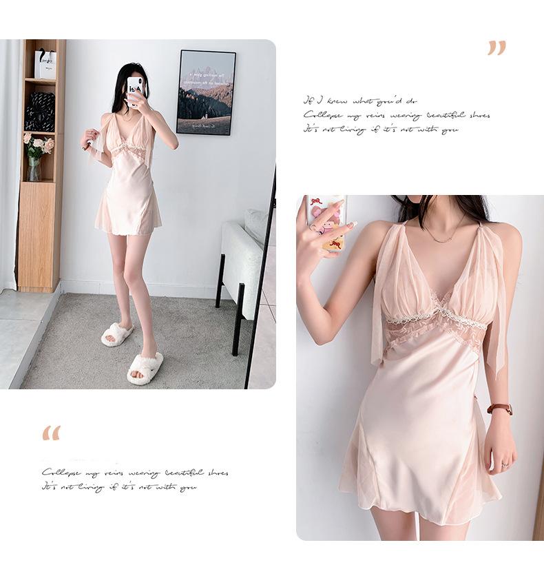 2025 Nuevo Satén Sexy Verano Mujer Camisola de Alta Gama Cuello en V Camisón Encaje con Almohadillas en el Pecho Ropa para el Hogar