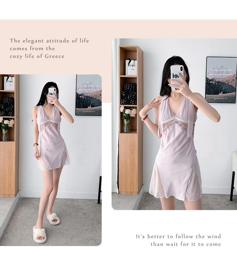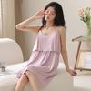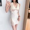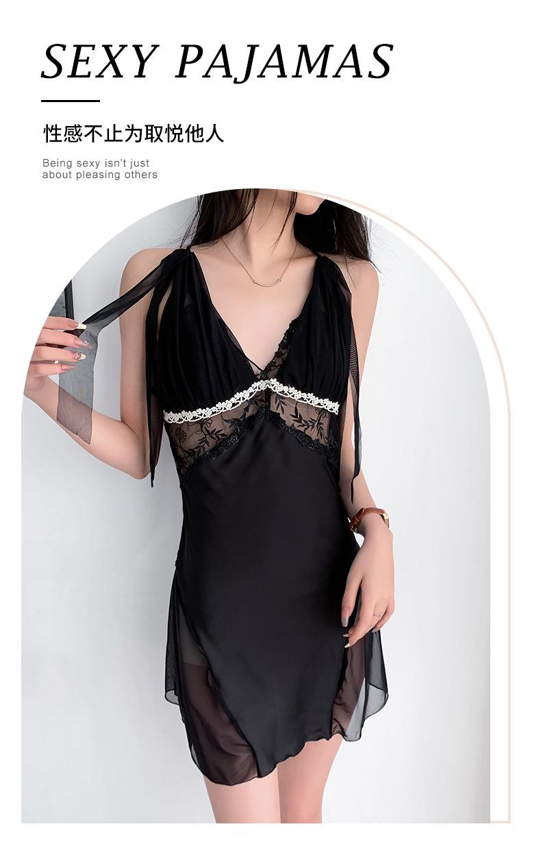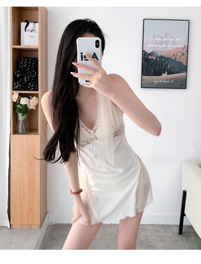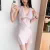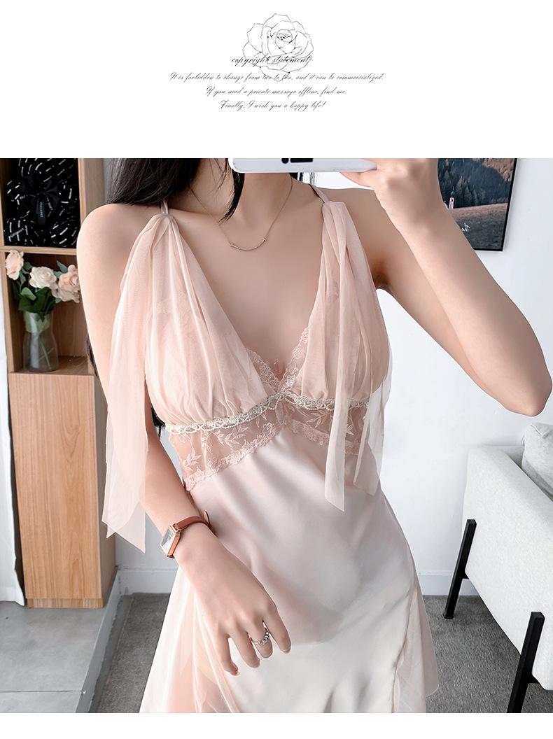 2025 Nuevo Satén Sexy Verano Mujer Camisola de Alta Gama Cuello en V Camisón Encaje con Almohadillas en el Pecho Ropa para el Hogar