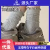 Calcetines Negros de Encaje Bordado Blanco con Lazo para Mujer Primavera y Otoño Algodón Puro Estilo Coreano Femenino Media Pantorrilla Calcetines de Rizo