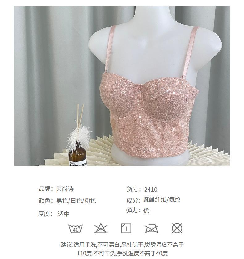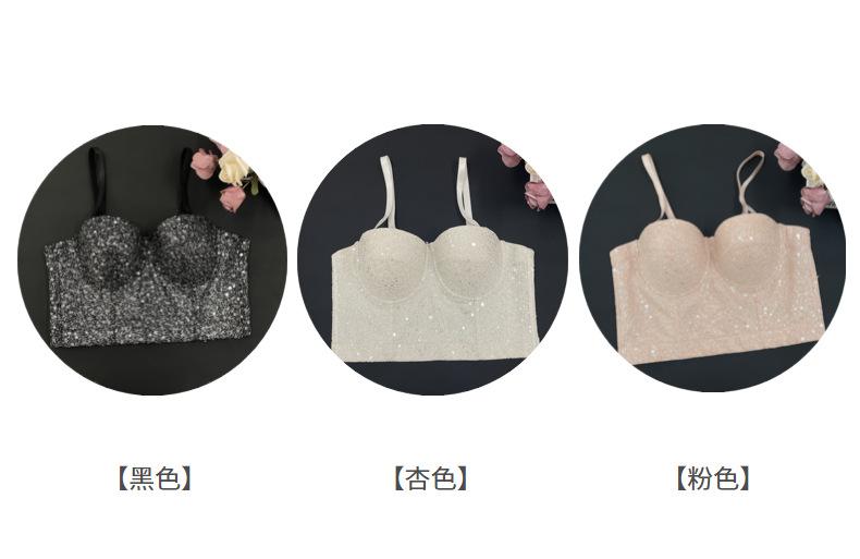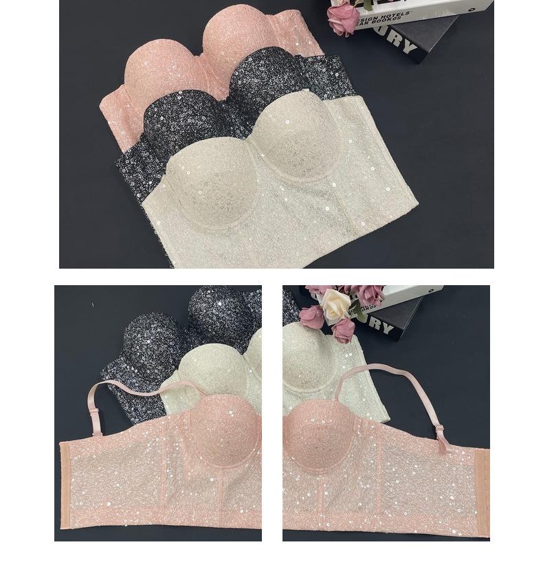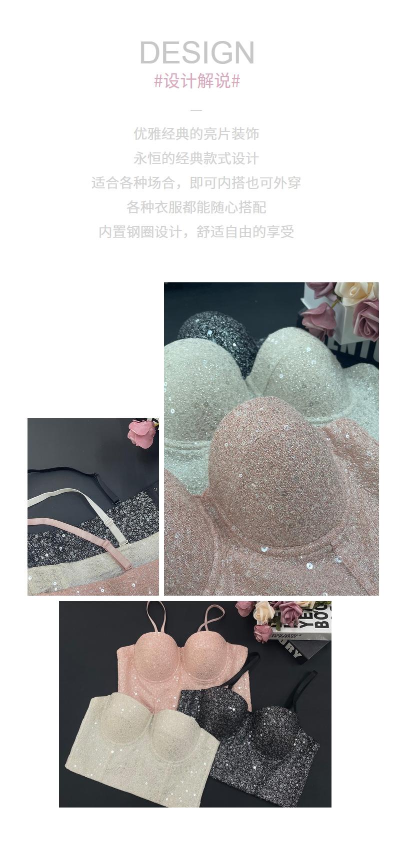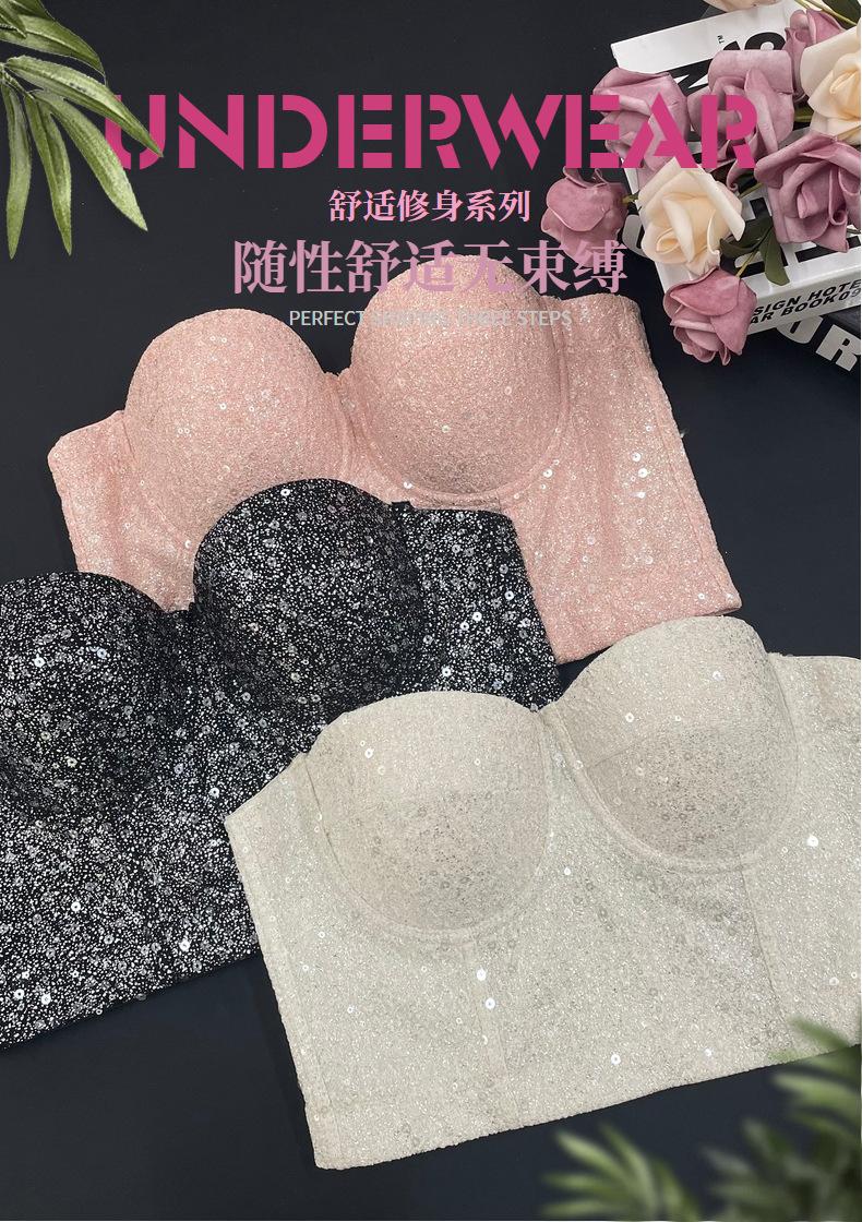 Corsé de Huesos de Pescado con Lentejuelas y Brillo de Champán Europeo y Americano Transfronterizo, Bandeau para Chica Hot, Ropa Interior Moldeadora para el Cuerpo Antiexposición