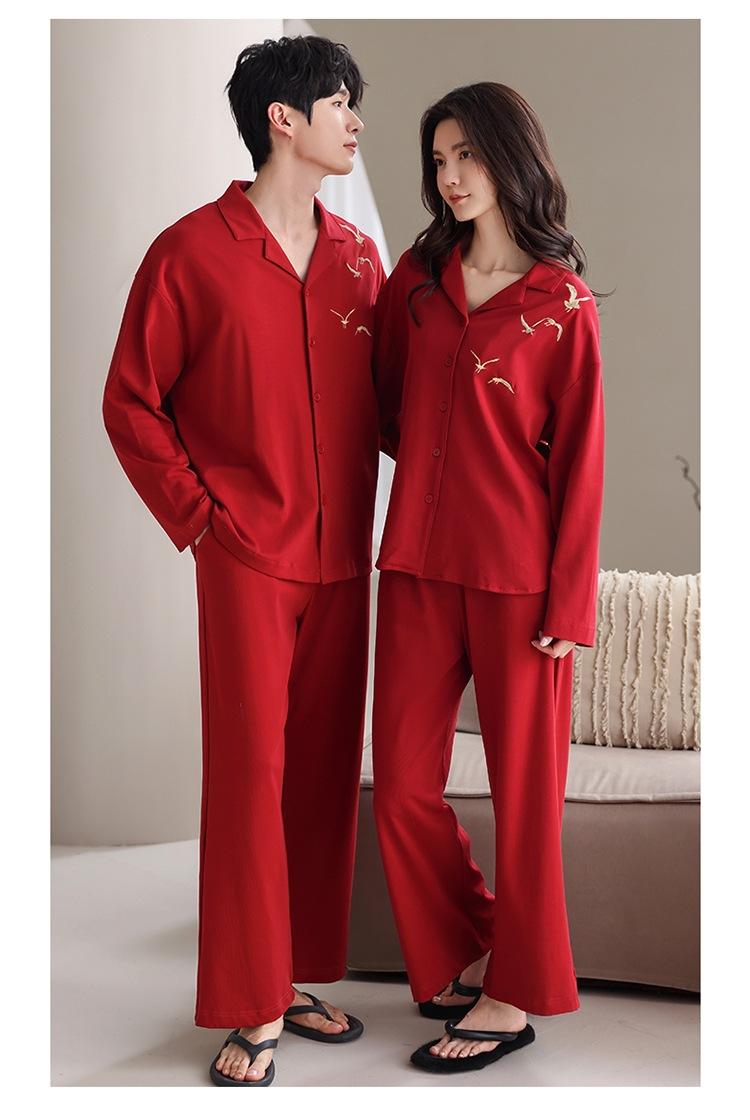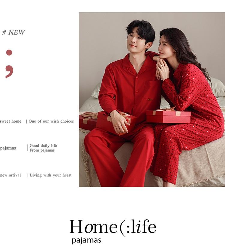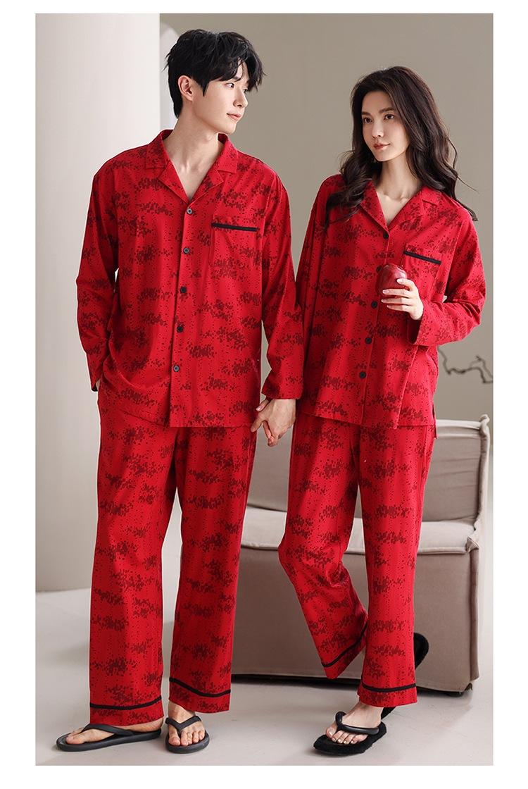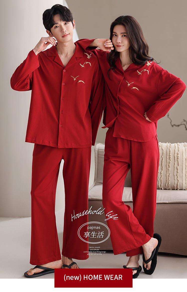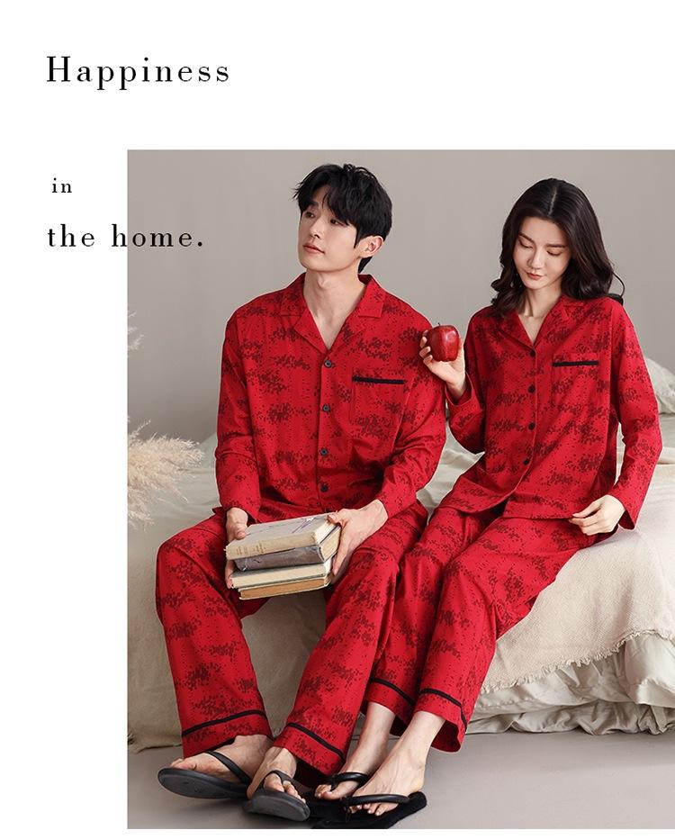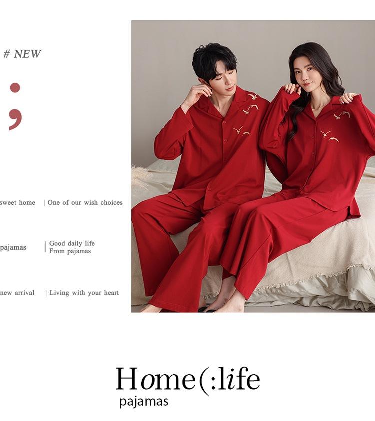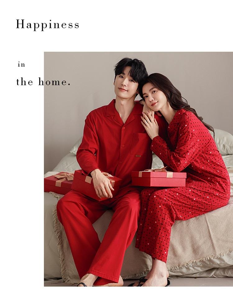 Pijamas de Algodón Puro Mujer Otoño/Invierno Nuevo Rojo Festivo Ropa de Pareja para Hombre Algodón 100% Ropa de Casa Una Pieza Dropshipping Envío Gratis