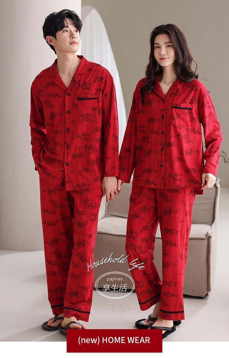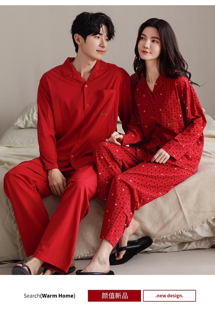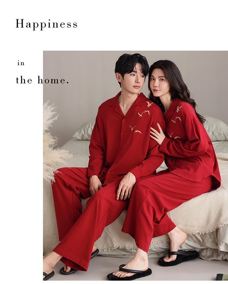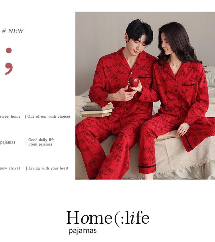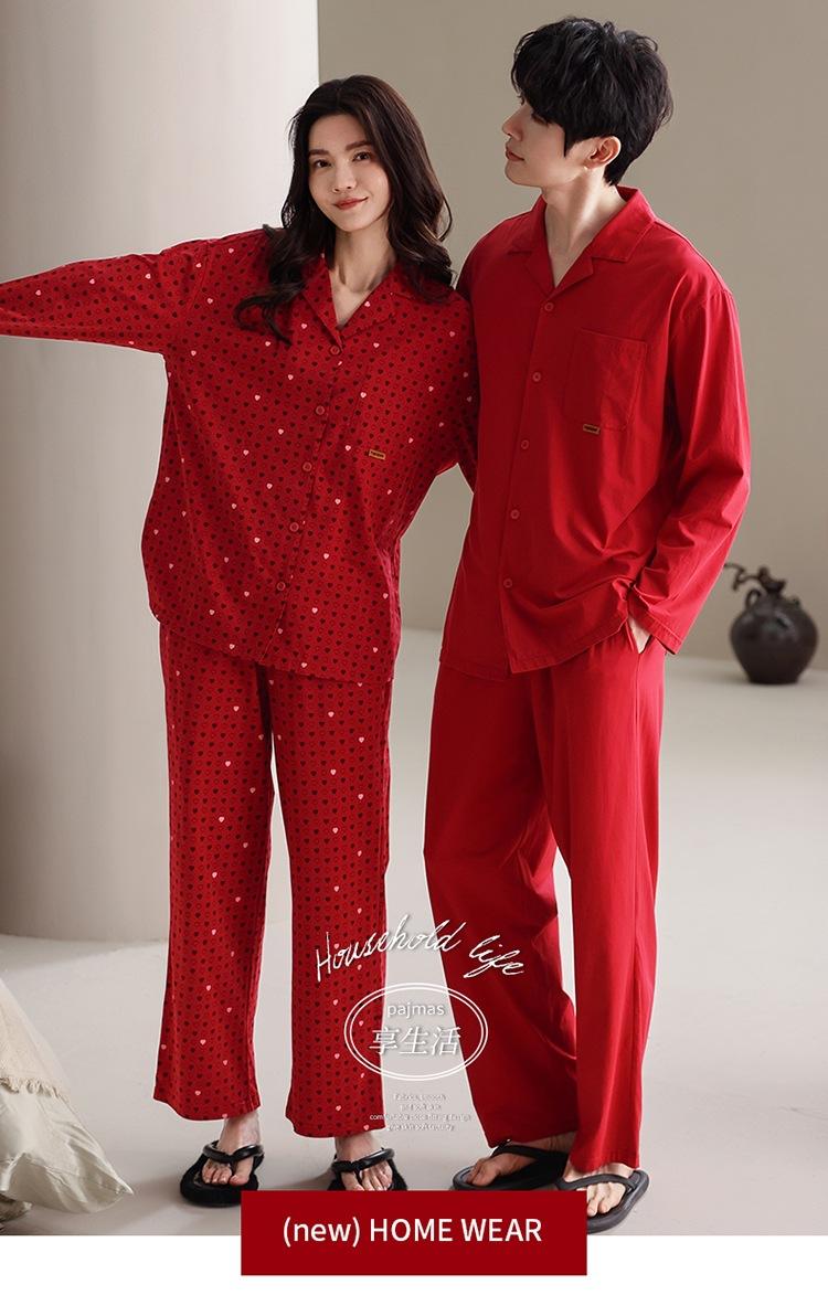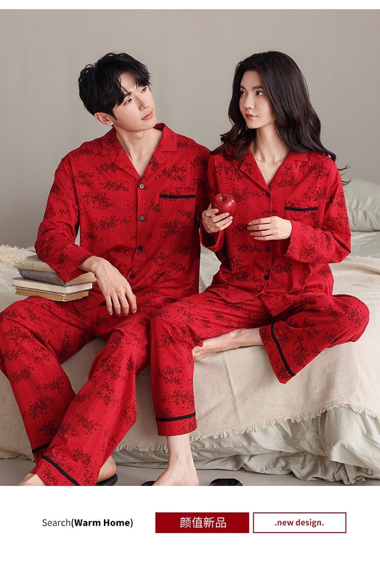 Pijamas de Algodón Puro Mujer Otoño/Invierno Nuevo Rojo Festivo Ropa de Pareja para Hombre Algodón 100% Ropa de Casa Una Pieza Dropshipping Envío Gratis