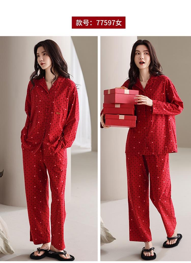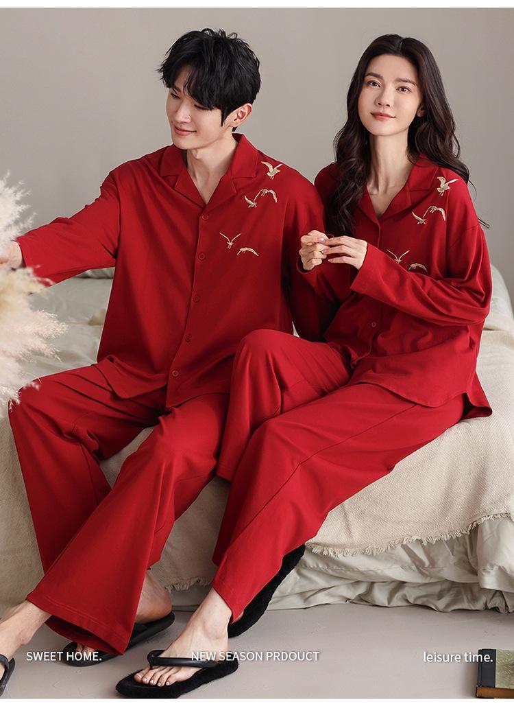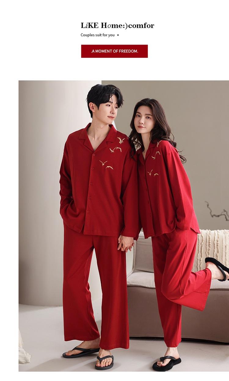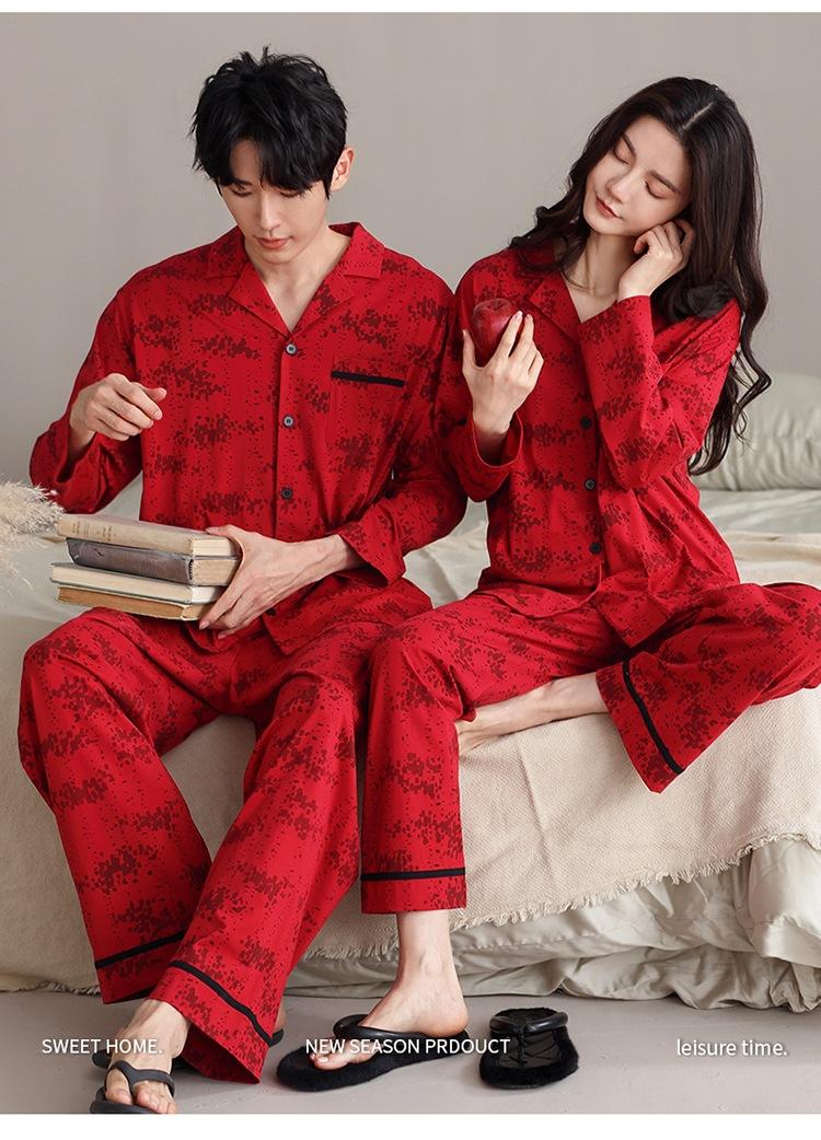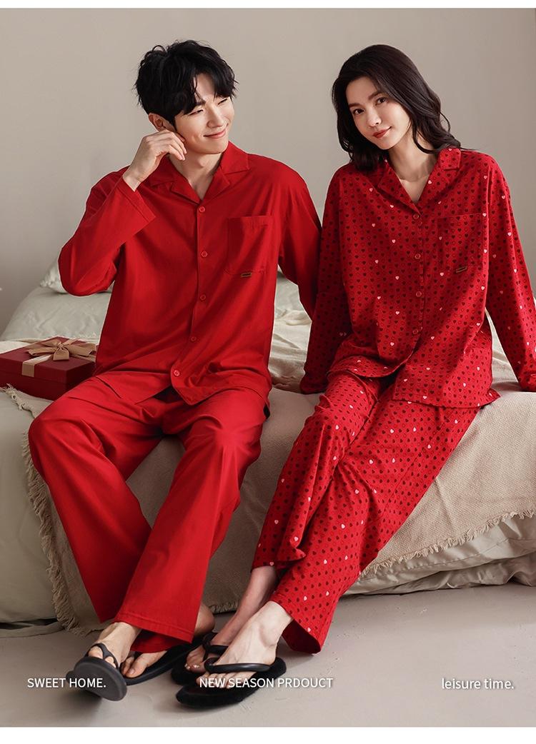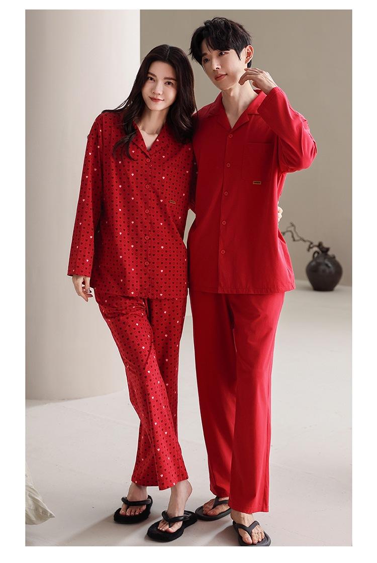Pijamas de Algodón Puro Mujer Otoño/Invierno Nuevo Rojo Festivo Ropa de Pareja para Hombre Algodón 100% Ropa de Casa Una Pieza Dropshipping Envío Gratis