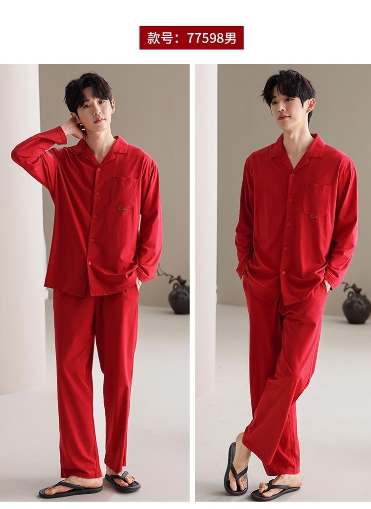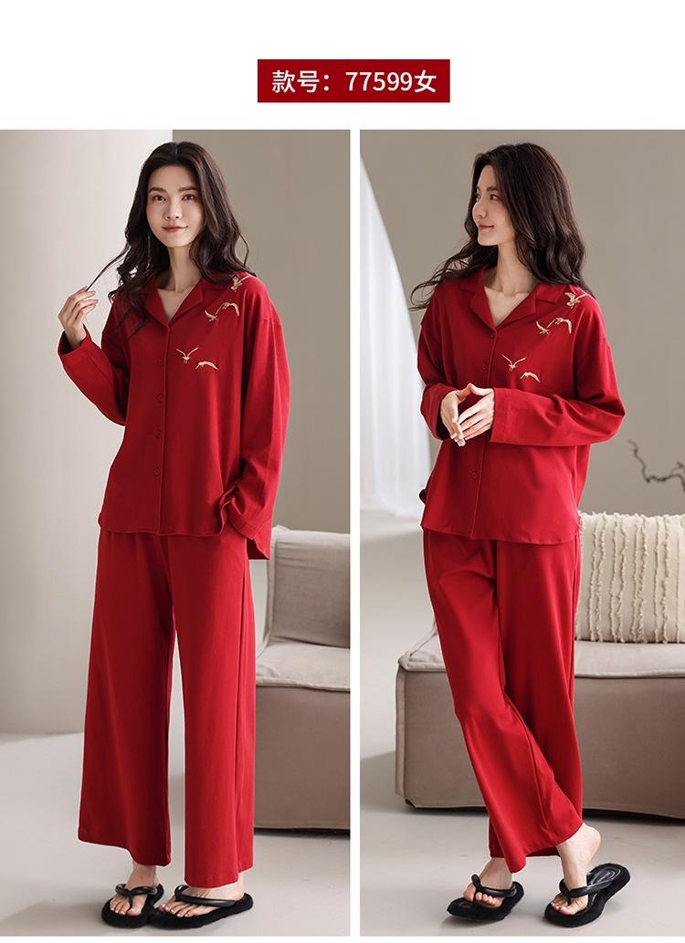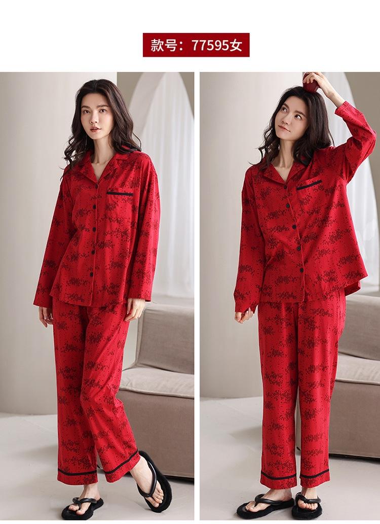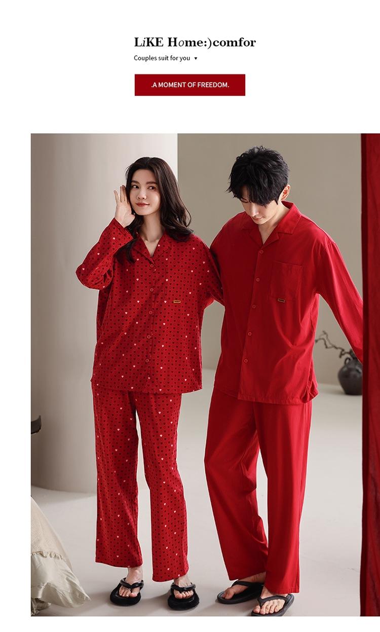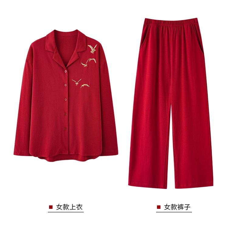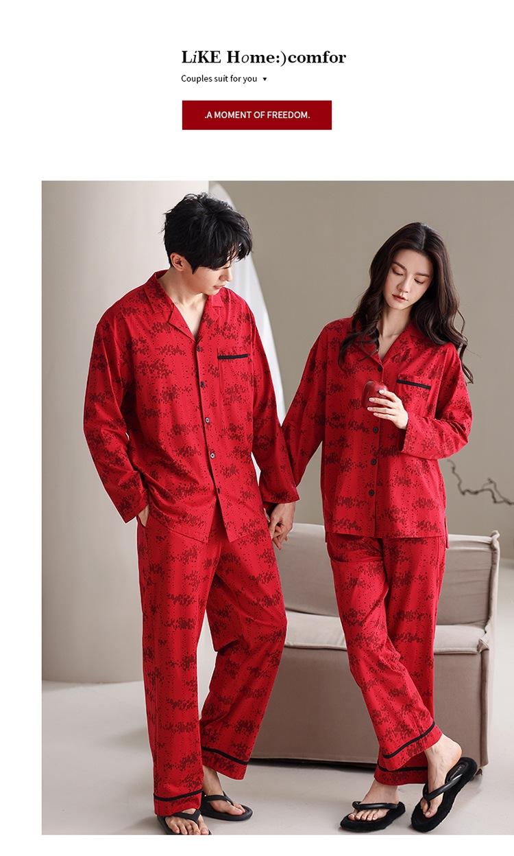 Pijamas de Algodón Puro Mujer Otoño/Invierno Nuevo Rojo Festivo Ropa de Pareja para Hombre Algodón 100% Ropa de Casa Una Pieza Dropshipping Envío Gratis